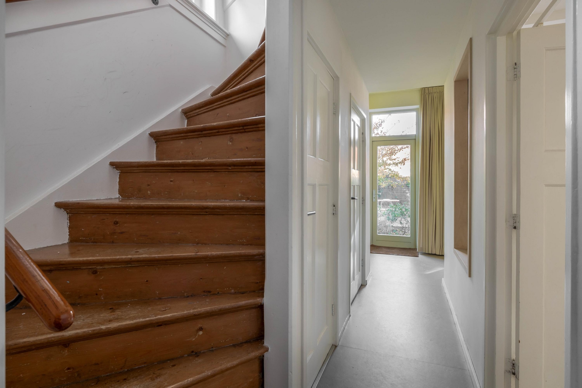 De begane grond verwelkomt je met een charmante entree, marmoleum vloer en toegang tot een handige kelder. De woonkamer is ingedeeld in een zit- en eetgedeelte, gescheiden door de originele en-suite. Erkers aan de voorzijde zorgen voor sfeer en gezellige zithoekjes. De uitbouw aan de achterzijde geeft ruimte aan de moderne keuken met kookgedeelte, ruime eettafel en zicht op de tuin. Hier kook je aan een royaal werkblad met onder andere een 5-pits inductiekookplaat met oven, vaatwasser en koel-vriescombinatie.