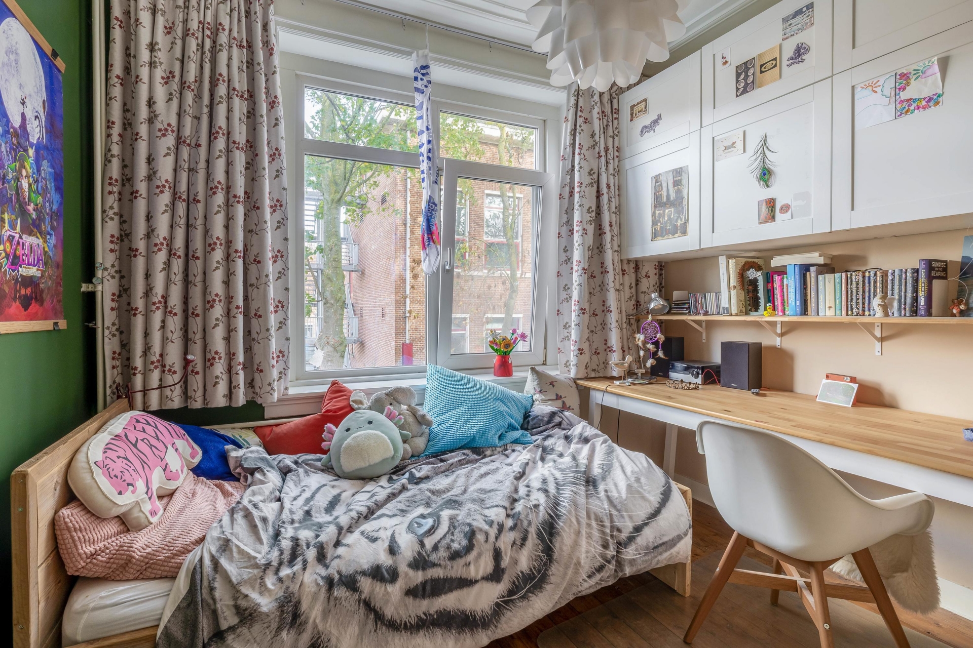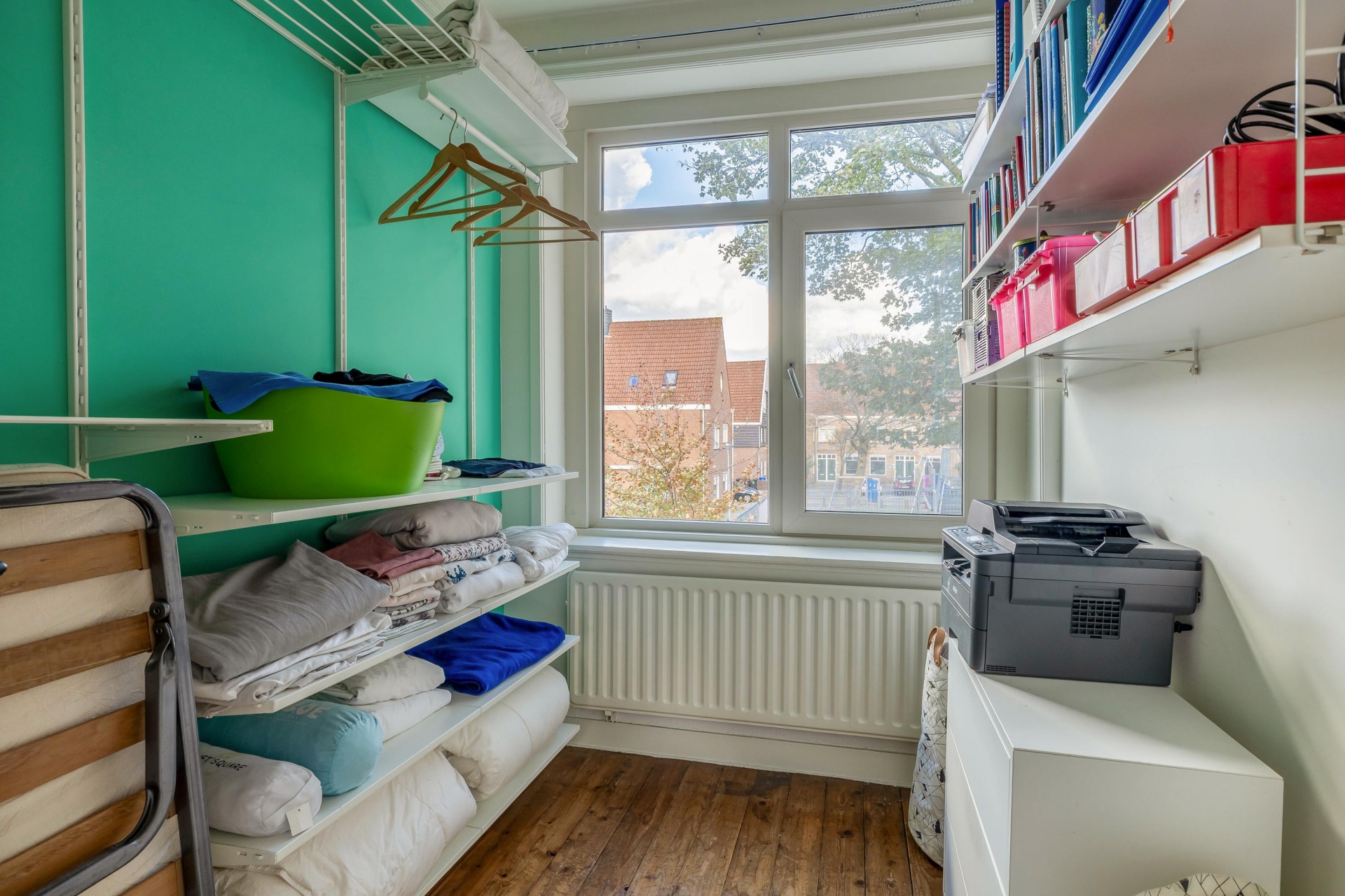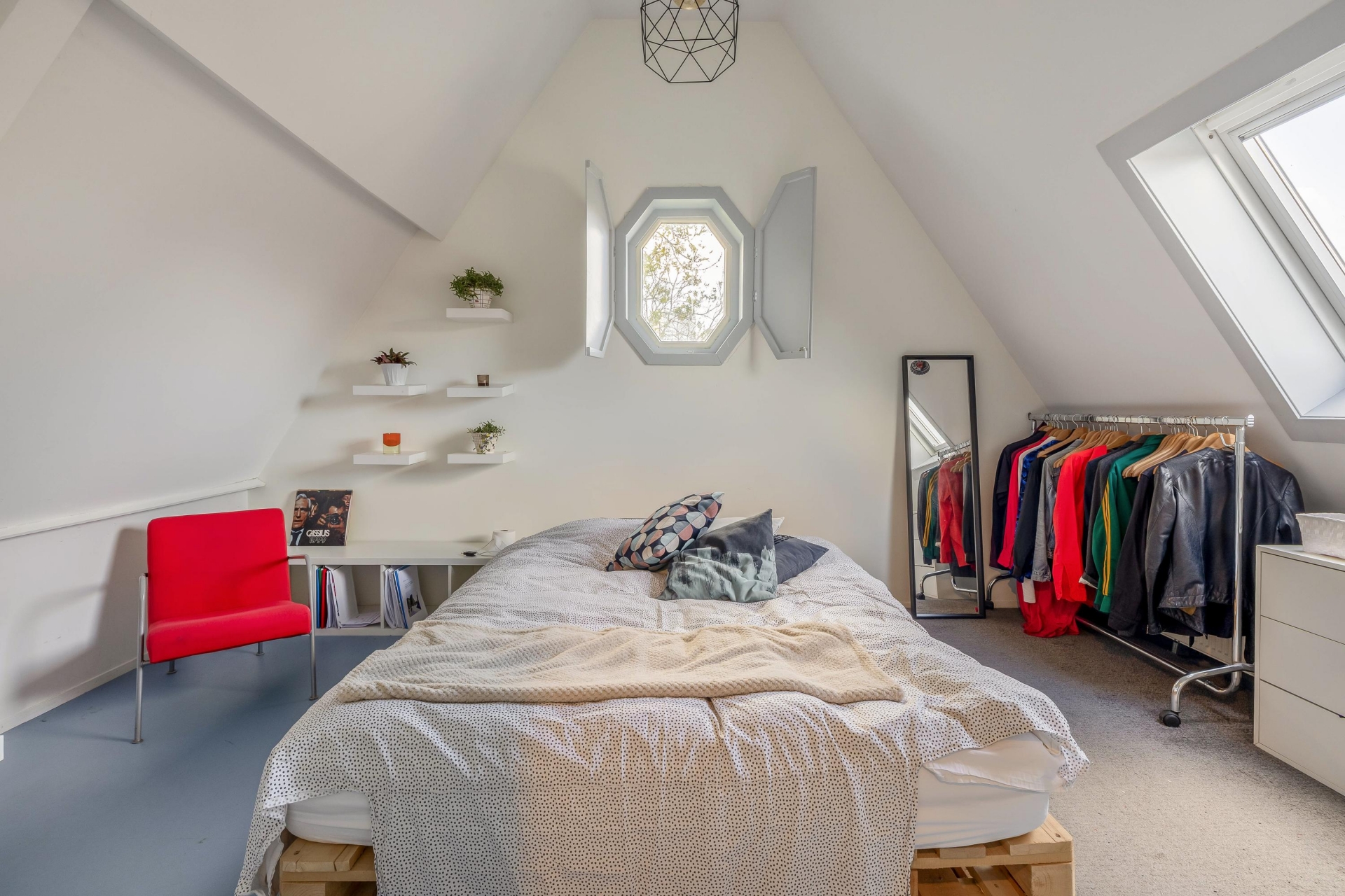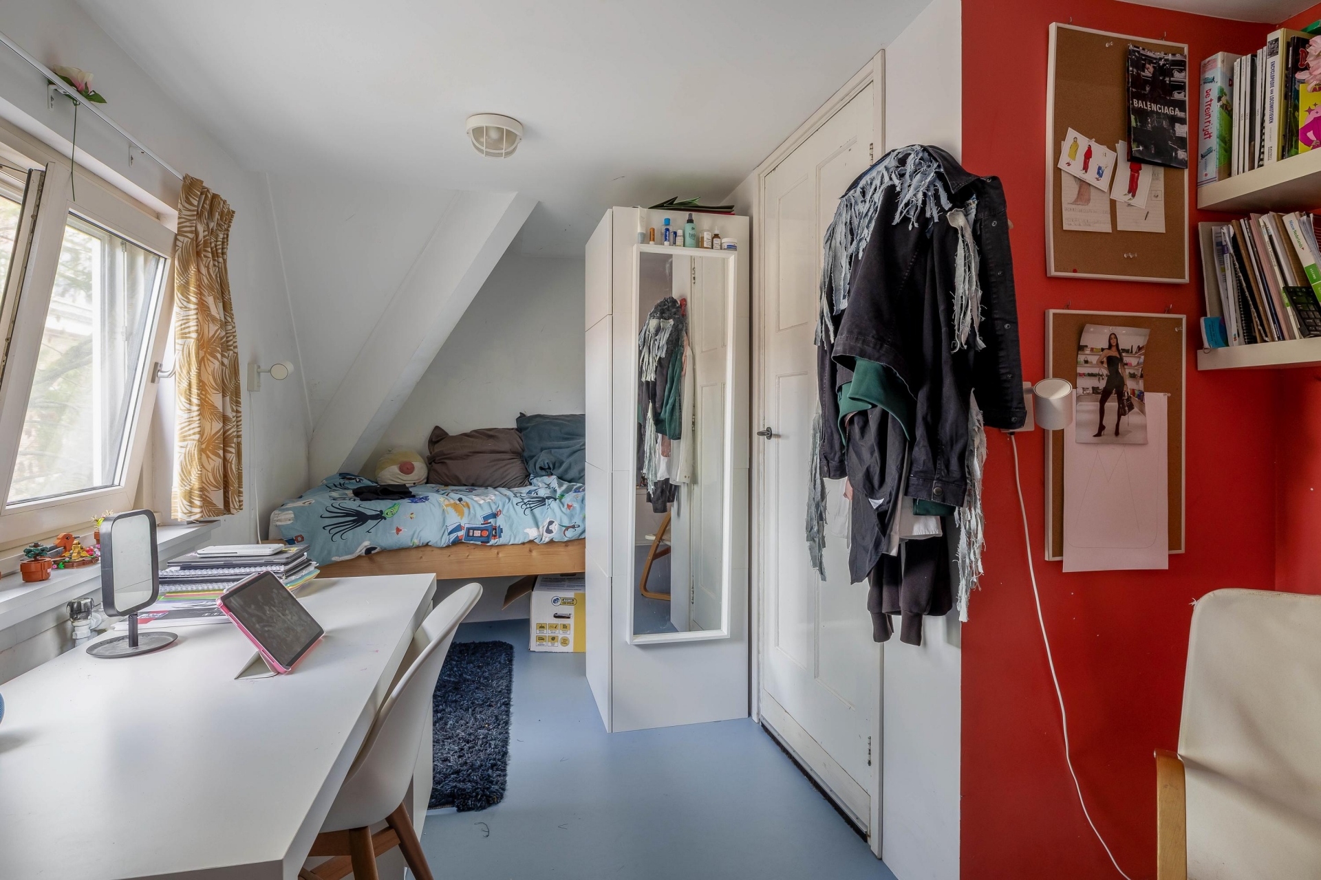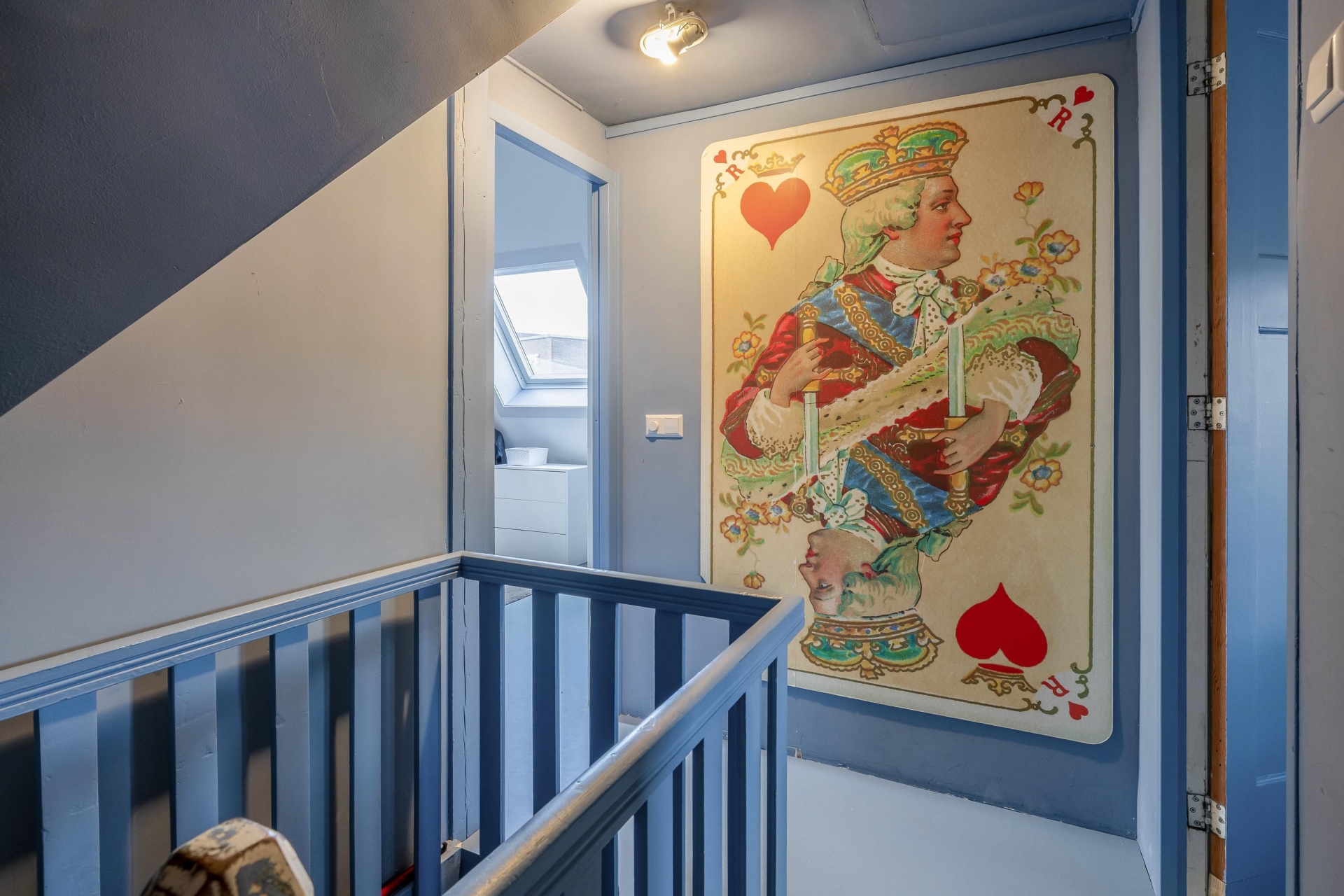 De tweede verdieping biedt nog twee kamers, waaronder een royale zolderkamer met speels achtkantig raam, vaste kast met cv-opstelling (2022). Extra bergruimte is beschikbaar via de vliering.