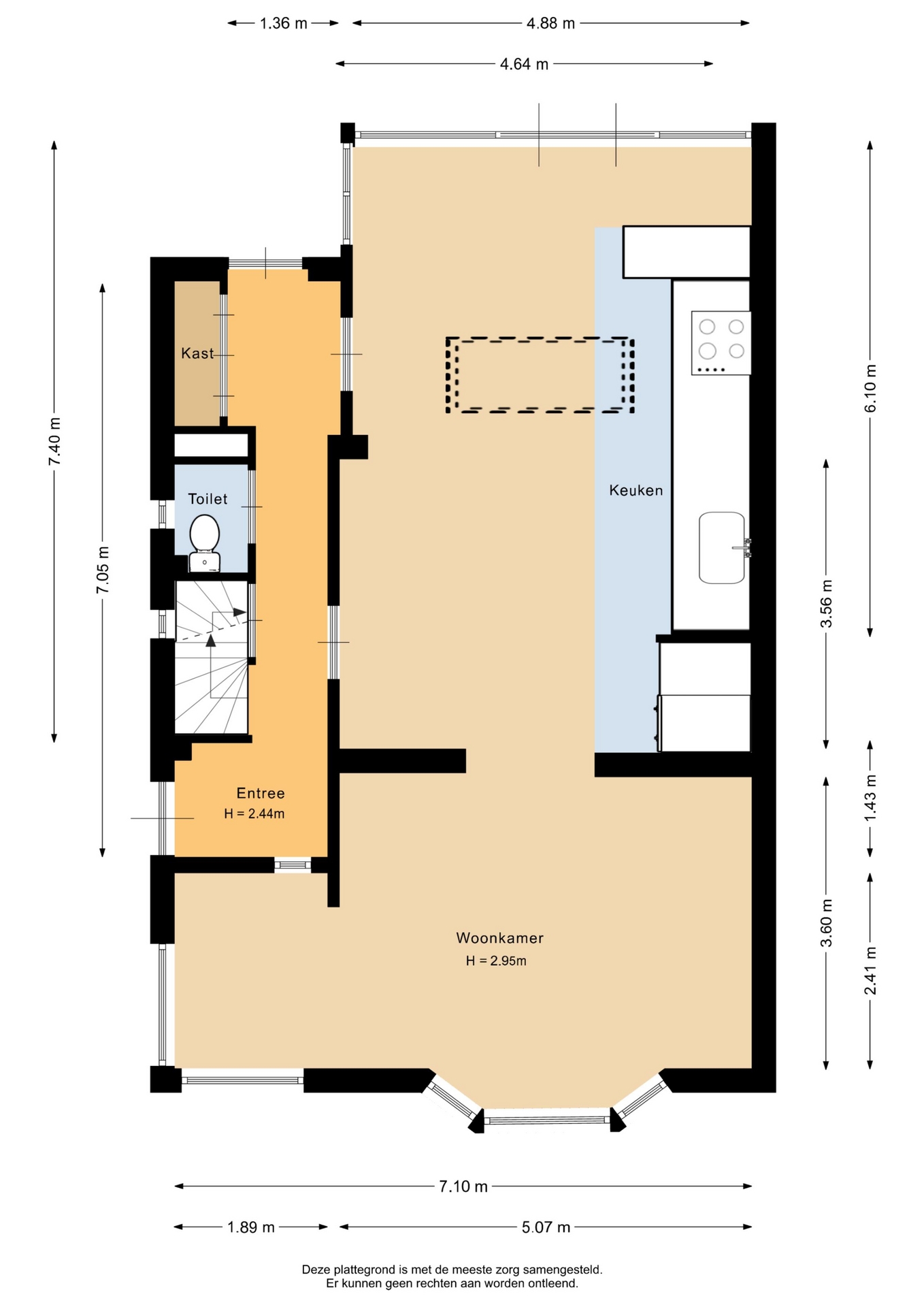 “Deze informatie is door ons met de nodige zorgvuldigheid samengesteld. Onzerzijds wordt echter geen enkele aansprakelijkheid aanvaard voor enige onvolledigheid, onjuistheid of anderszins, dan wel de gevolgen daarvan. Alle opgegeven maten en oppervlakten zijn indicatief.”