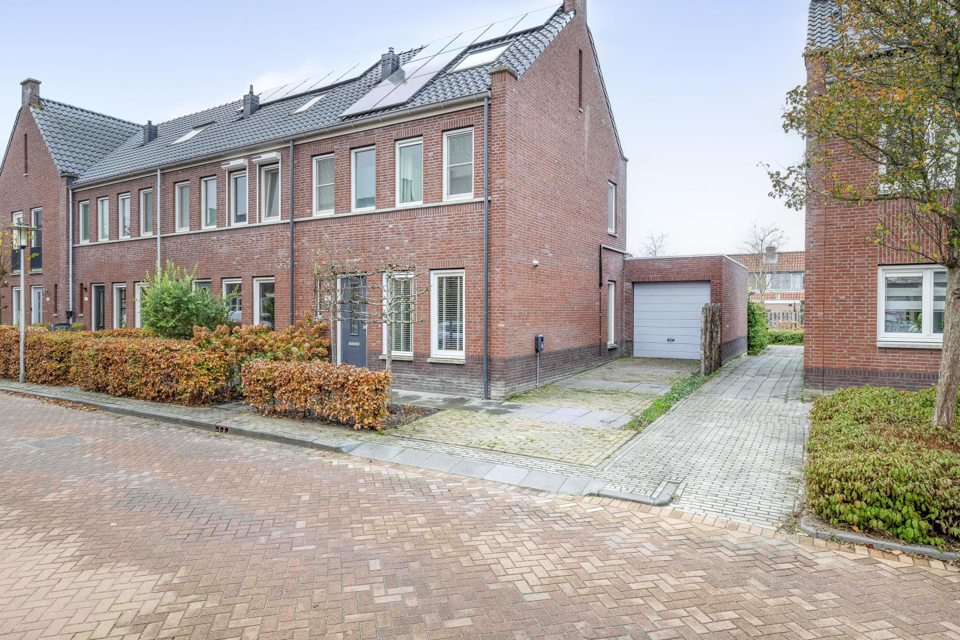 Aan de zijkant van het huis bevindt zich de aangebouwde stenen garage, die via een deur in de woonkamer bereikbaar is. Deze is volledig voorzien van verwarming, water en elektra, waardoor het niet alleen een ideale plek is voor auto of fietsen, maar ook voor klussen, opslag of hobby’s of wellicht als verlengstuk van de woonkamer. De oprit biedt plek voor twee auto’s achter elkaar. Aan de gevel hangt bovendien een laadpaal, perfect voor wie elektrisch rijdt.
