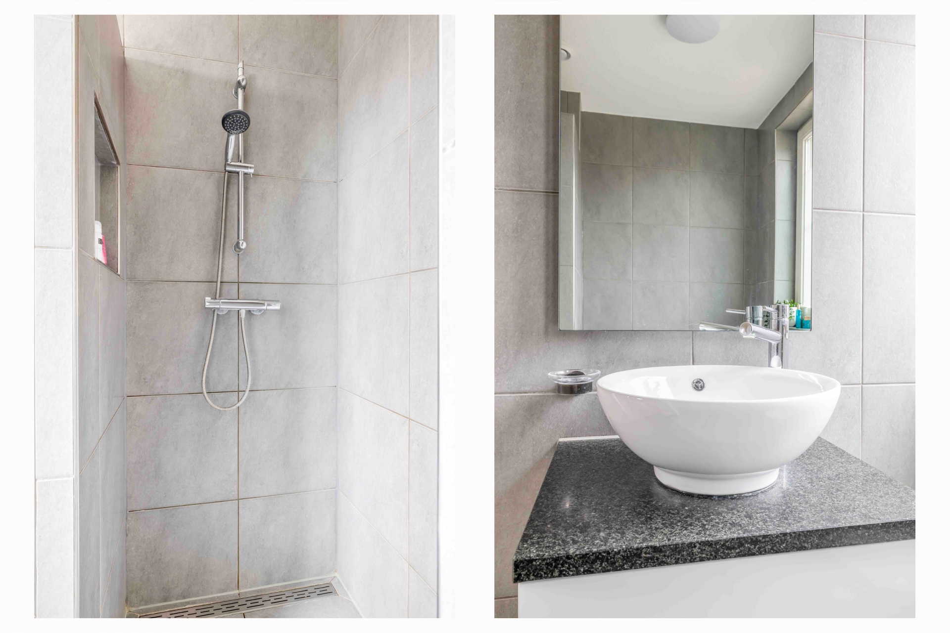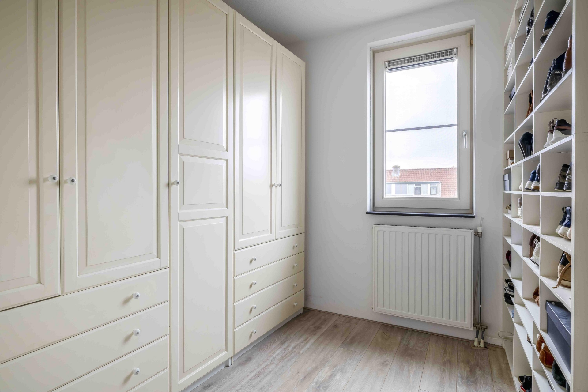 Op de eerste verdieping bevinden zich drie slaapkamers, waarbij de grootste kamer aan de achterzijde ligt. Alle kamers zijn praktisch ingedeeld en bieden voldoende ruimte voor slapen, spelen, werken of hobby’s. De badkamer is netjes afgewerkt en compleet ingericht met een inloopdouche, ligbad, wastafelmeubel en 2e toilet. Hierdoor kun je ‘s ochtends soepel van start – ook met een groter gezin.