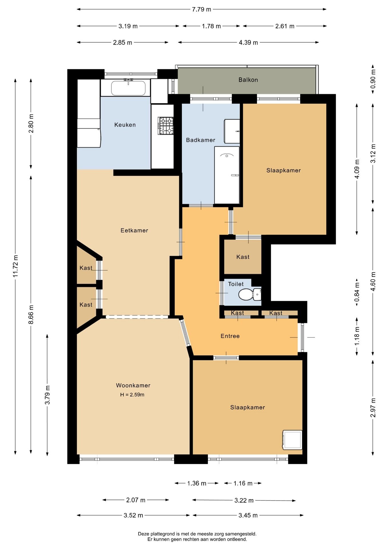 - Aantal kamers: 3 (waarvan 2 slaapkamers)