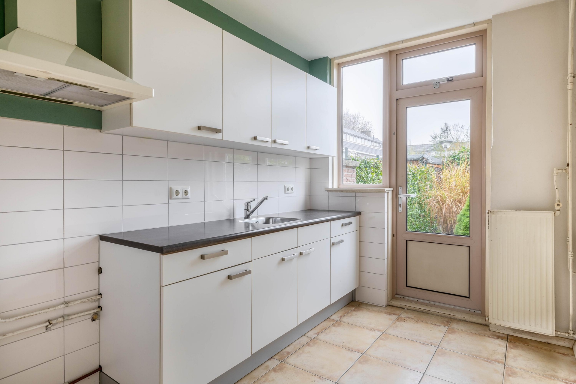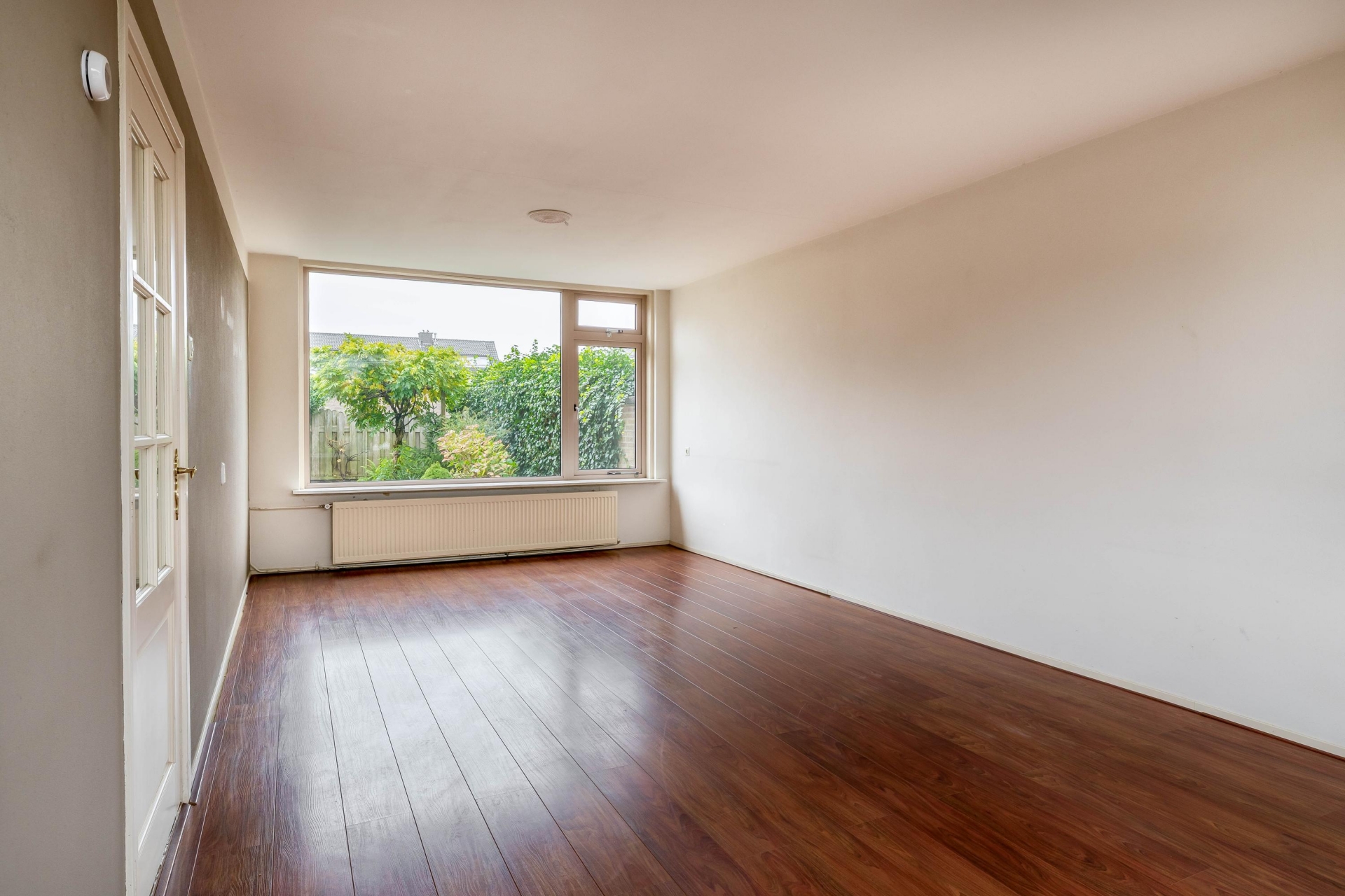 De woonkamer is licht en ruim en kijkt uit op het groen aan de voorzijde. Door de grote raampartijen valt het daglicht mooi naar binnen en ontstaat er een prettige sfeer in de leefruimte. Aan de achterzijde bevindt zich de keuken, met directe toegang tot de tuin – ideaal op een zomerse dag of als de kinderen lekker buiten willen spelen. De tuin is verzorgd aangelegd met een combinatie van groen en bestrating, waardoor je hier met weinig onderhoud toch veel plezier van hebt.