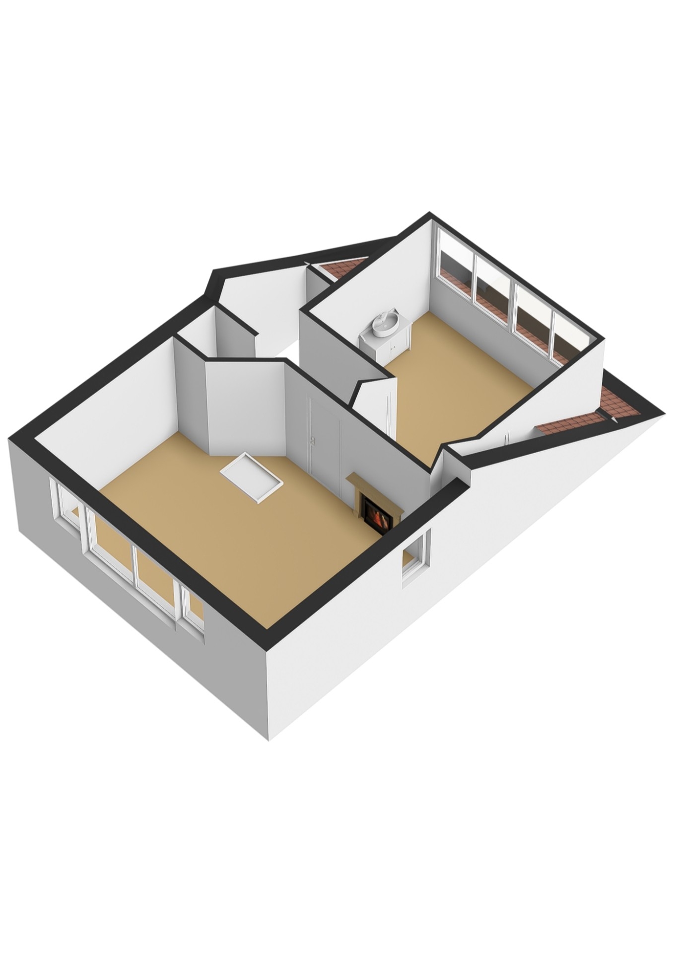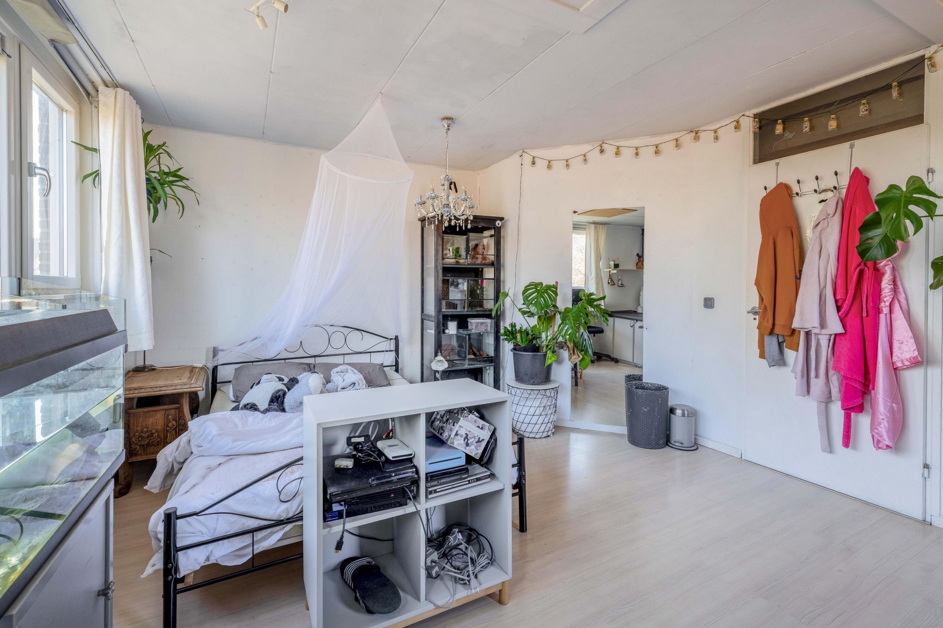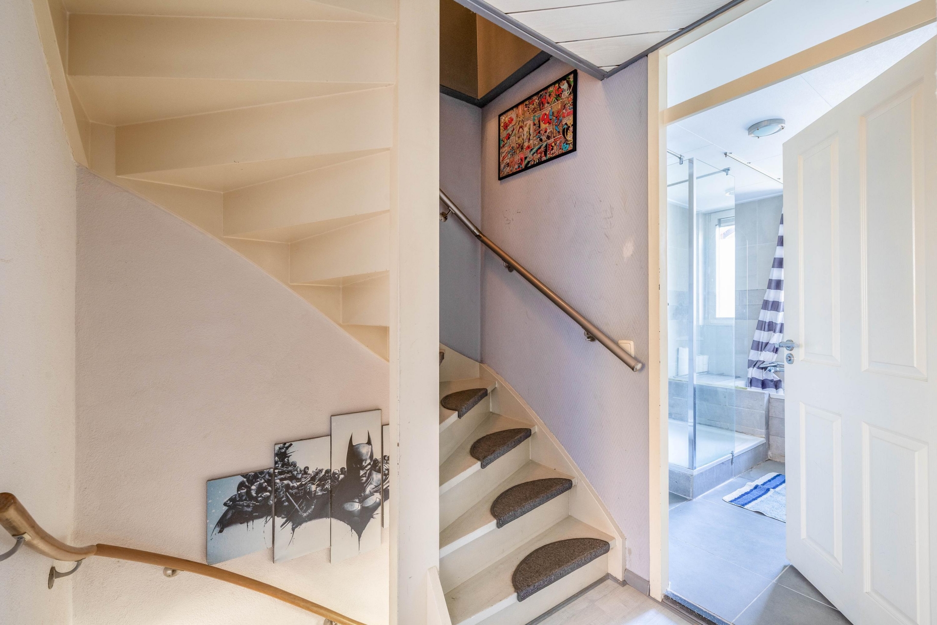 Op de tweede verdieping zijn nog twee slaapkamers te vinden, beide voorzien van dakramen en één met vaste kast. Ook hier is airconditioning aanwezig, ideaal voor de warmere maanden. De vliering biedt daarnaast extra opbergmogelijkheden.