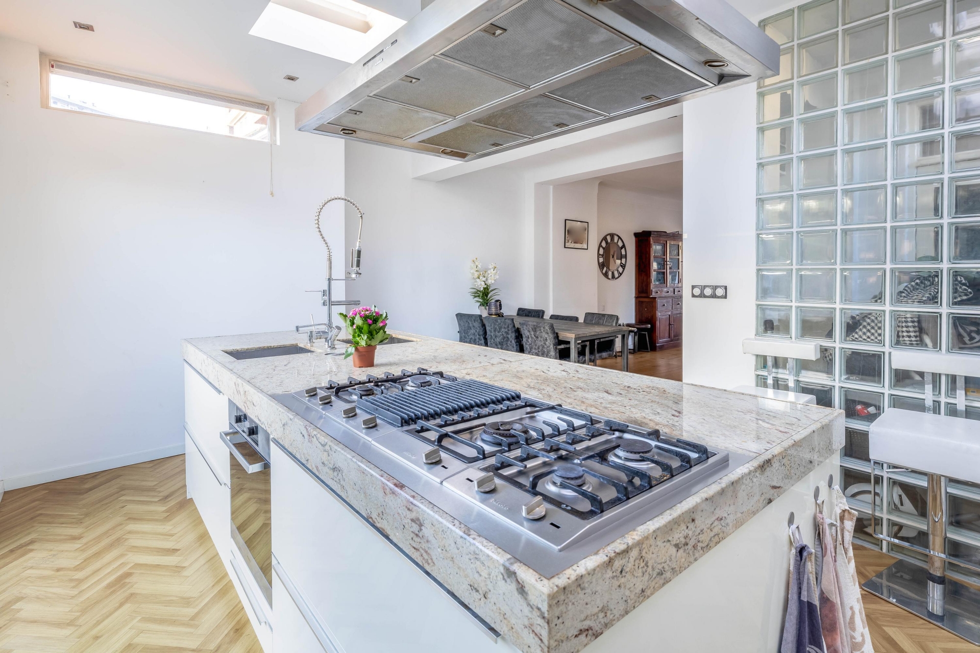 Aansluitend vind je de open woonkeuken, het kloppend hart van het huis. Dankzij twee dakkoepels baadt de keuken in natuurlijk licht. Hier kook je als een chef met een groot kook-/spoeleiland, veel inbouwapparatuur en voldoende bergruimte. Een plek om samen te komen, te koken én te genieten.
