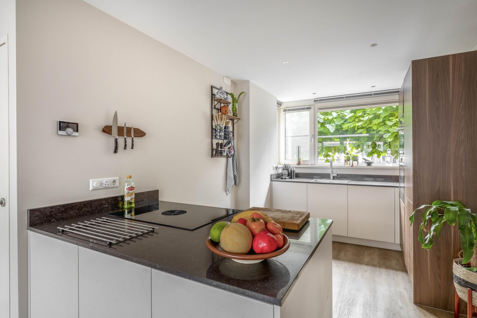 Zodra je binnenstapt, valt de ruime woonkamer direct op. Dankzij de grote raampartijen en schuifpui stroomt het daglicht binnen en ontstaat een prettige, open sfeer. De uitgebouwde woonkamer biedt alle ruimte voor een grote zithoek én een eettafel waar het hele gezin samenkomt. De open keuken sluit hier perfect op aan: een plek waar koken en samenzijn centraal staan.