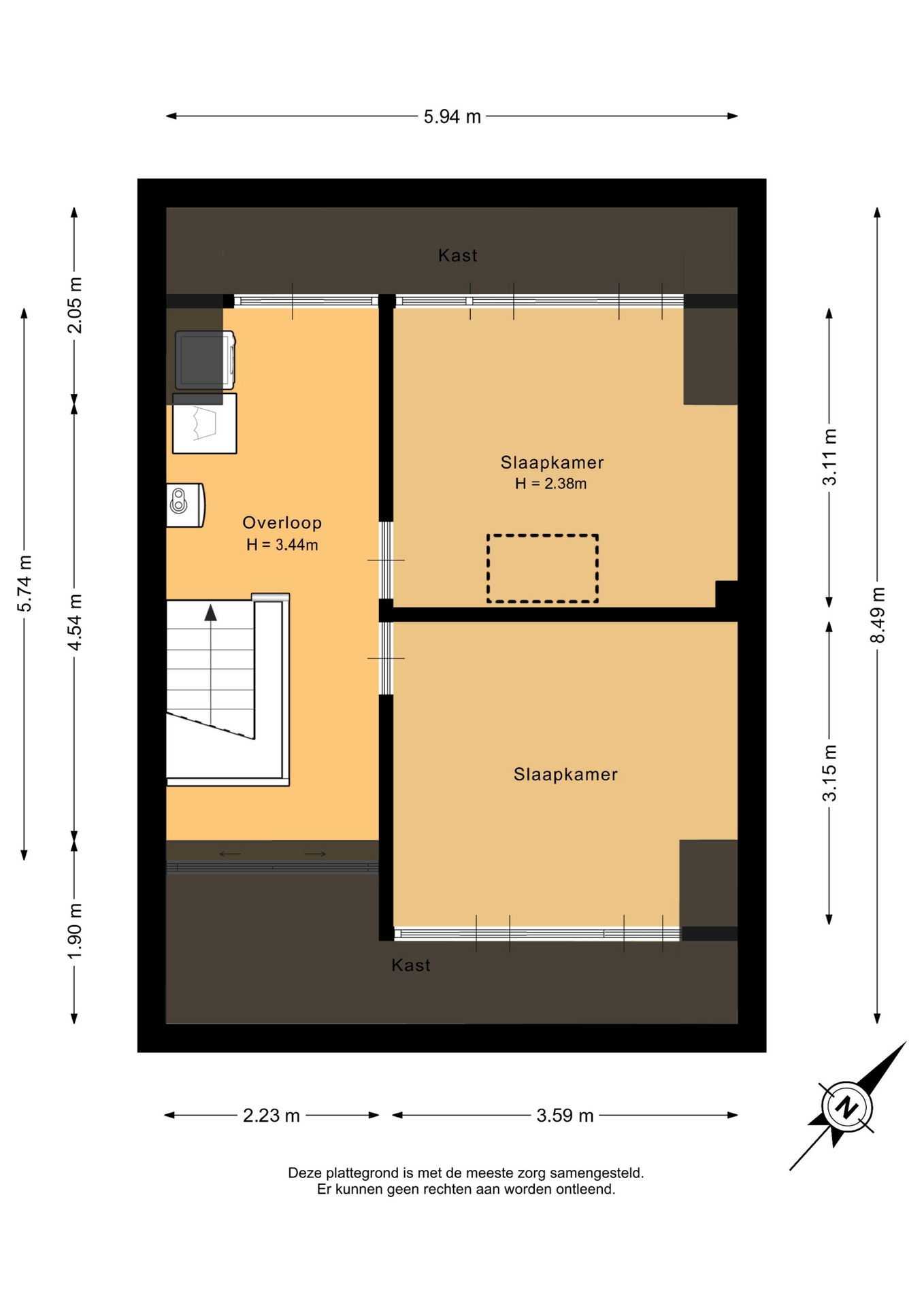 “Deze informatie is door ons met de nodige zorgvuldigheid samengesteld. Onzerzijds wordt echter geen enkele aansprakelijkheid aanvaard voor enige onvolledigheid, onjuistheid of anderszins, dan wel de gevolgen daarvan. Alle opgegeven maten en oppervlakten zijn indicatief.”