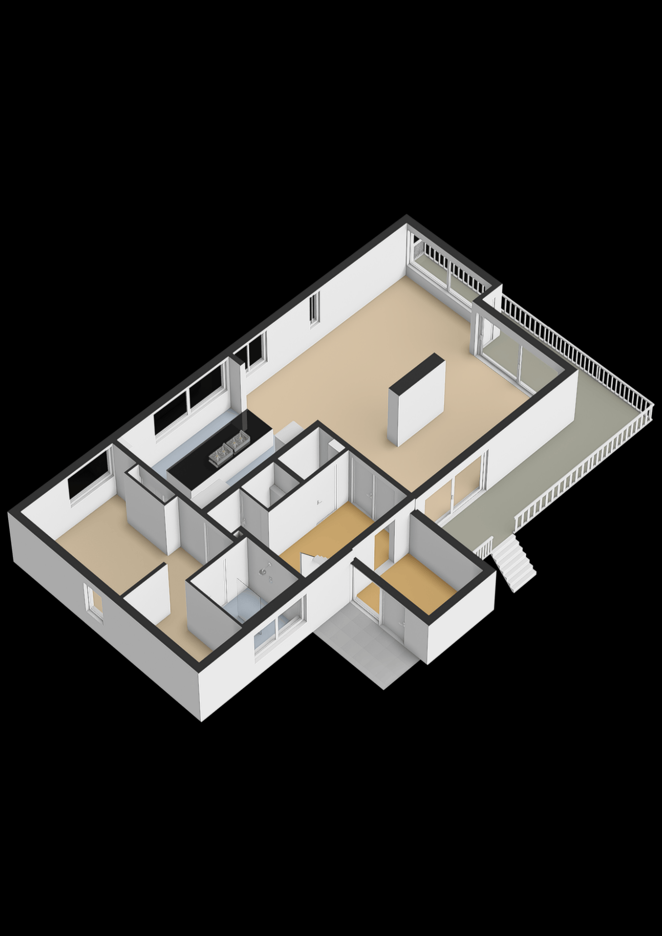 Aansluitend aan de keuken en woonruimte ligt het terras, waar binnen en buiten naadloos in elkaar overlopen. Op zonnige dagen zet je de deuren open en wordt het terras een verlengstuk van de leefruimte.