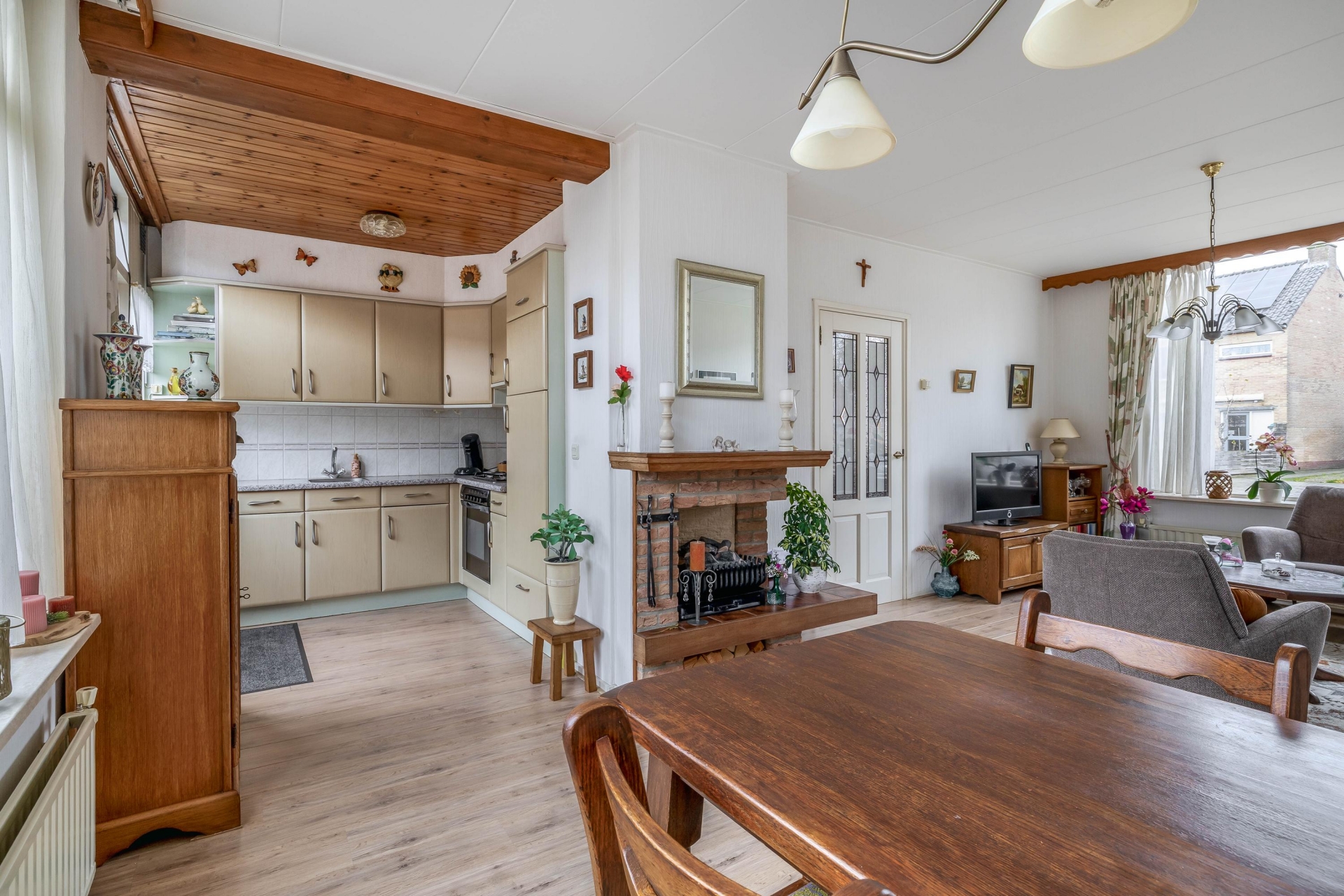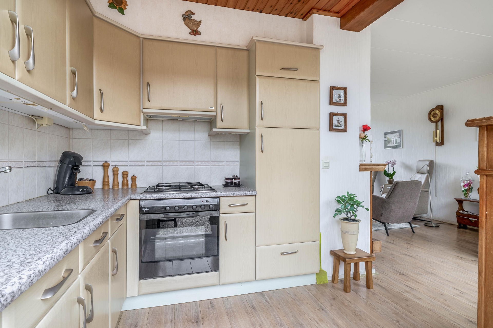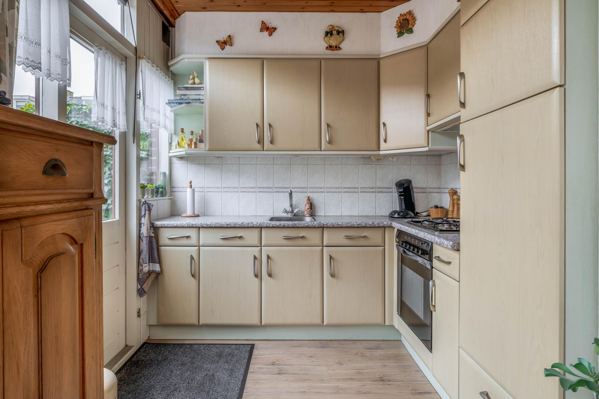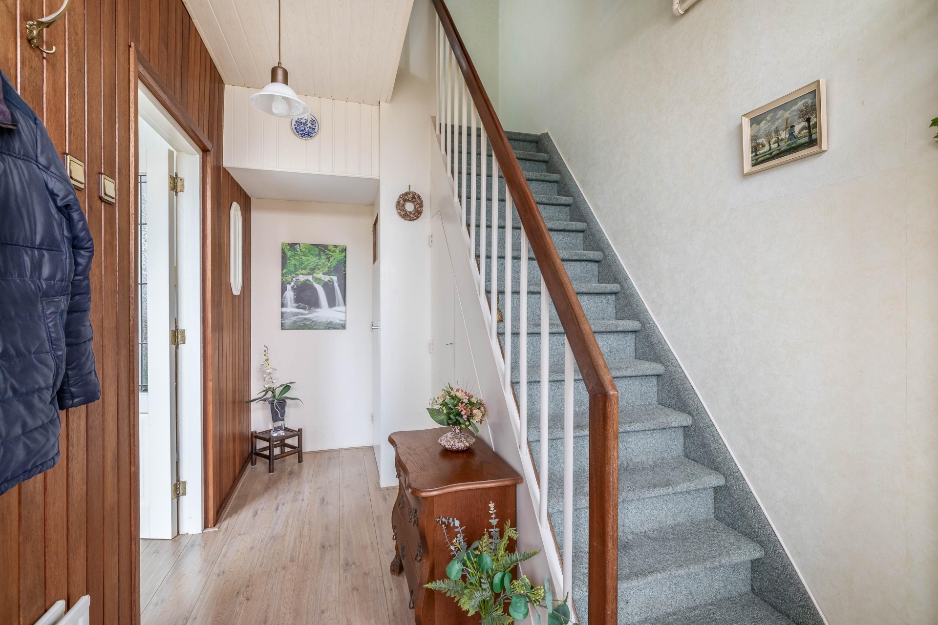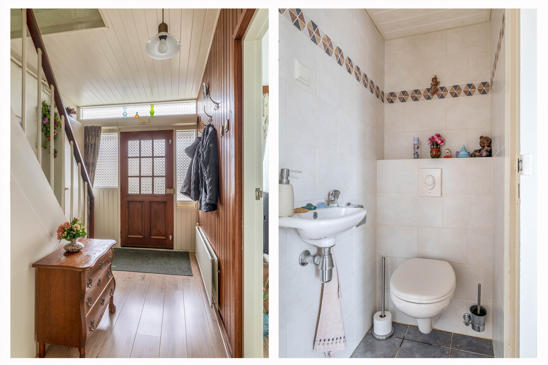 Entree via hal met meterkast en toiletruimte met hangend toilet en fonteintje. Praktische trapkast/bergruimte onder de trap. De lichte doorzonwoonkamer biedt een prettige leefruimte en staat in open verbinding met de keuken. De keuken is voorzien van diverse inbouwapparatuur, waaronder een oven, koelkast, vriezer en 4-pits kookplaat. Vanuit de keuken is er toegang tot de ruime en zonnige achtertuin met stenen berging en achterom.