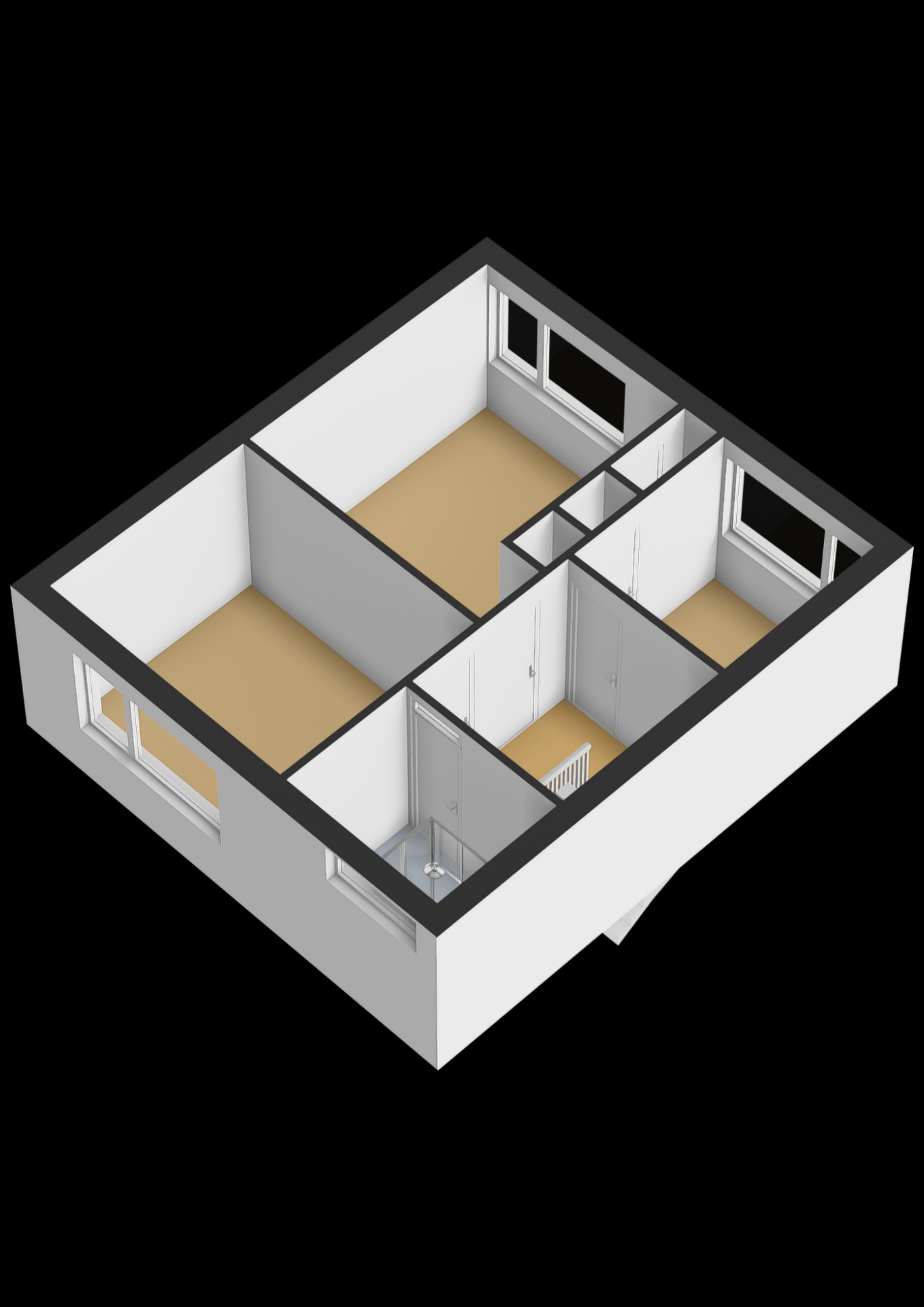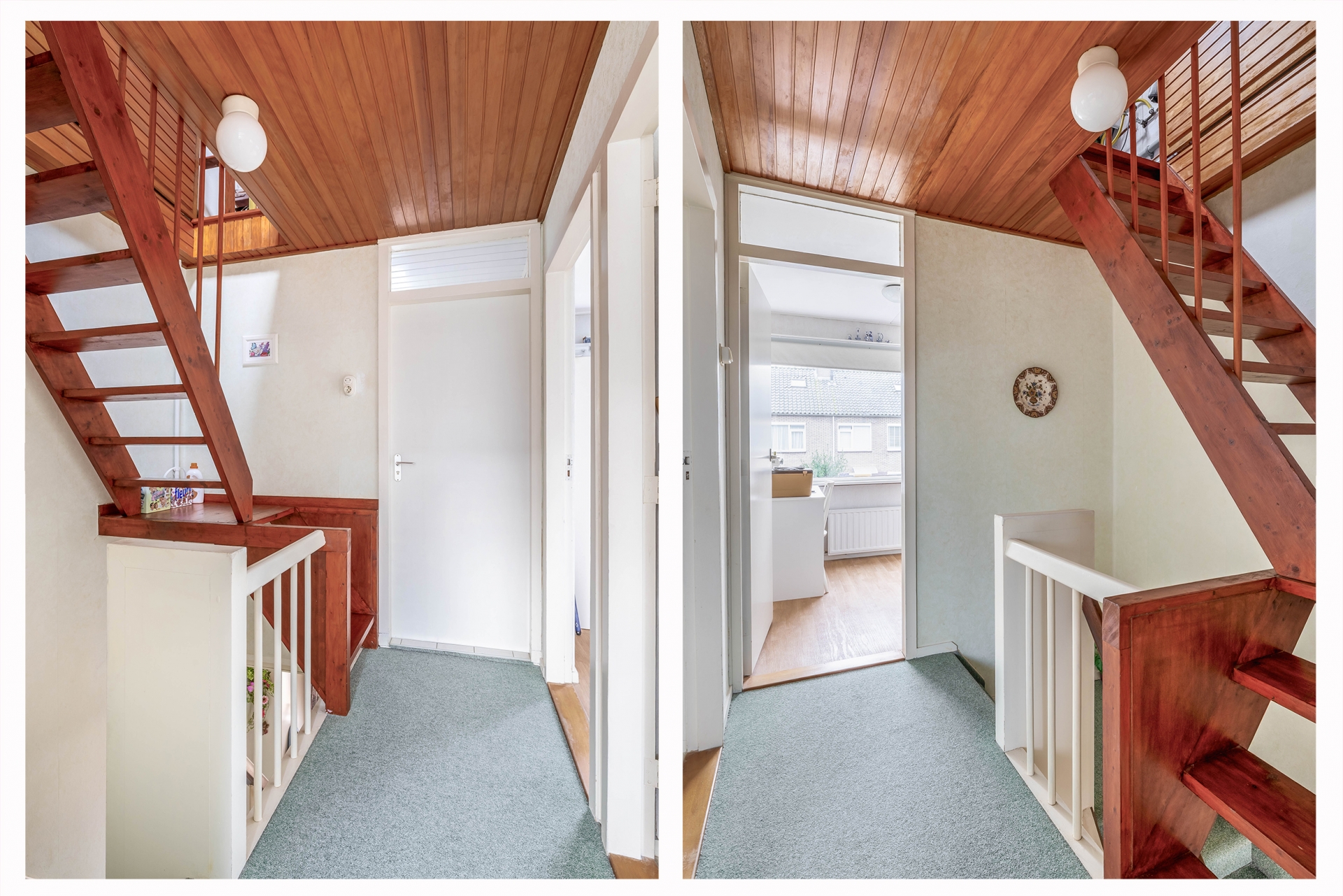 Ruime overloop met toegang tot 3 slaapkamers. Aan de voorzijde bevinden zich een royale slaapkamer en de badkamer. De badkamer is uitgerust met een douchecabine, wastafel, wasmachineaansluiting en een raam voor natuurlijke ventilatie. Aan de achterzijde liggen de 2e slaapkamer (hoofdslaapkamer) en de 3e slaapkamer. Op deze verdieping bevindt zich tevens een tweede toilet ruimte.