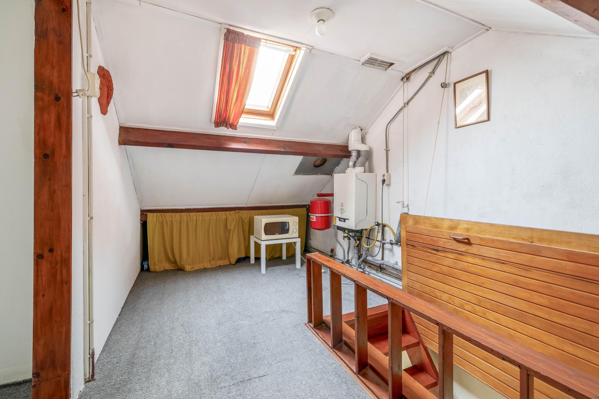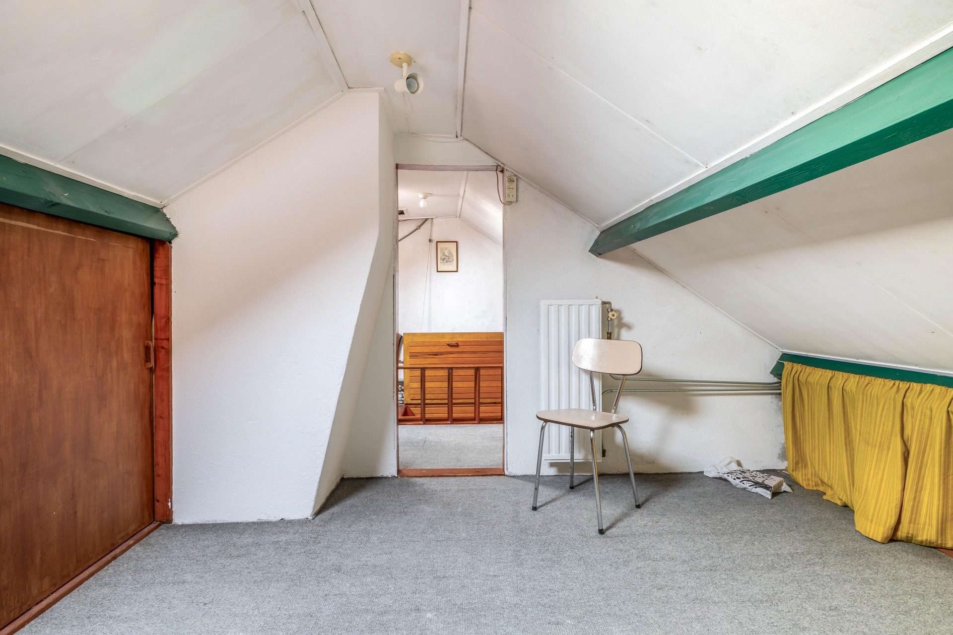 Overloop met dakvenster, opbergruimte en opstelplaats voor de cv-combiketel (2018). Ruime zolderkamer met dakraam, waar eenvoudig een vierde slaapkamer kan worden gerealiseerd. Via knieschotten is extra bergruimte aanwezig.