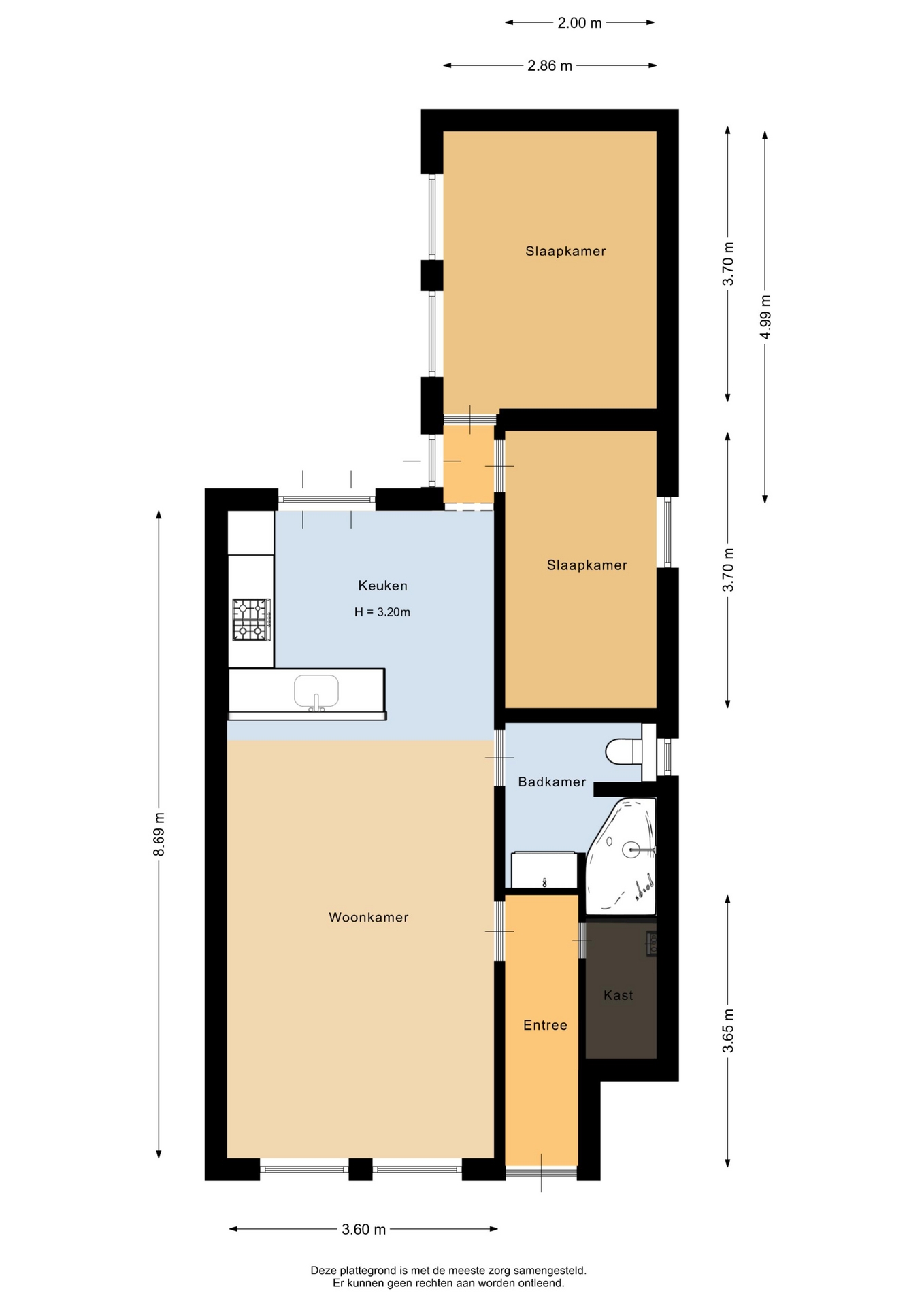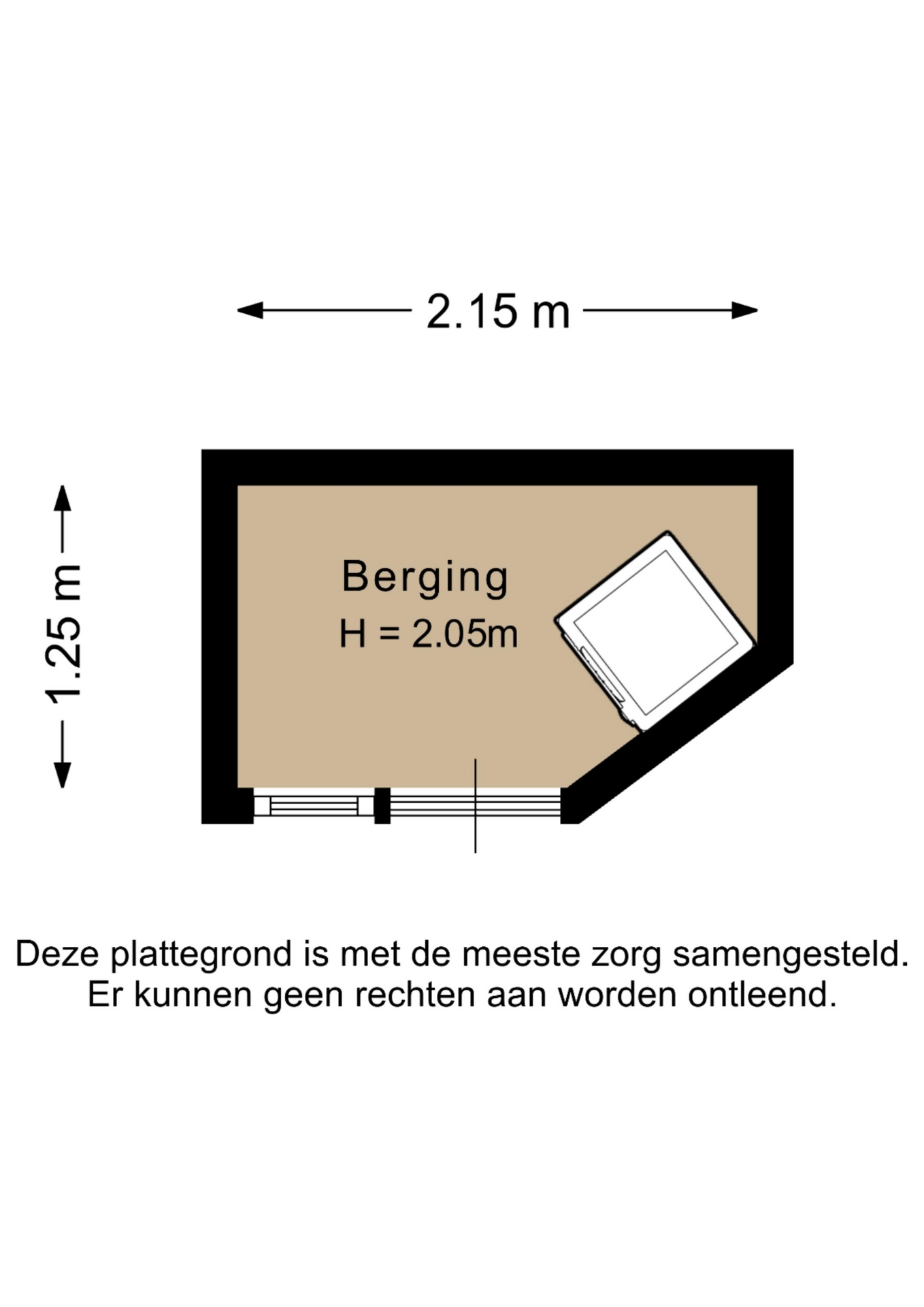 “Deze informatie is door ons met de nodige zorgvuldigheid samengesteld. Onzerzijds wordt echter geen enkele aansprakelijkheid aanvaard voor enige onvolledigheid, onjuistheid of anderszins, dan wel de gevolgen daarvan. Alle opgegeven maten en oppervlakten zijn indicatief.”