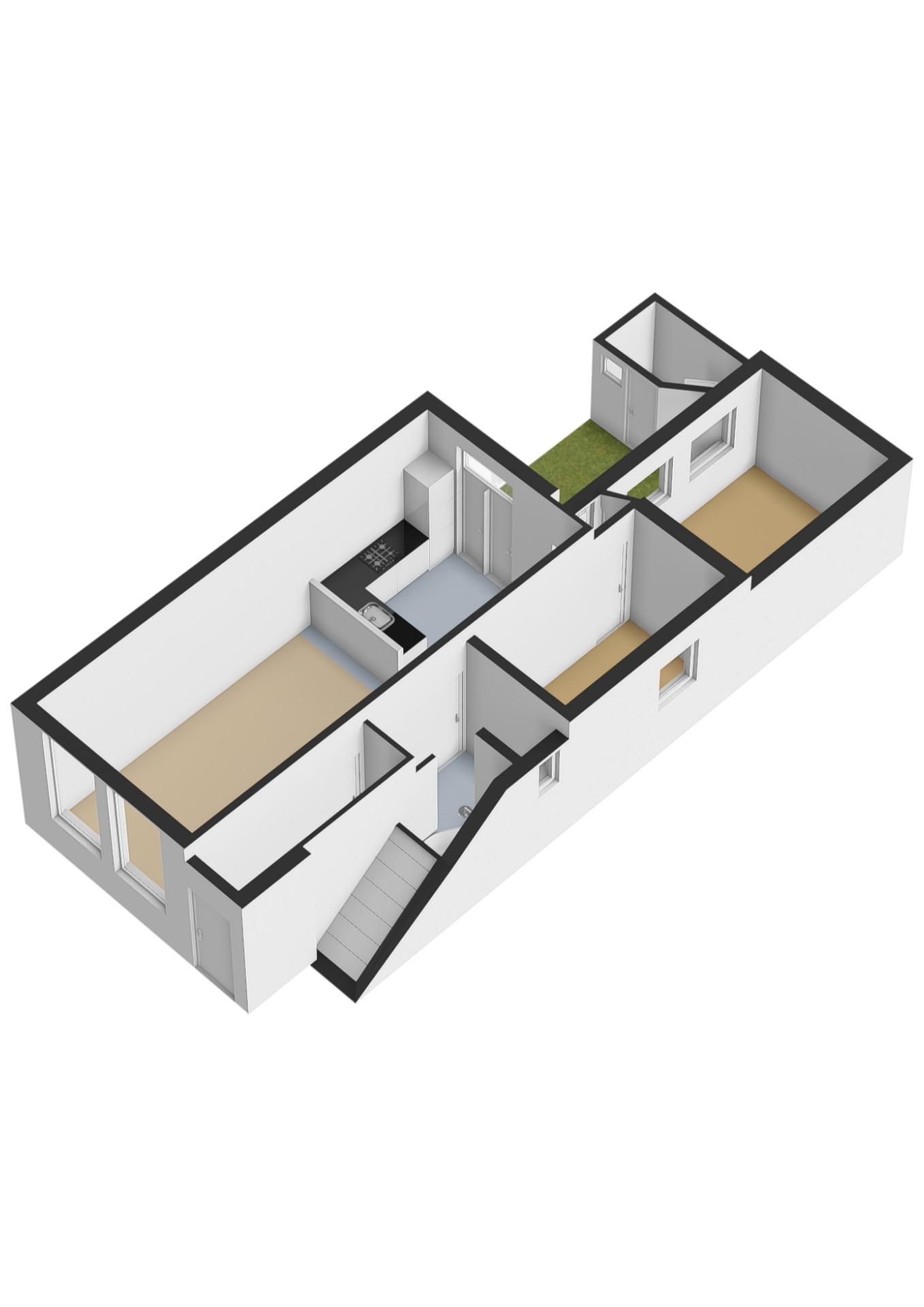 - Geheel voorzien van deuren en kozijnen met dubbel glas;