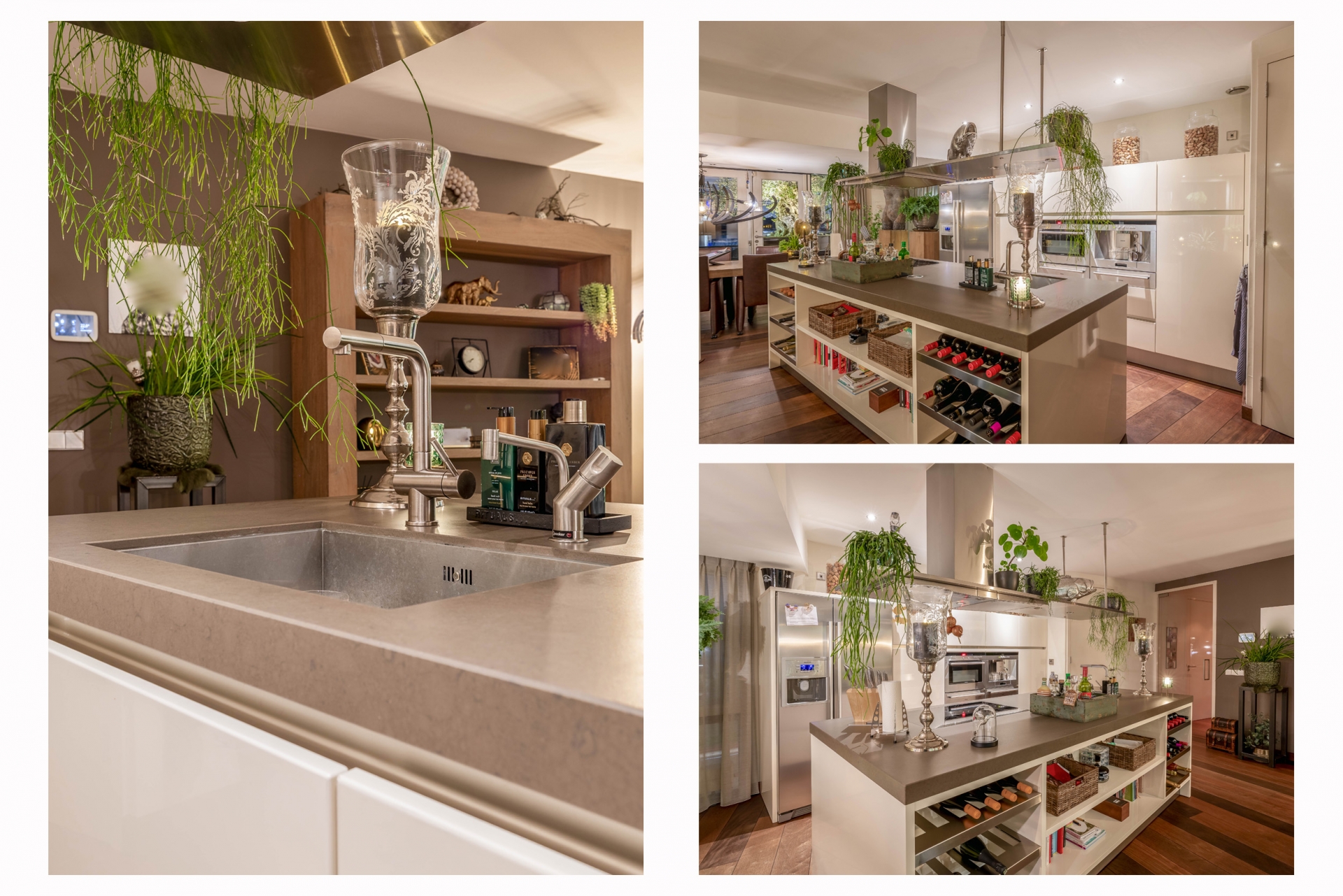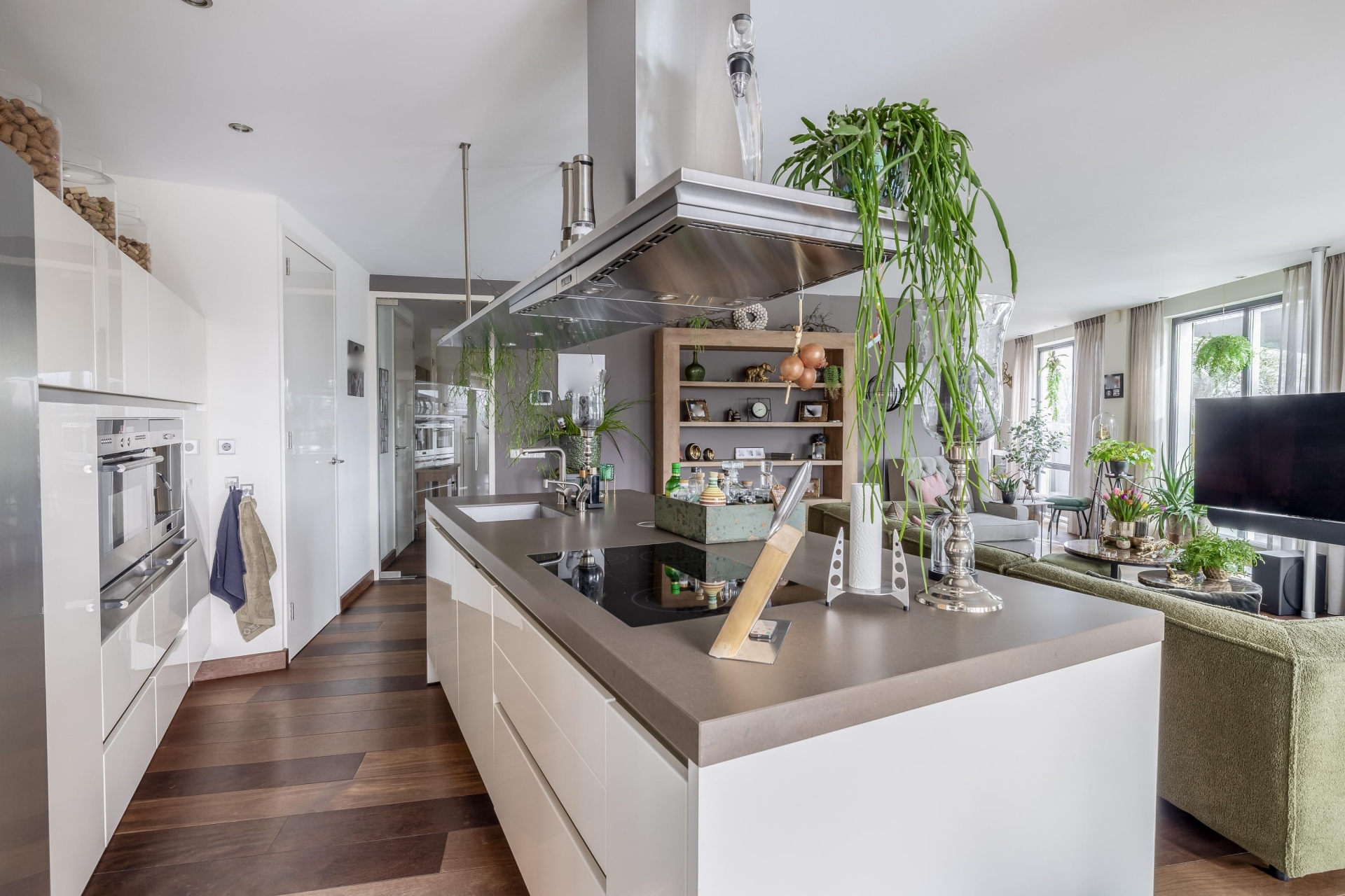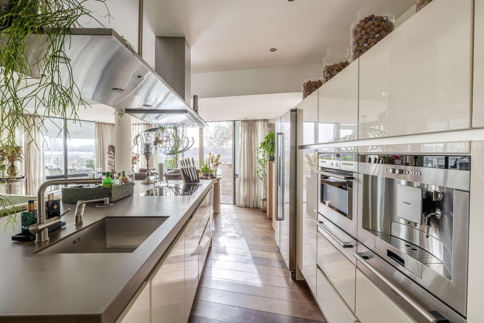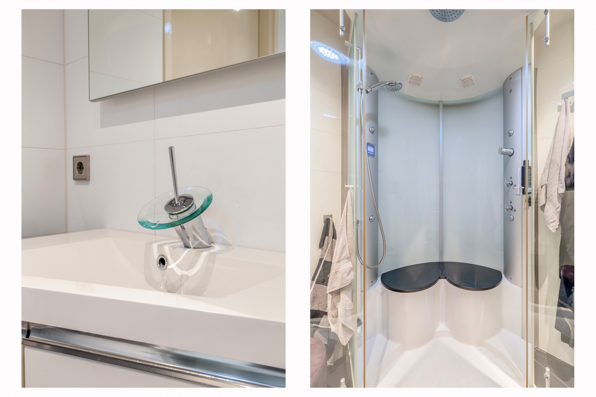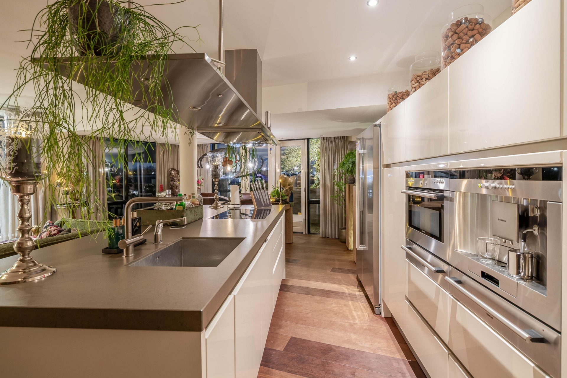 Het begint eigenlijk al wanneer we de afsluitbare parkeerkelder inrijden. Daar zijn 2 parkeerplaatsen gereserveerd voor dit adres, voorzien van een eigen oplaadpunt. In het appartement zelf is de fraaie badkamer voorzien van een toomdouche. Ook de open keuken met kookeiland is van alle gemakken voorzien: 2 warmhoud-lades, combimagnetron, koffie automaat, Amerikaanse koelkast, vaatwasser (2024) inductie kookplaat en design afzuigkap.