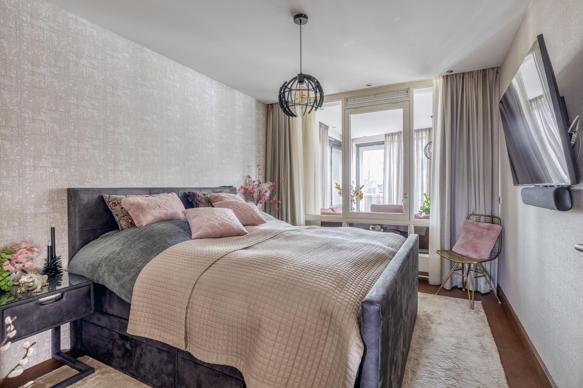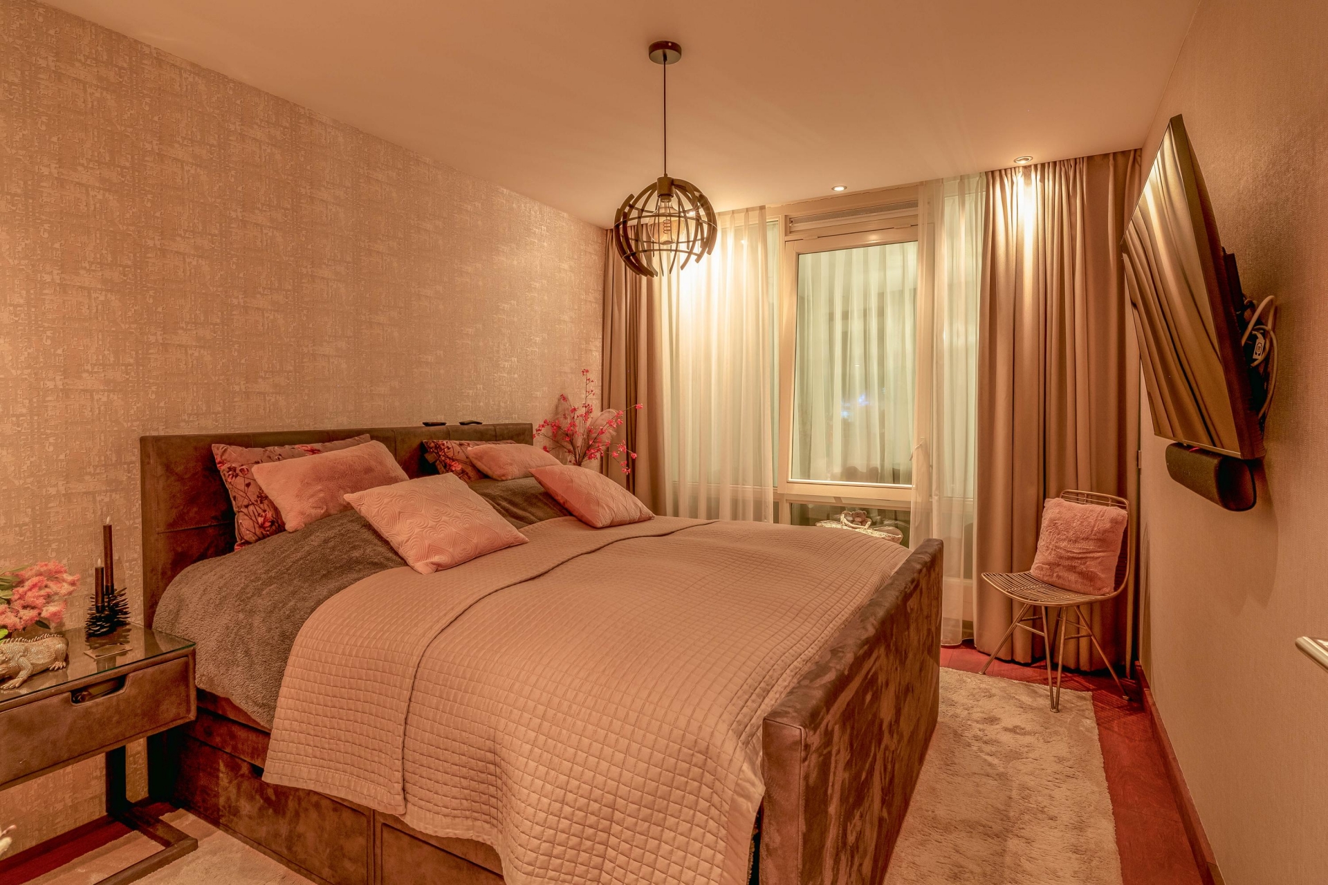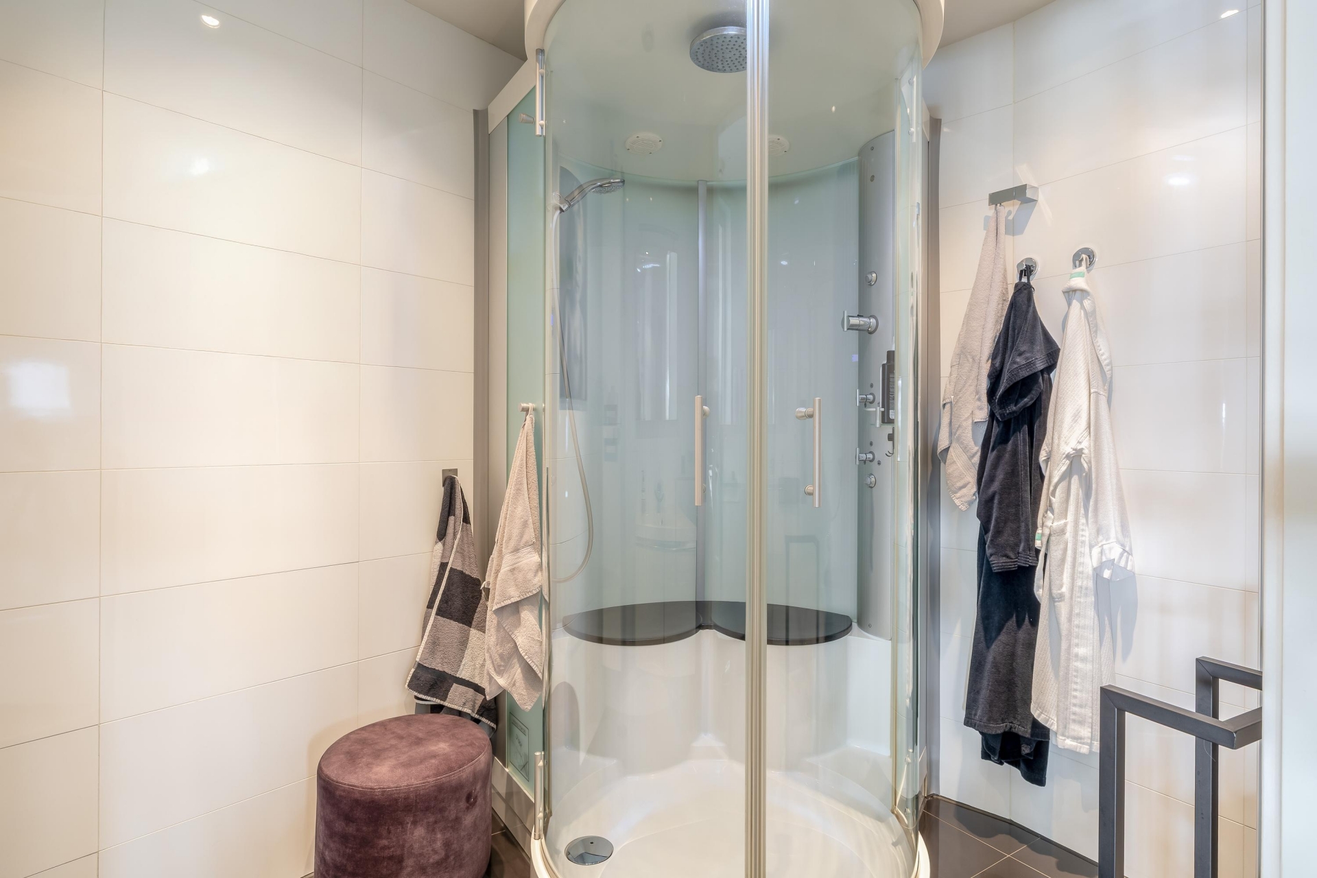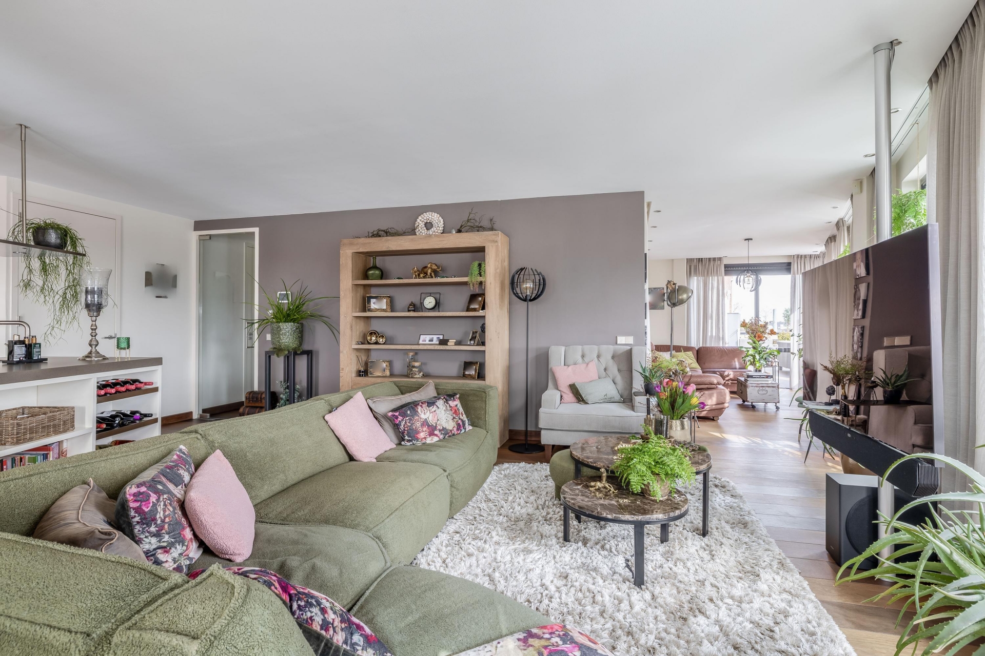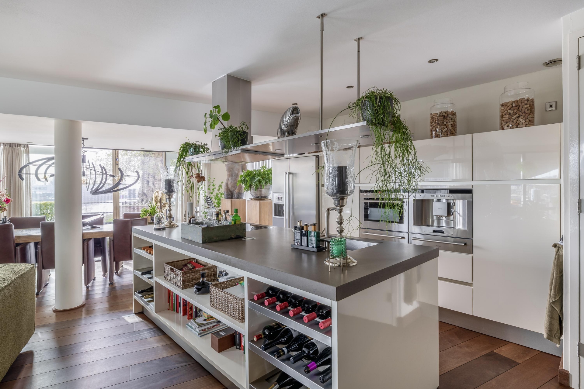Het begint eigenlijk al wanneer we de afsluitbare parkeerkelder inrijden. Daar zijn 2 parkeerplaatsen gereserveerd voor dit adres, voorzien van een eigen oplaadpunt. In het appartement zelf is de fraaie badkamer voorzien van een toomdouche. Ook de open keuken met kookeiland is van alle gemakken voorzien: 2 warmhoud-lades, combimagnetron, koffie automaat, Amerikaanse koelkast, vaatwasser (2024) inductie kookplaat en design afzuigkap.