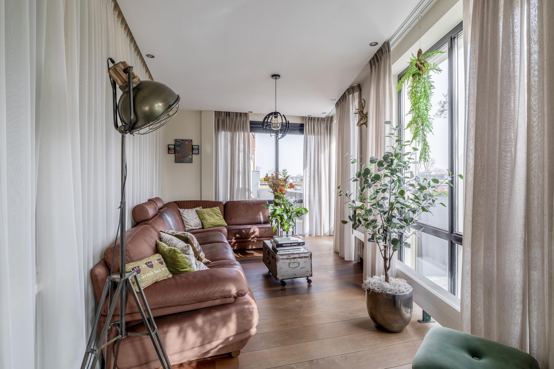 -Doorlopende massief houtenvloer (m.u.v. natte ruimtes)