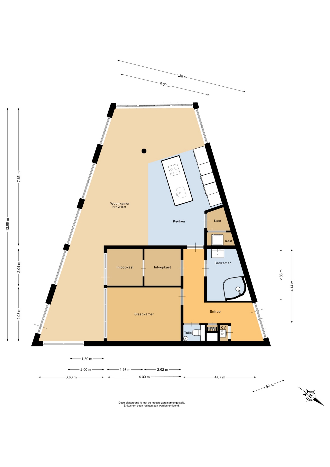“Deze informatie is door ons met de nodige zorgvuldigheid samengesteld. Onzerzijds wordt echter geen enkele aansprakelijkheid aanvaard voor enige onvolledigheid, onjuistheid of anderszins, dan wel de gevolgen daarvan. Alle opgegeven maten en oppervlakten zijn indicatief.”