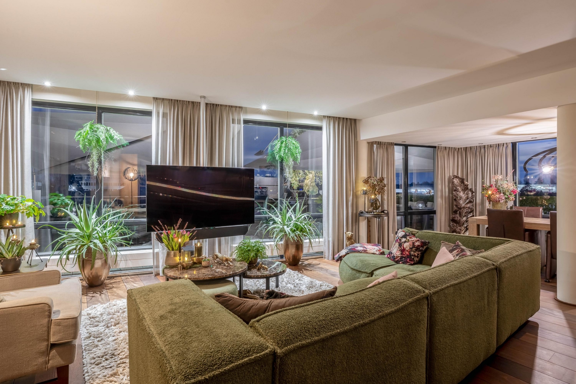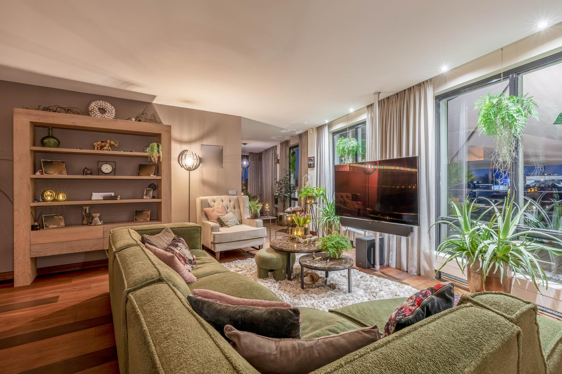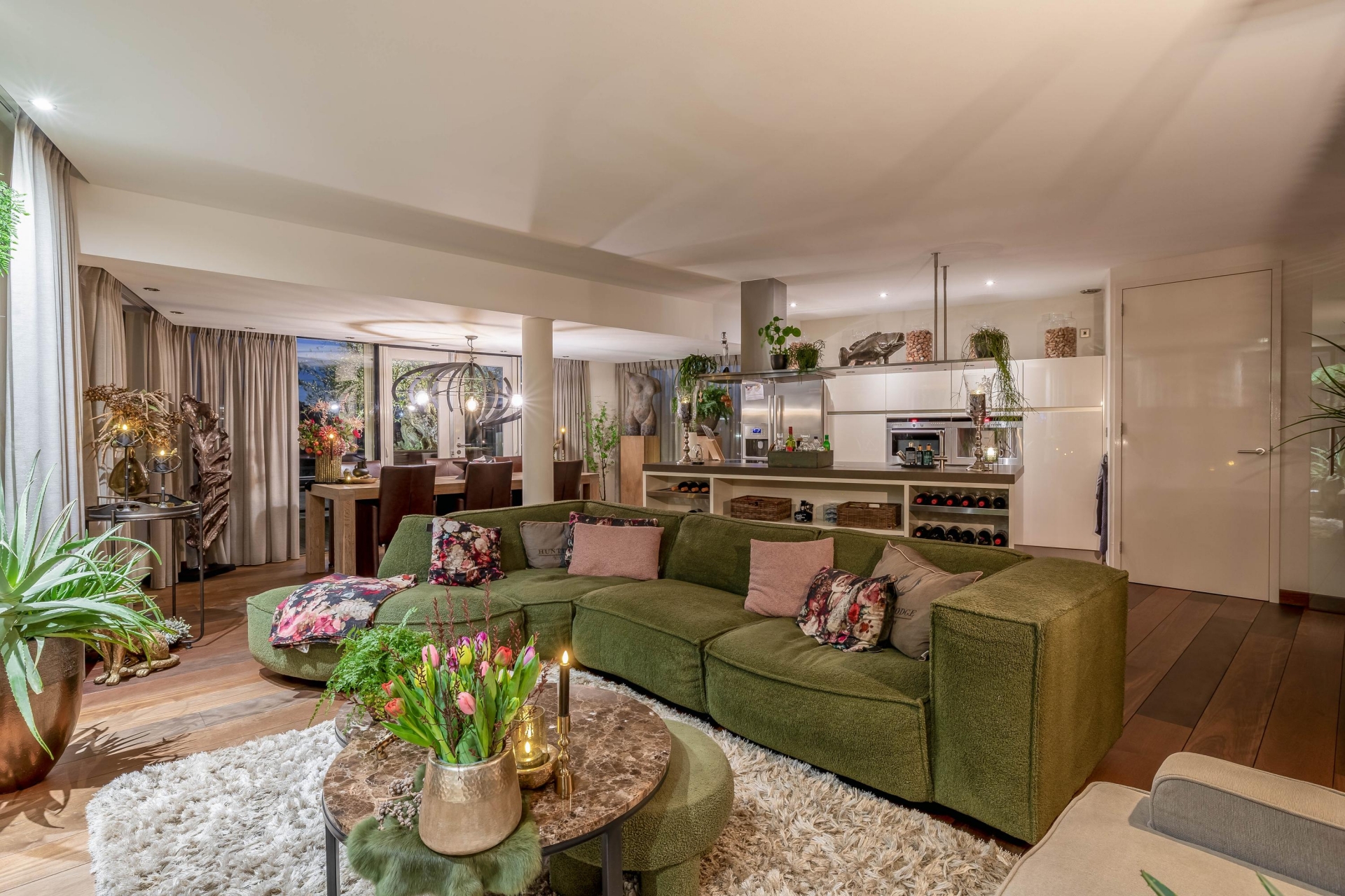 -Inbouwspots door vrijwel het gehele appartement