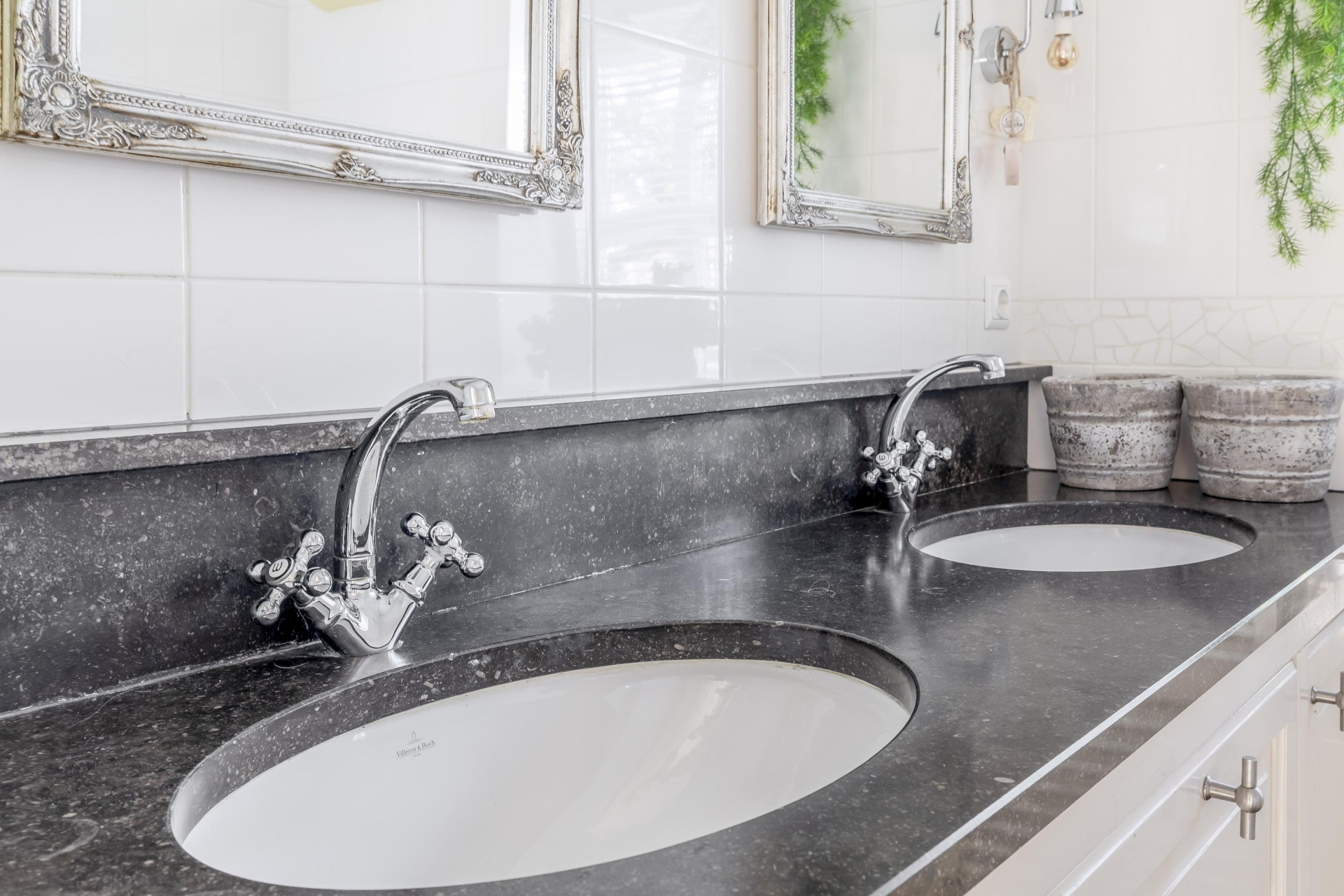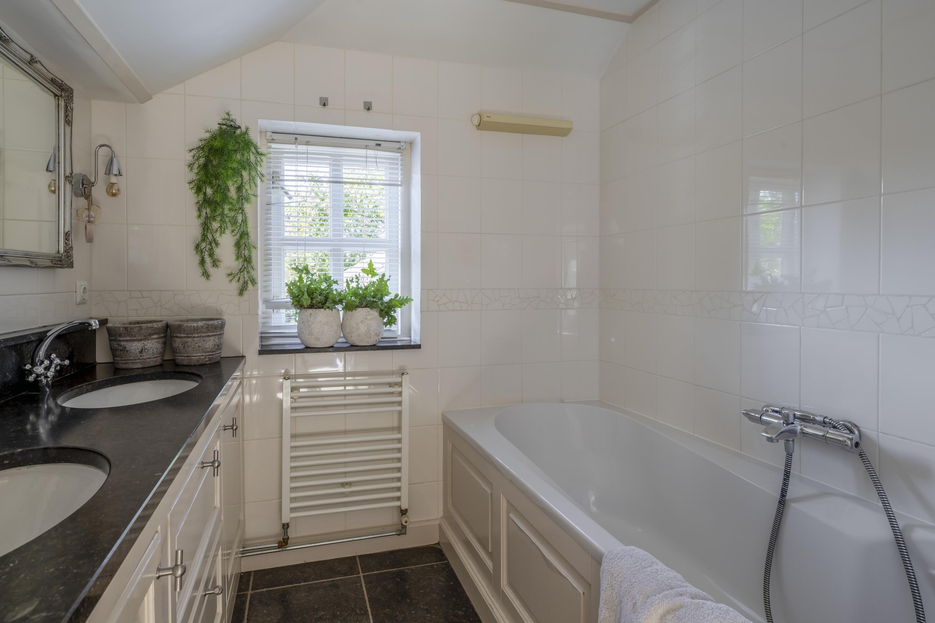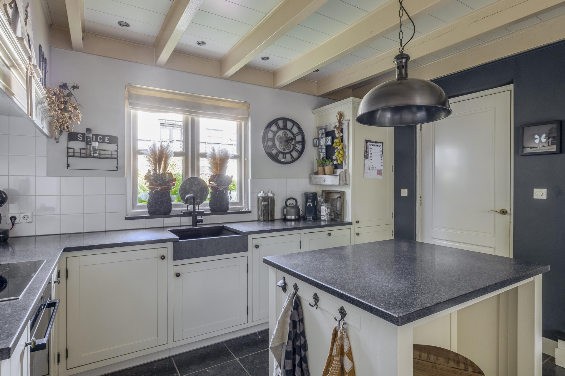 De keuken ademt landelijke charme: crème eiken houten fronten, een natuurstenen werkblad en een eiland maken het een plek waar koken een plezier is. De robuuste details worden aangevuld met moderne apparatuur en praktische bergruimte. Hier staat gezelligheid voorop, zonder in te leveren op functionaliteit. De plek om te dineren is in de serre waar je kunt genieten van de zon en het uitzicht op de tuin. De ruime kelder onder het huis is ideaal als extra bergruimte en daarnaast is er een praktische bijkeuken voor o.a. de wasapparatuur en de toilet.