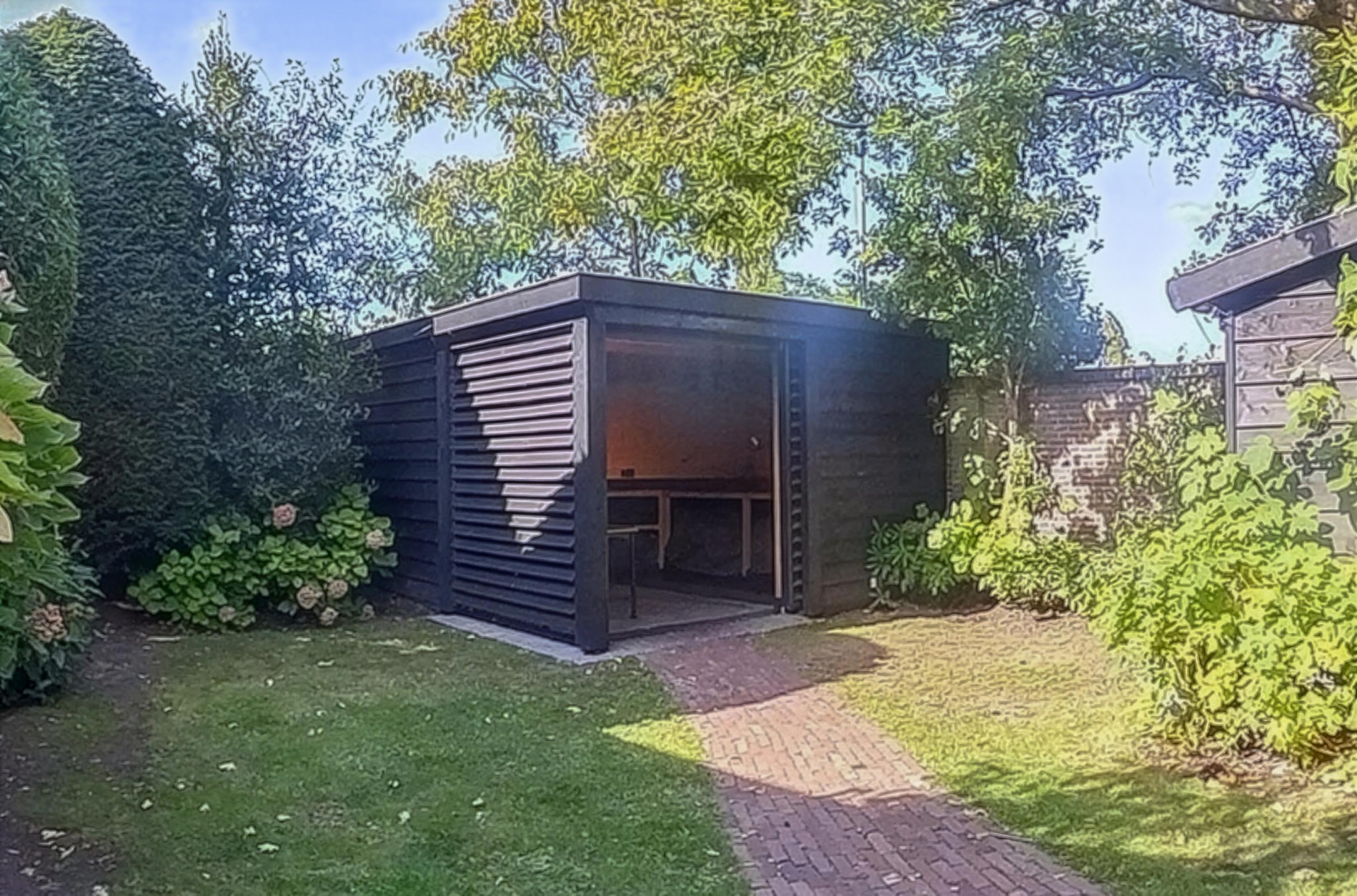 De grote vrijstaande schuur kan dienst doen als garage, hobbyruimte of werkplek. Deze multifunctionele ruimte is voorzien van keukenblok en extra bergruimte op de vliering. Een ideale uitkomst voor wie extra opslag zoekt of een ruimte nodig heeft voor klussen of creatief werk of als chillruimte voor de kinderen. Daarnaast is er achter in de tuin een berging voor de fietsen en heerlijke afsluitbare veranda, de ideale plek om rustig te borrelen!