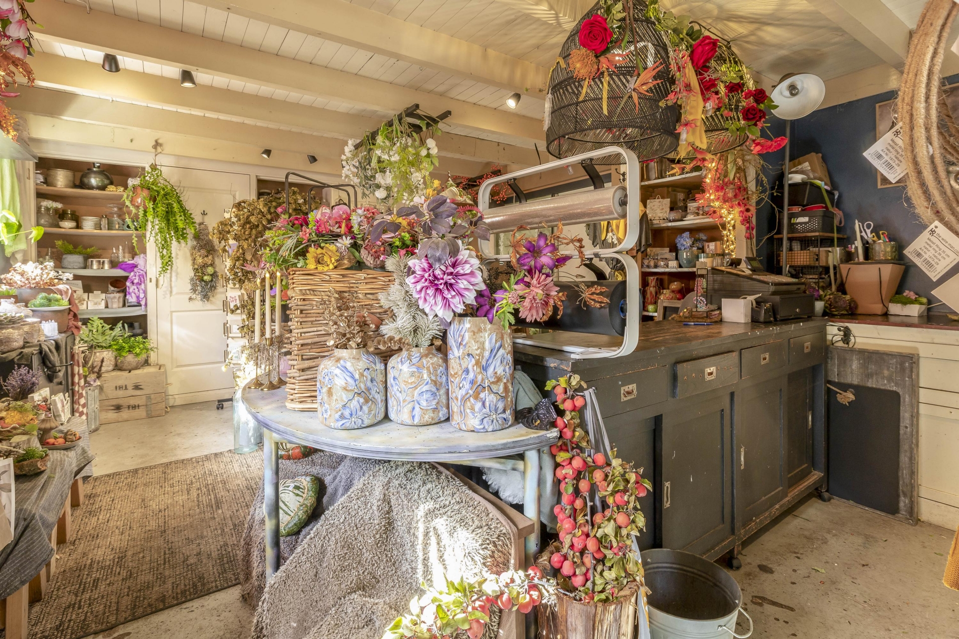 - Grote schuur, ideaal als hobbyruimte of garage (momenteel in gebruik als bloemenwinkel);