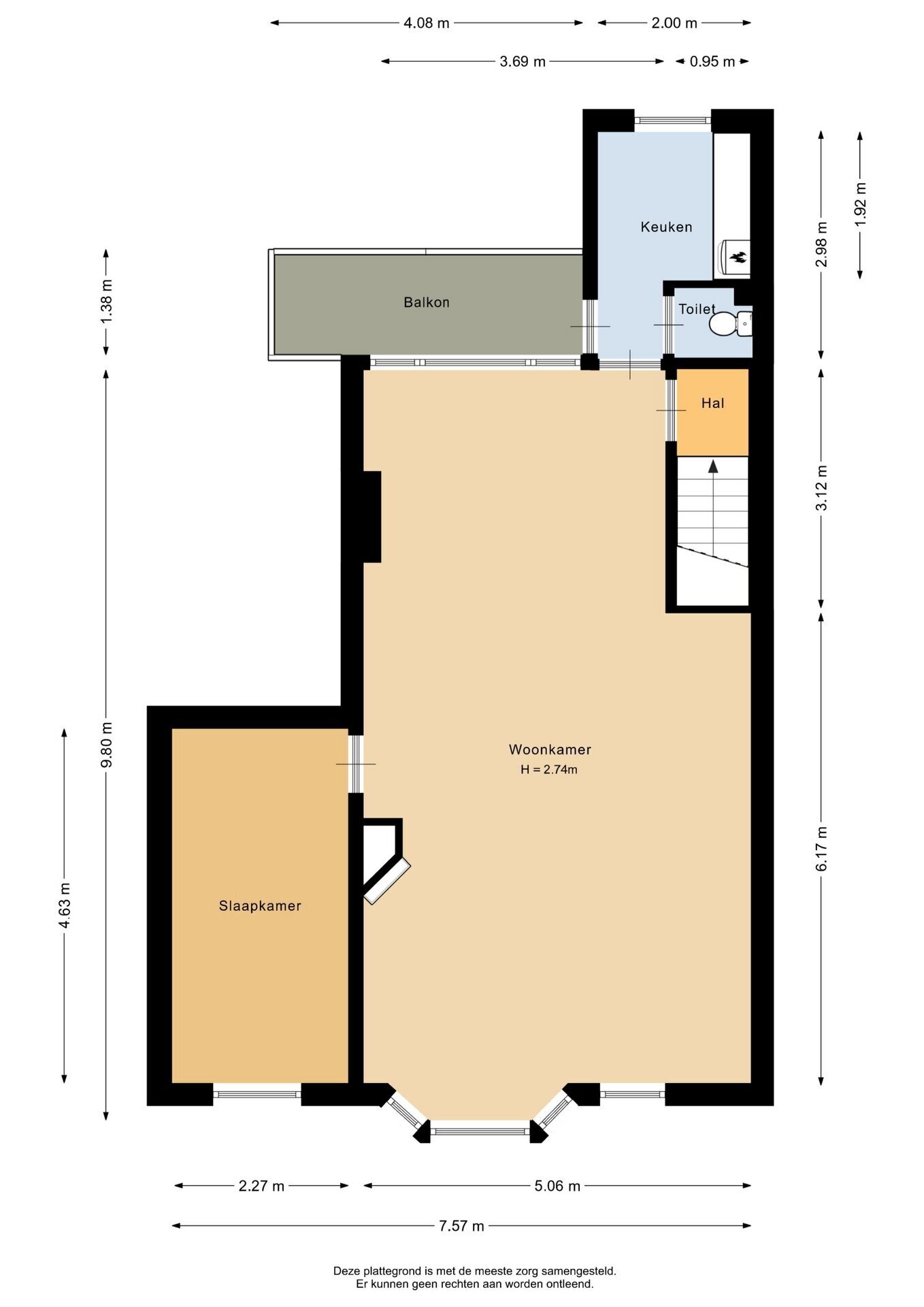 “Deze informatie is door ons met de nodige zorgvuldigheid samengesteld. Onzerzijds wordt echter geen enkele aansprakelijkheid aanvaard voor enige onvolledigheid, onjuistheid of anderszins, dan wel de gevolgen daarvan. Alle opgegeven maten en oppervlakten zijn indicatief.”