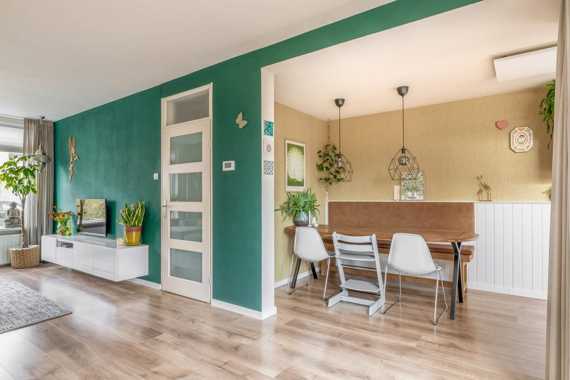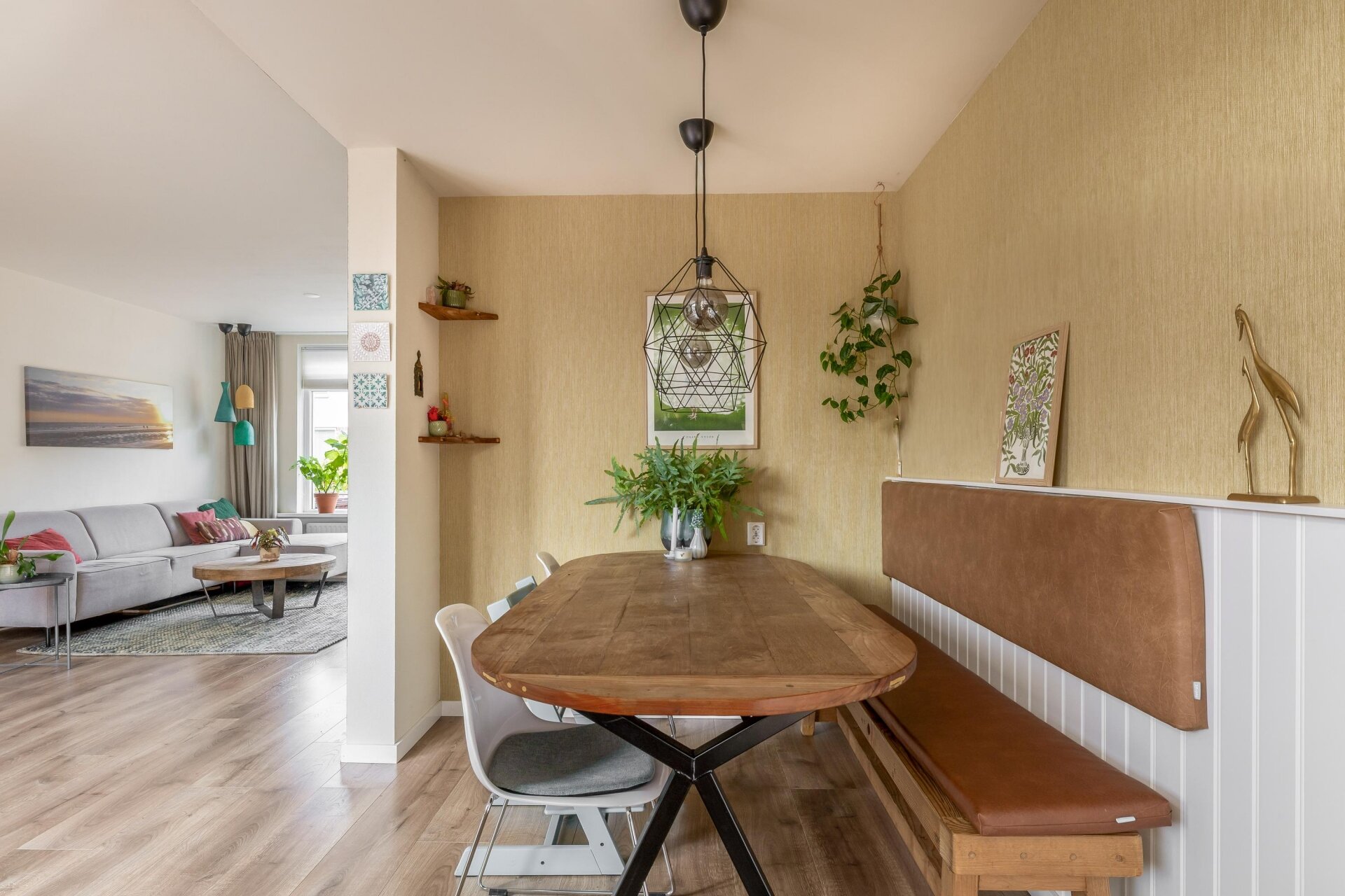 Bij binnenkomst voel je direct de fijne sfeer. De woonkamer is licht, rechthoekig en praktisch ingedeeld, met volop ruimte voor een comfortabele zithoek én een eethoek bij het raam. De neutrale afwerking met mooie kleuren en een nette vloer zorgt ervoor dat je hier zo je meubels neer kunt zetten.