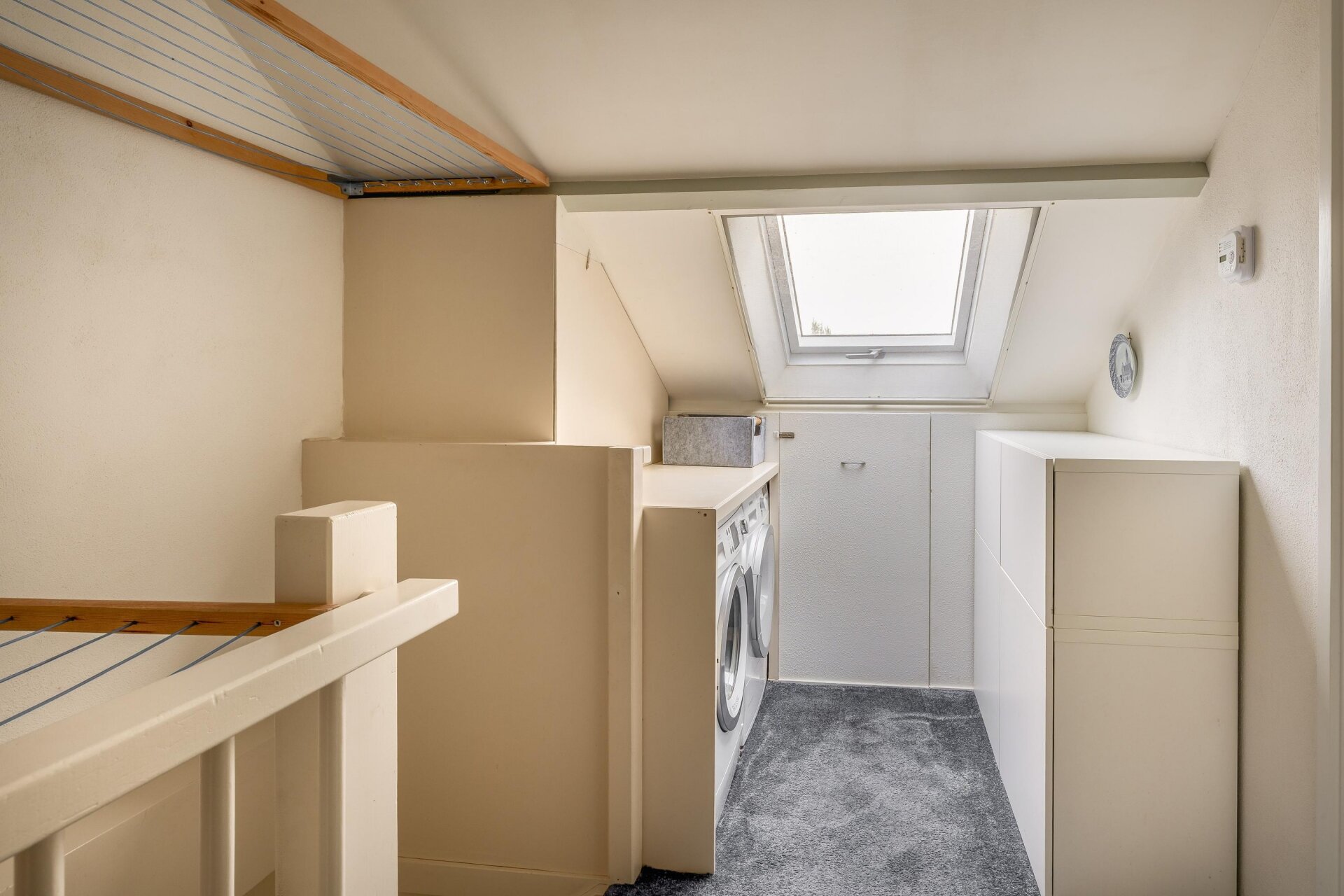 De tweede verdieping is bereikbaar via een vaste trap en biedt een vierde sfeervolle slaapkamer, voorzien van een dakkapel (dak vernieuwd in 2019) en extra bergruimte achter de inbouwkasten.