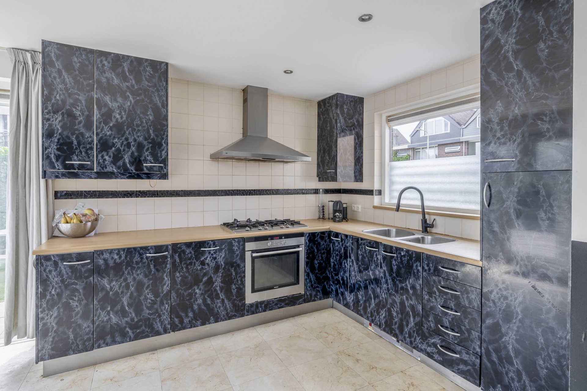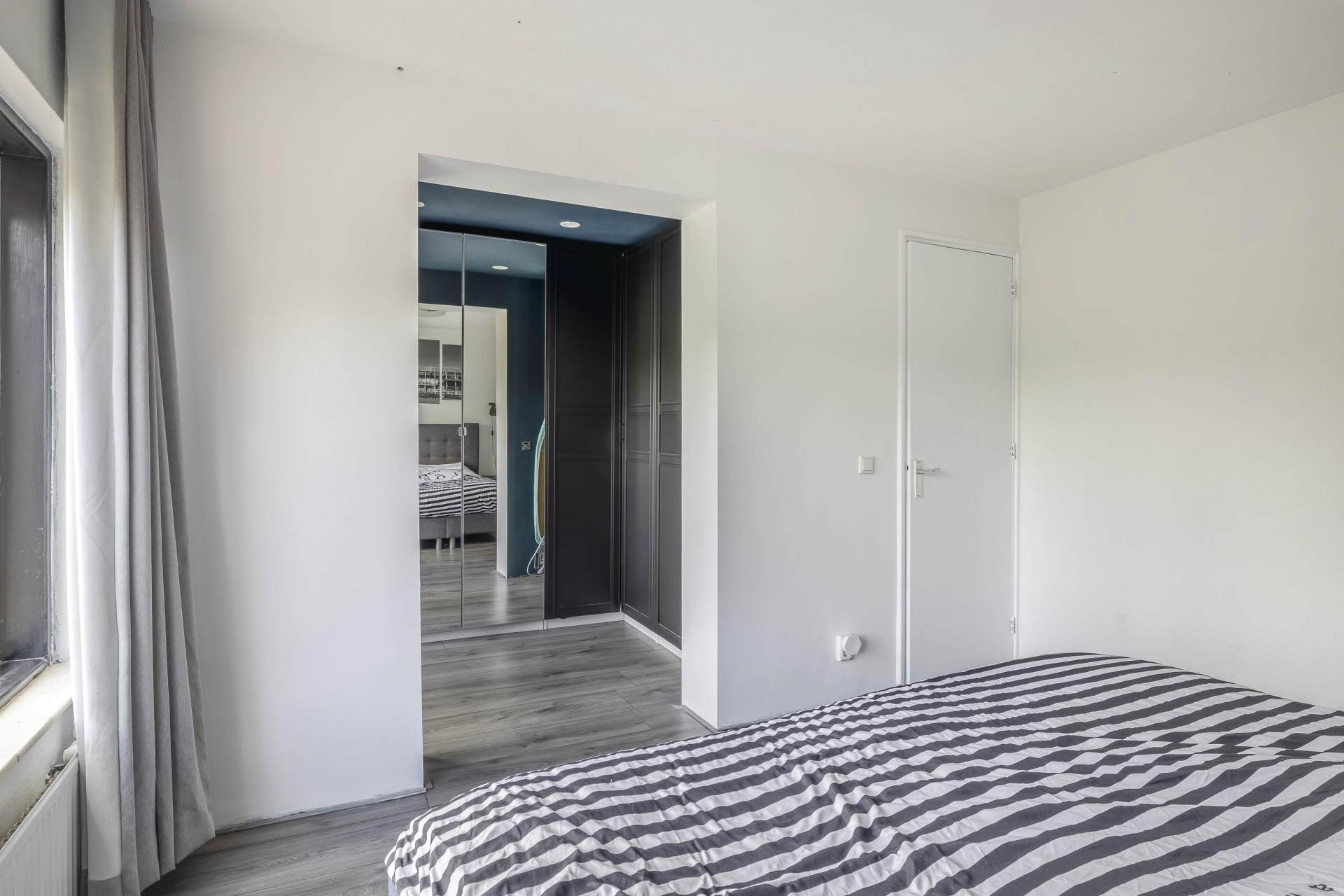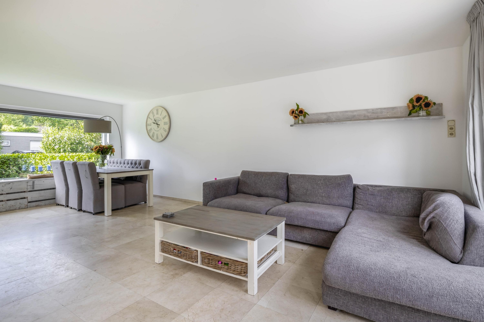 De begane grond is verrassend licht dankzij de vele raampartijen en de gunstige hoekligging. De ruime woonkamer heeft een open uitstraling en biedt genoeg plek voor een royale zithoek en een grote eettafel. De tuingerichte indeling zorgt ervoor dat je het buitengevoel naar binnen haalt – via meerdere openslaande deuren sta je zo in de tuin.