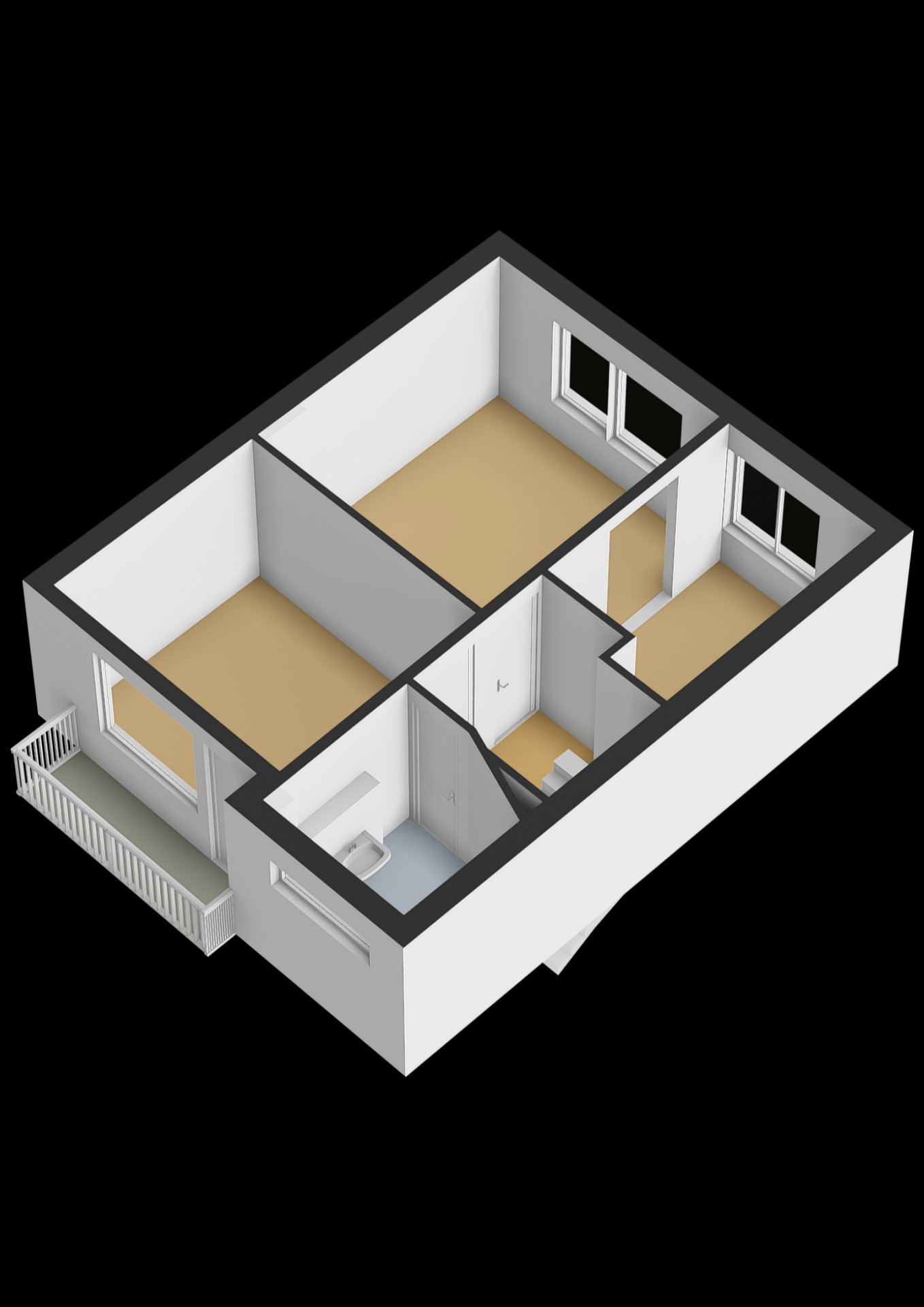 4 kamers, waarvan 3 slaapkamers