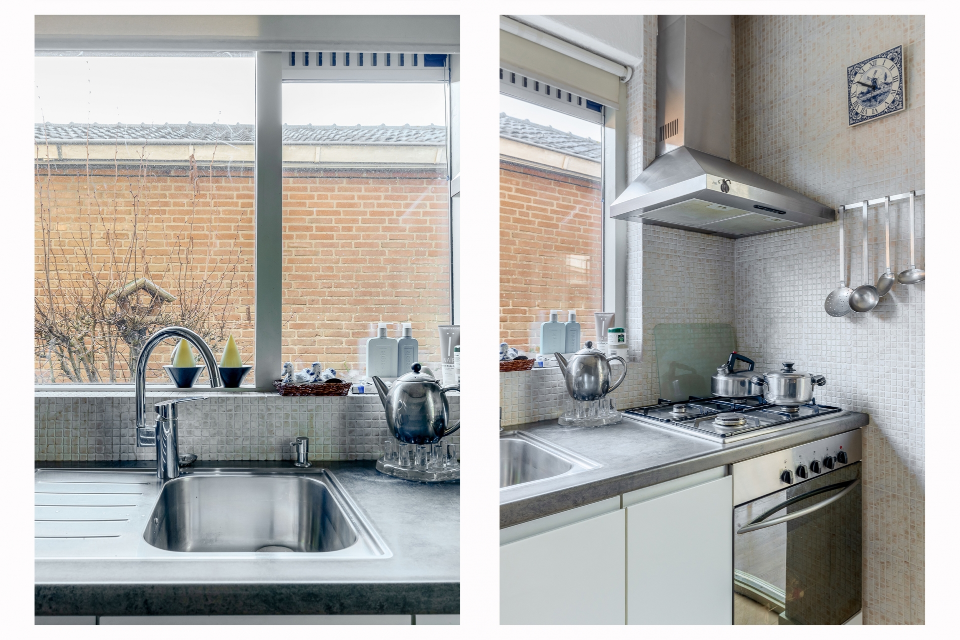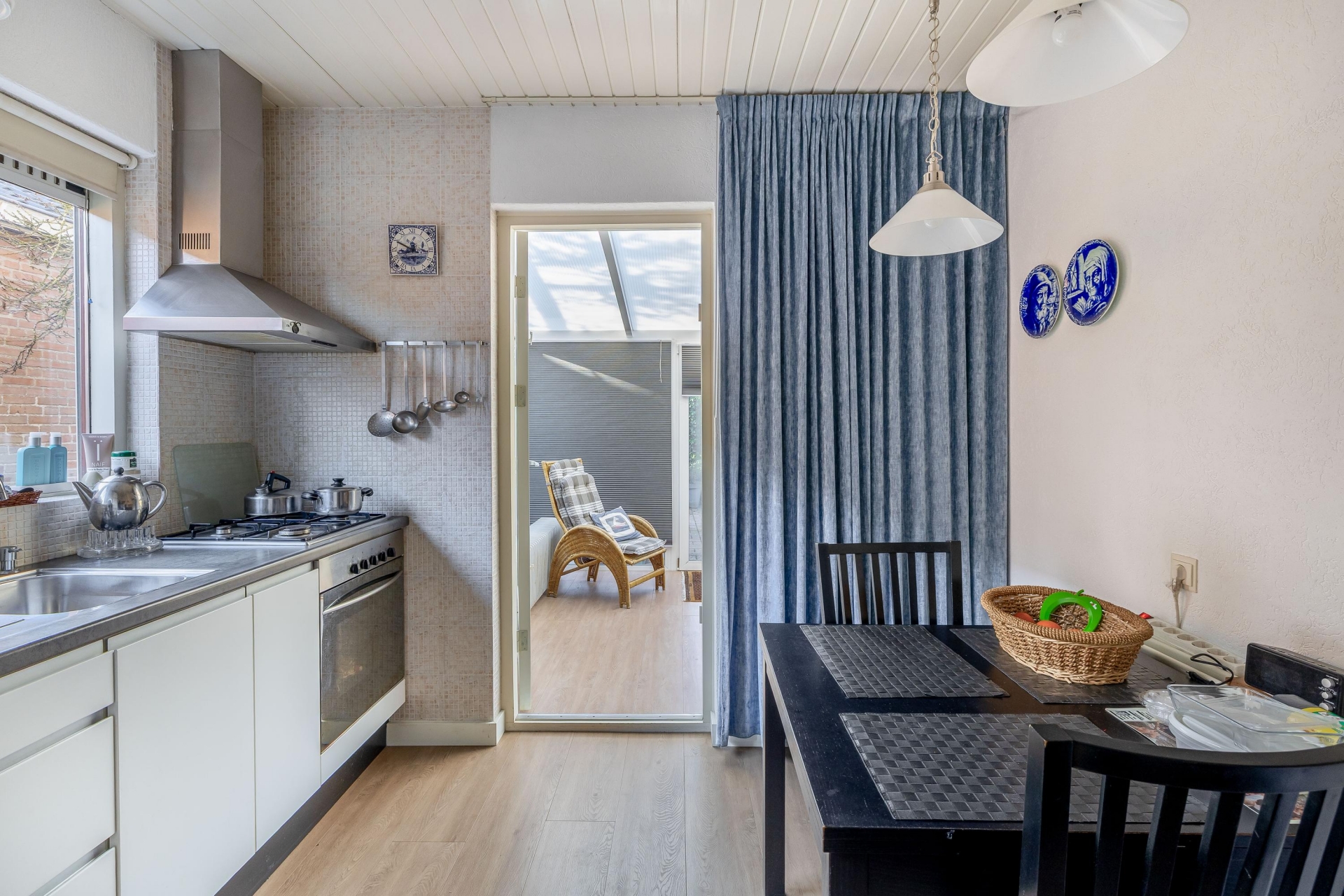 De keuken ligt ook aan de achterkant van het huis en is functioneel ingericht, met zicht op de tuin en directe verbinding met de serre. Hier ligt een goede basis, maar ook volop mogelijkheden om het geheel te moderniseren en naar eigen wens in te delen.