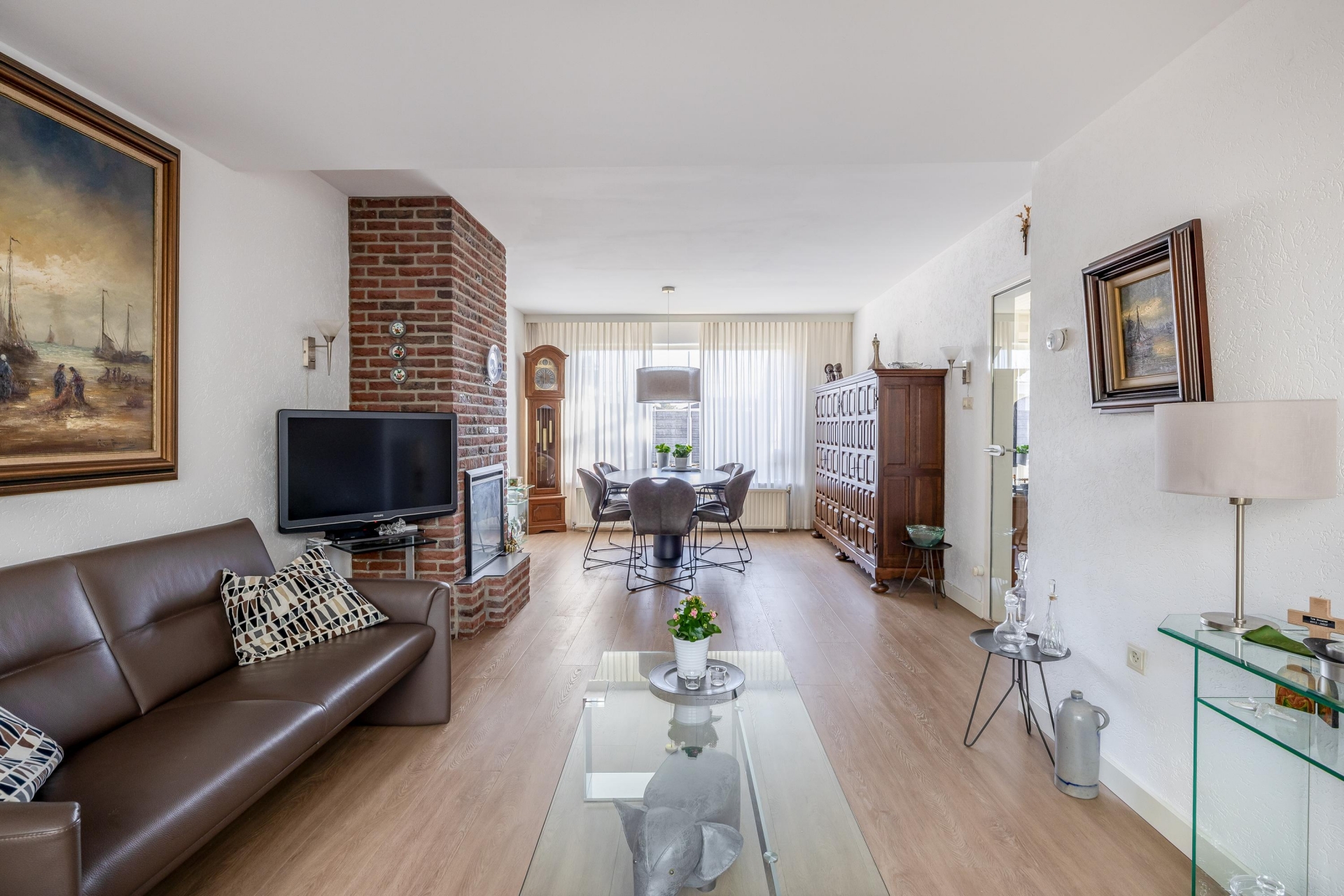 Bij binnenkomst valt direct op dat dit huis praktisch is ingedeeld en een prettige basis biedt. De woonkamer ligt aan de achterzijde en kijkt uit op de tuin. Dankzij de grote raampartijen komt er veel daglicht binnen, wat zorgt voor een lichte en aangename leefruimte.