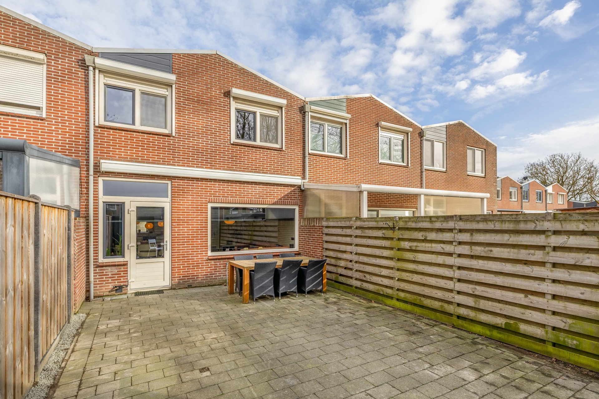 De achtertuin is gelegen op het westen. Dat betekent ’s middags en ’s avonds lekker van de zon genieten. De tuin is onderhoudsvriendelijk aangelegd en biedt voldoende ruimte voor een loungeset of eettafel. Achterin bevindt zich een ruime berging, handig voor tuingereedschap en extra opslag.