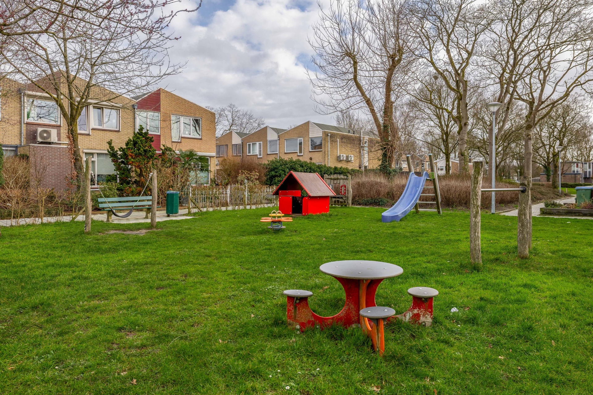 Direct achter de woning ligt een speelveld waar kinderen volop ruimte hebben om te spelen. Dit maakt de ligging extra aantrekkelijk voor jonge gezinnen. Ook voorzieningen liggen dichtbij: een basisschool en een kinderboerderij bevinden zich op loopafstand. Daarmee is de wijk duidelijk ingericht op comfortabel en kindvriendelijk wonen.