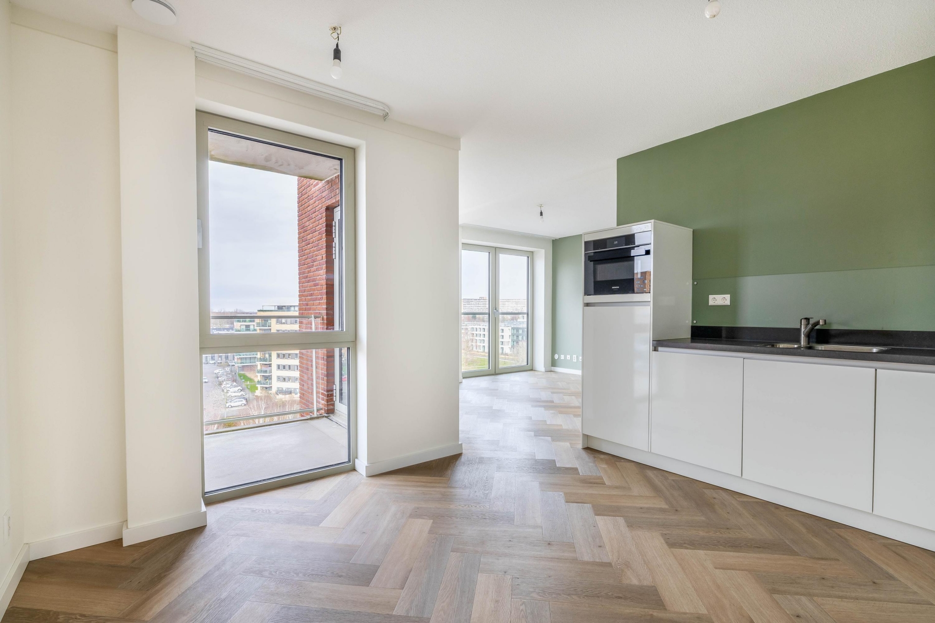 - Visgraatvloer met vloerverwarming en -koeling;