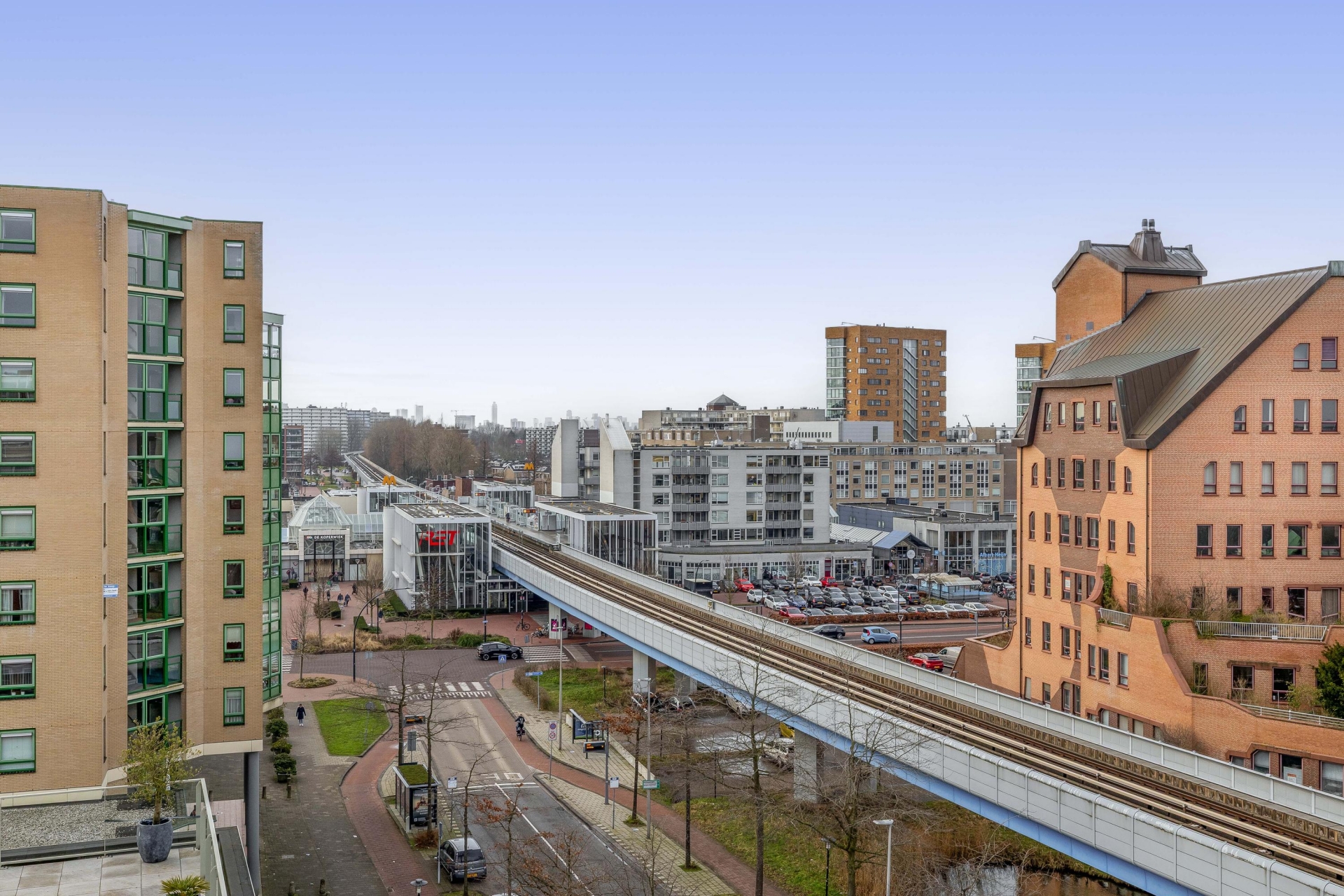 De locatie is geweldig te noemen, een centralere locatie is haast niet mogelijk! Binnen 1 minuut ben je lopend in het grote winkelcentrum de Koperwiek met de gezellige weekmarkt. Hier kan je naar toe om te shoppen of gewoon lekker een terrasje pakken. Het complex is omgeven door veel water en groen en heeft een kindvriendelijk karakter. Rotterdam is makkelijk bereikbaar met de metro welke zich bevindt bij het winkelcentrum. Hierdoor sta je binnen 15 minuten in het centrum. Ook zijn de A20 en A16 binnen enkele minuten bereikbaar. Kortom, dé ideale centrale locatie.