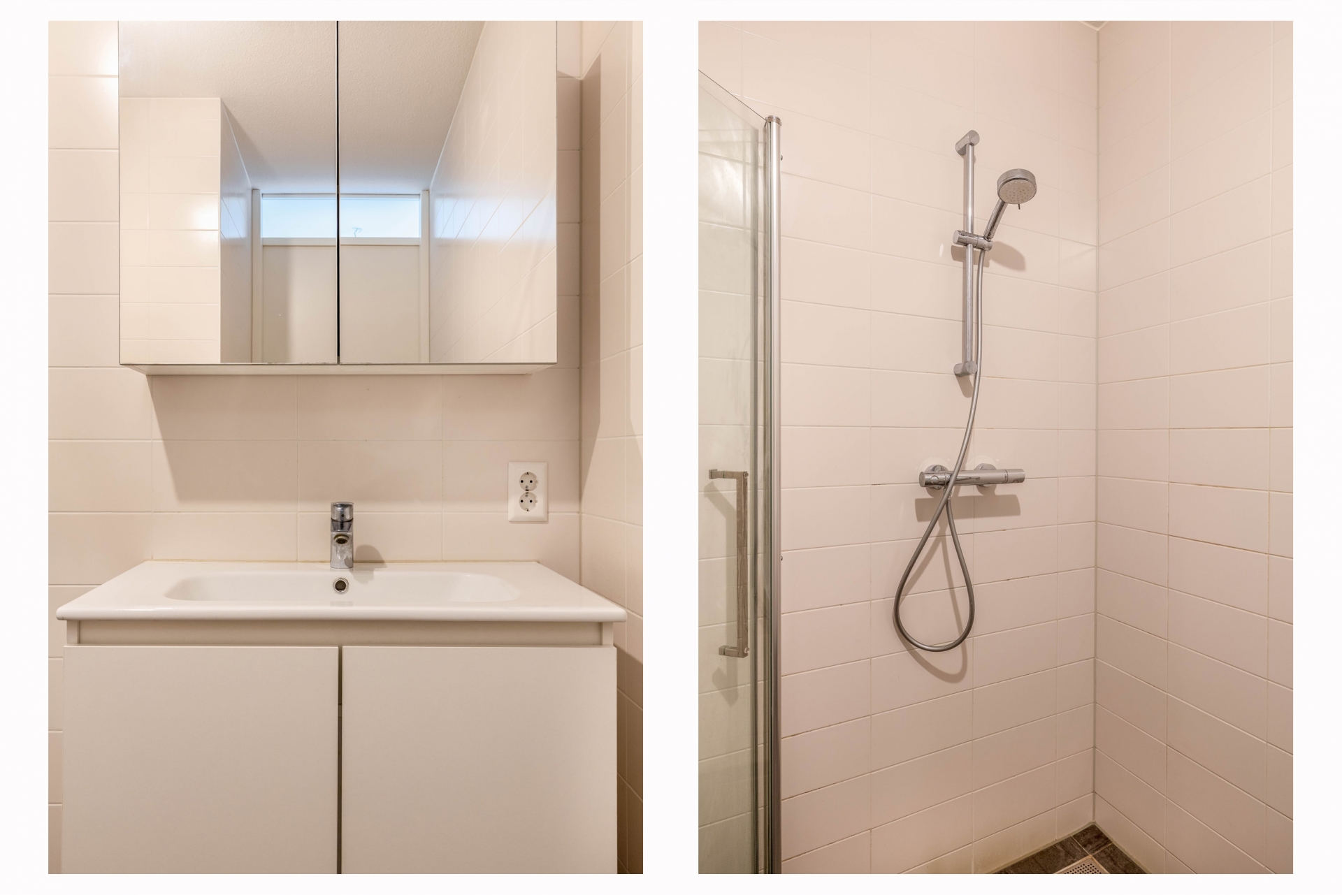 Vanaf de hal zijn de twee slaapkamers bereikbaar, één aan de voorzijde en één aan de achterzijde. Centraal tussen de slaapkamers in zijn de badkamer en separaat het toilet te vinden. De badkamer is volledig betegeld en beschikt over een douche en een badkamermeubel. Ook de badkamer is voorzien van vloerverwarming!