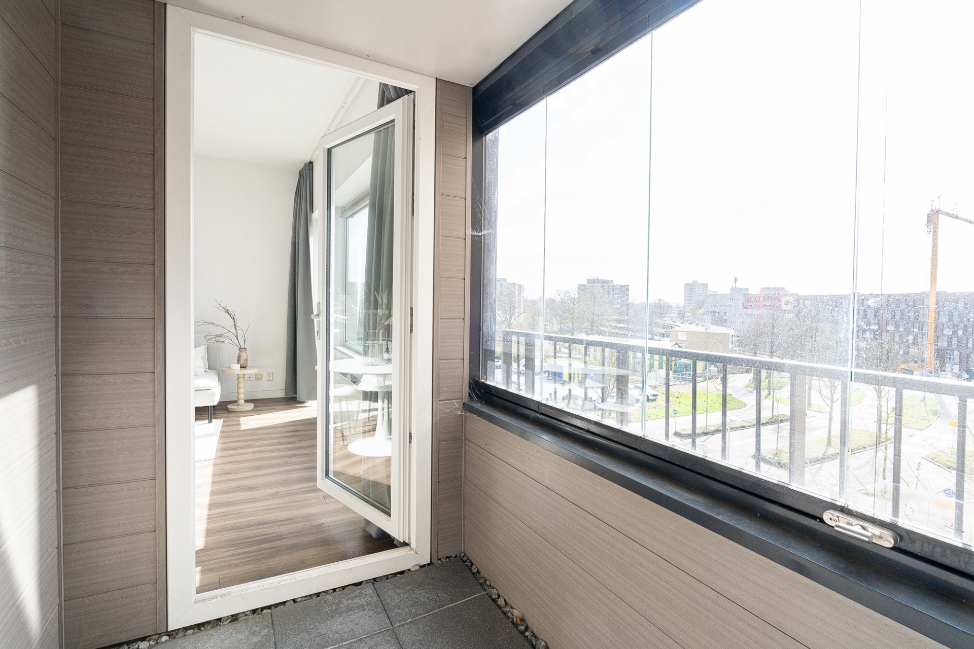 Een van de grootste voordelen van dit appartement is het balkon met opvouwbare terrasbeglazing. Dit maakt het mogelijk om het gehele jaar door van deze ruimte te genieten, ongeacht het weer. Of je nu van de zon wilt genieten in de zomer of beschut wilt zitten in de winter, dit balkon biedt de perfecte oplossing.