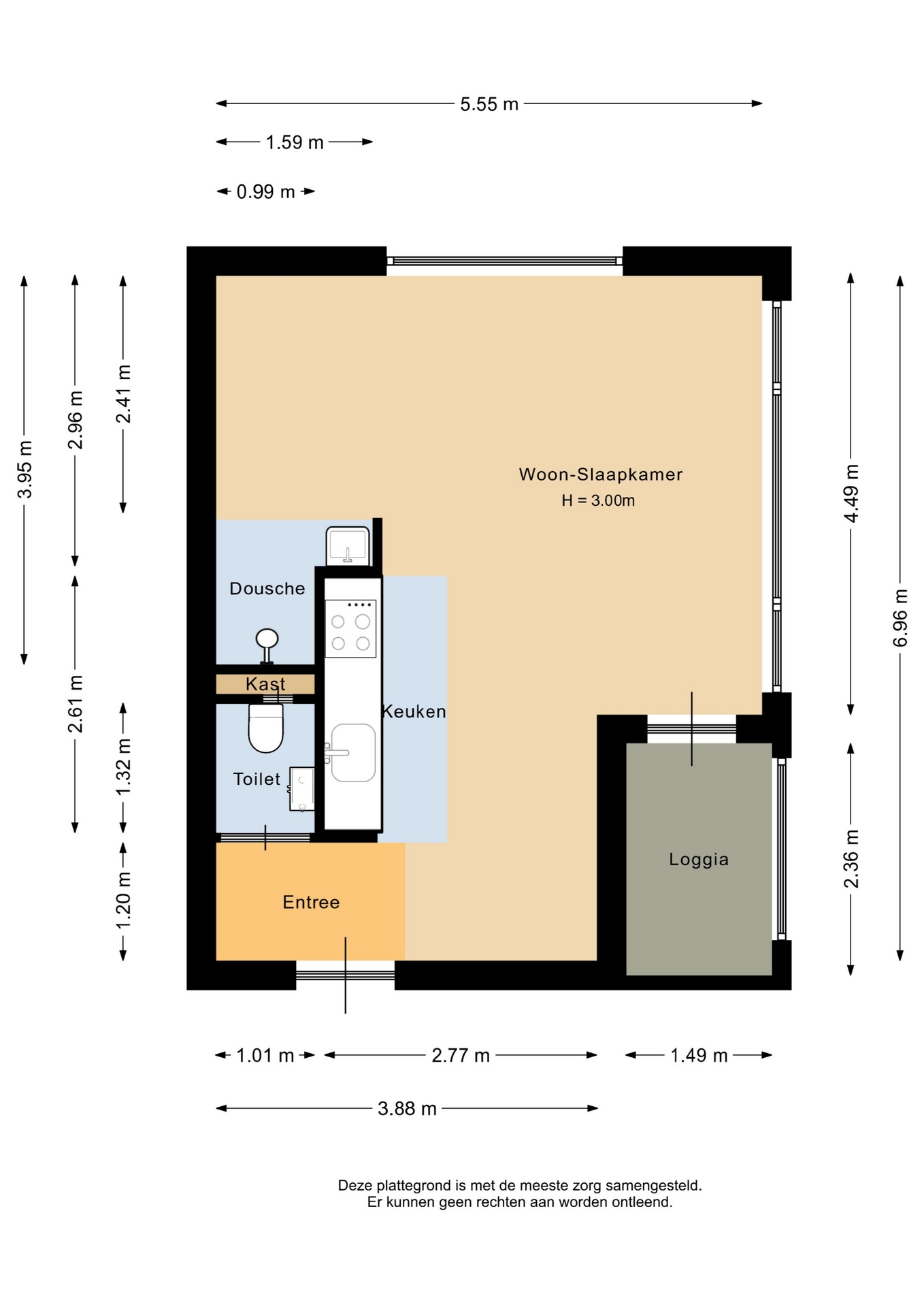 “Deze informatie is door ons met de nodige zorgvuldigheid samengesteld. Onzerzijds wordt echter geen enkele aansprakelijkheid aanvaard voor enige onvolledigheid, onjuistheid of anderszins, dan wel de gevolgen daarvan. Alle opgegeven maten en oppervlakten zijn indicatief.”