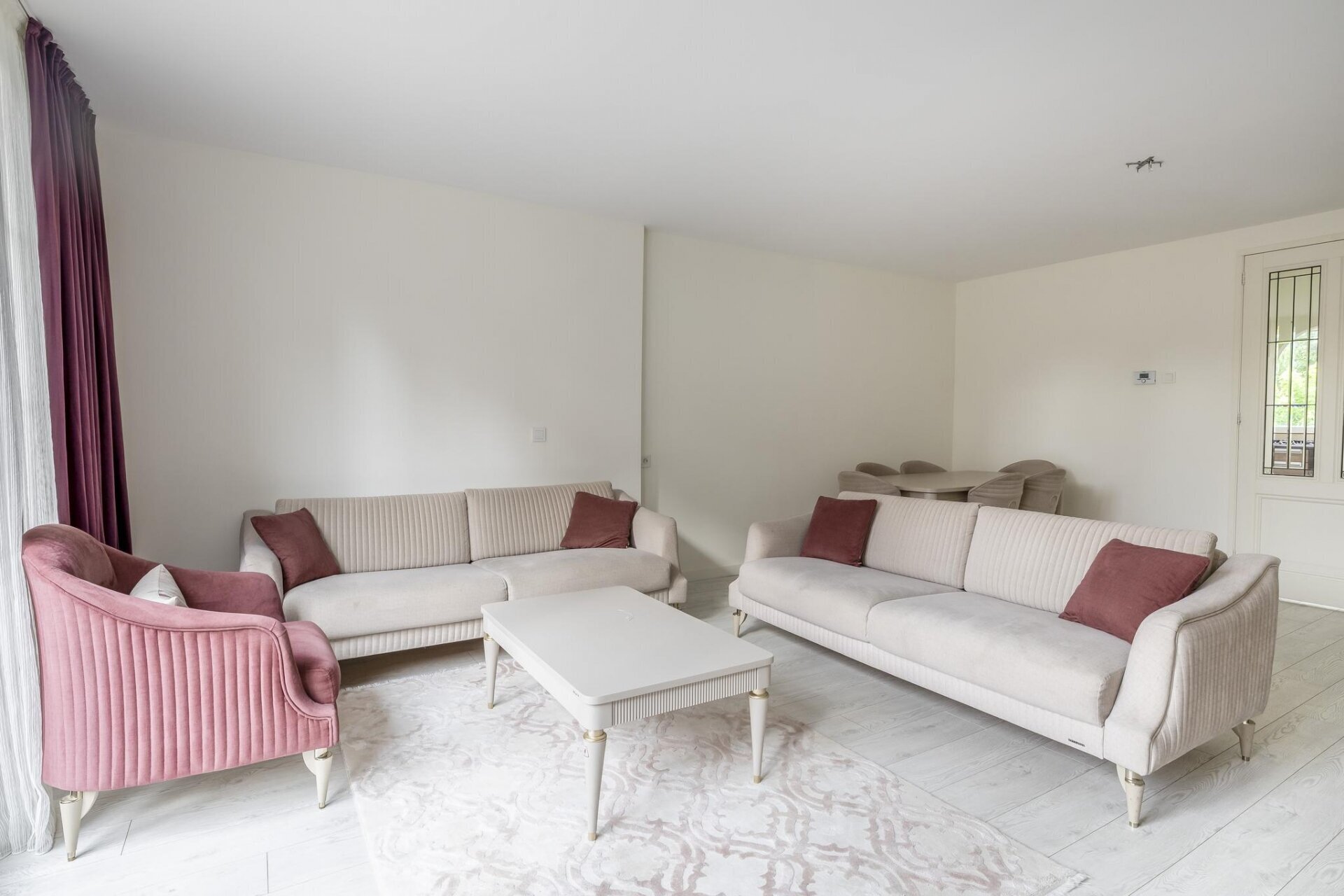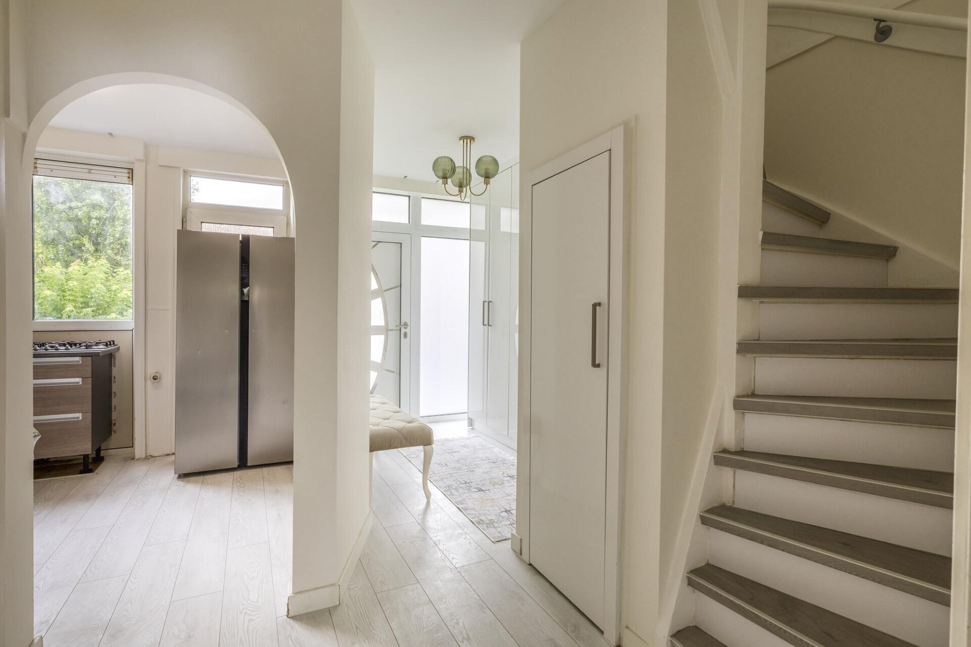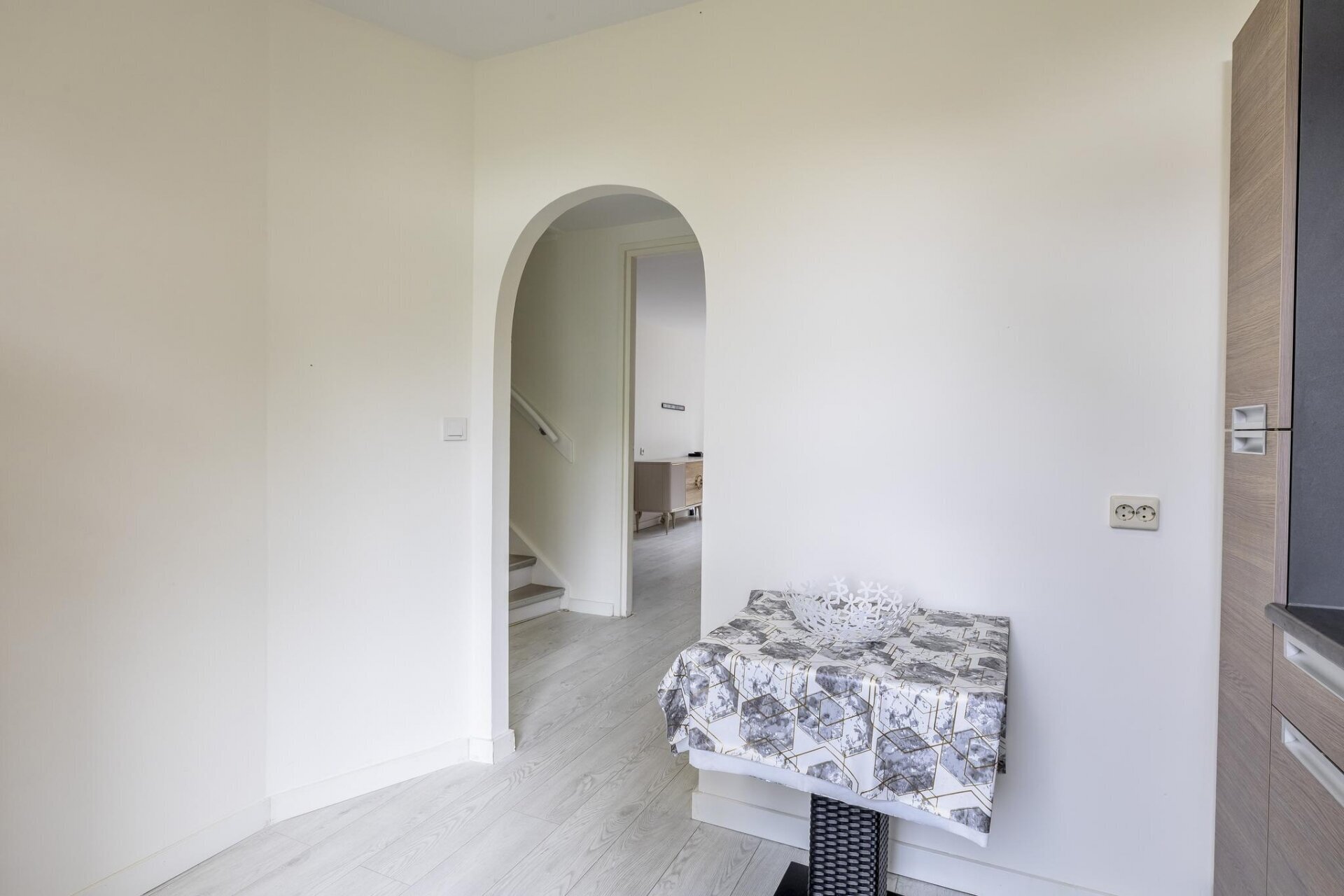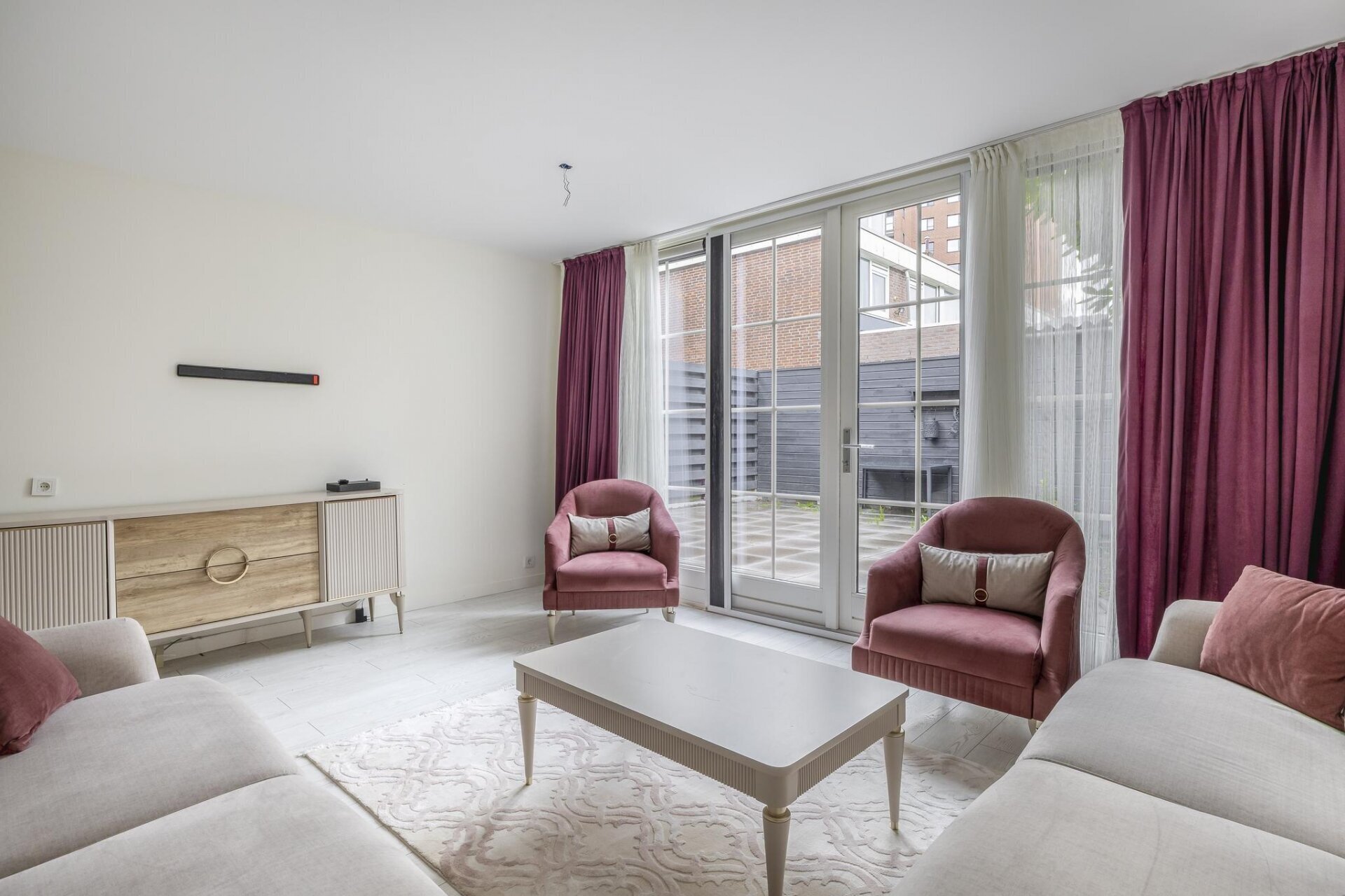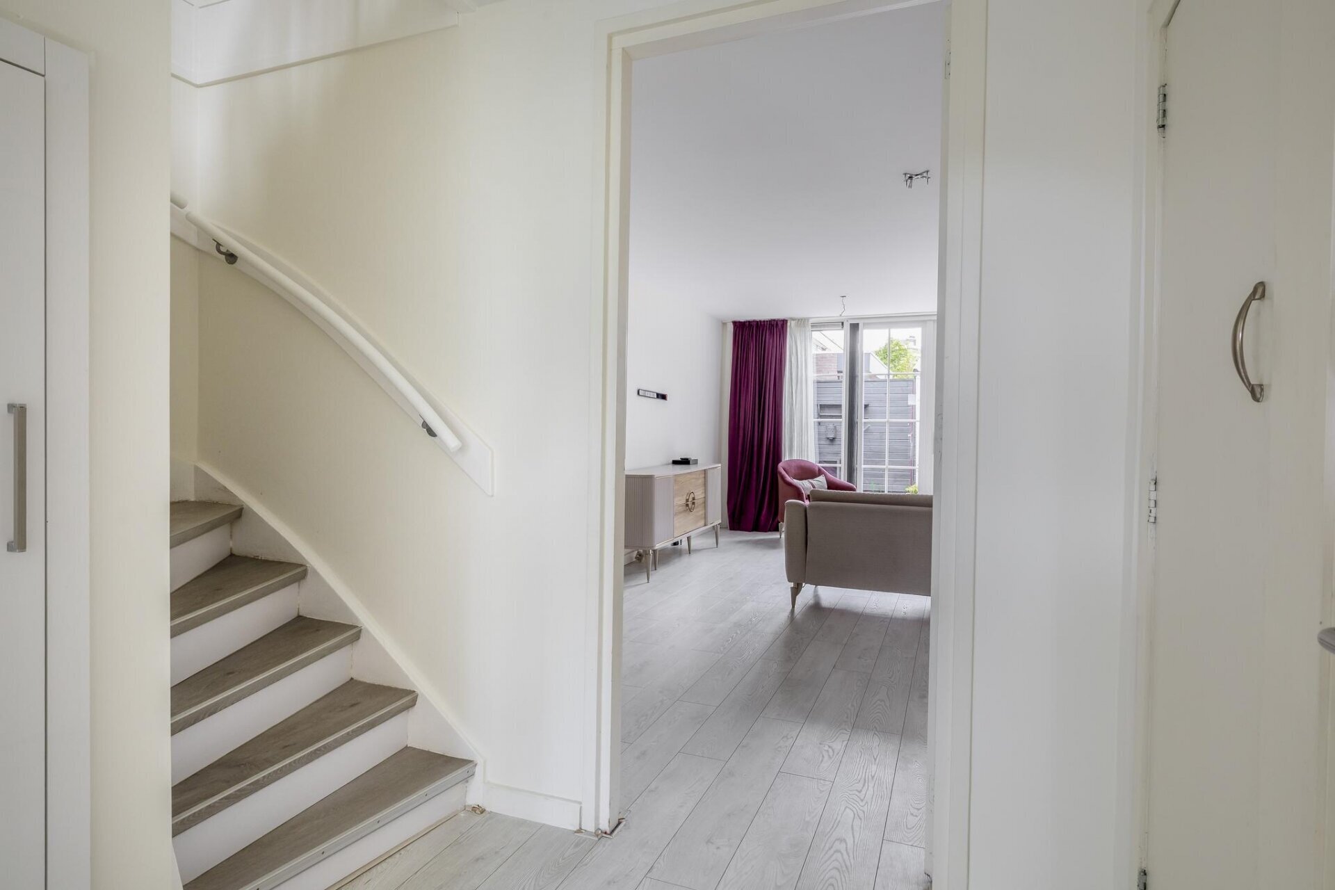 Zodra je binnenkomt valt meteen de open sfeer op. De woonkamer is aan de achterzijde uitgebouwd, wat niet alleen extra ruimte oplevert, maar ook zorgt voor veel lichtinval dankzij de grote openslaande deuren. De wanden zijn strak gestuukt en de vloer is neutraal afgewerkt, waardoor je alleen nog maar je meubels hoeft neer te zetten. De tuin is via de achterzijde direct bereikbaar en vormt een verlengstuk van je leefruimte: ideaal voor zonnige dagen.