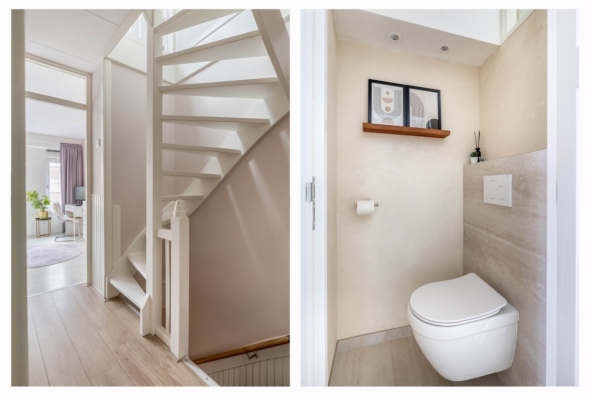 Op de overloop bevindt zich het vernieuwde toilet en via de openslaande deuren loop je zo naar het balkon, waar je heerlijk kunt ontbijten in de ochtendzon.