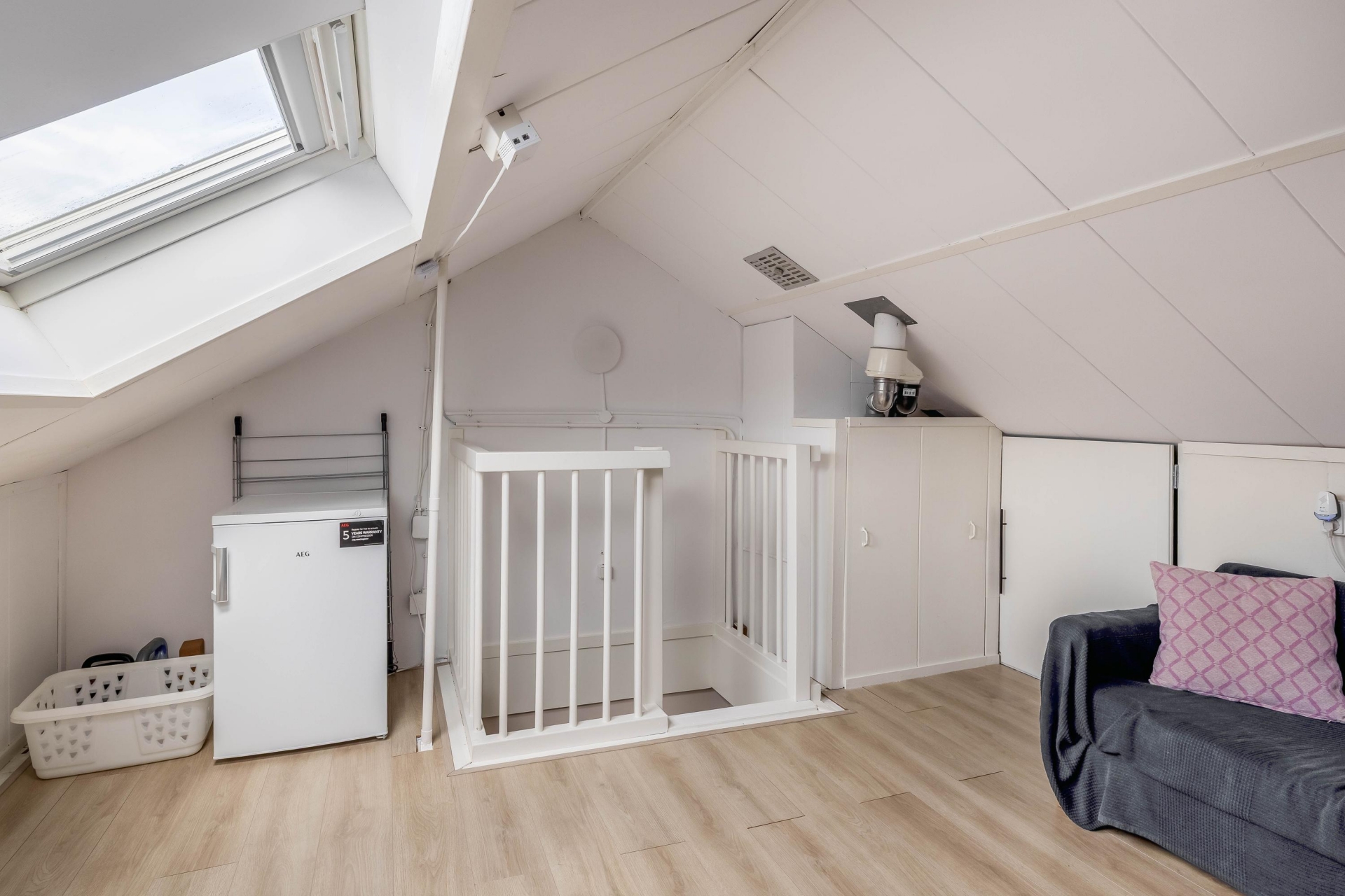De zolder is een heerlijke extra ruimte en goed bruikbaar als logeerkamer, werkkamer of atelier. Het dak is in 2022 geïsoleerd met een dubbele laag steenwol, waardoor de ruimte comfortabel blijft in elk seizoen.