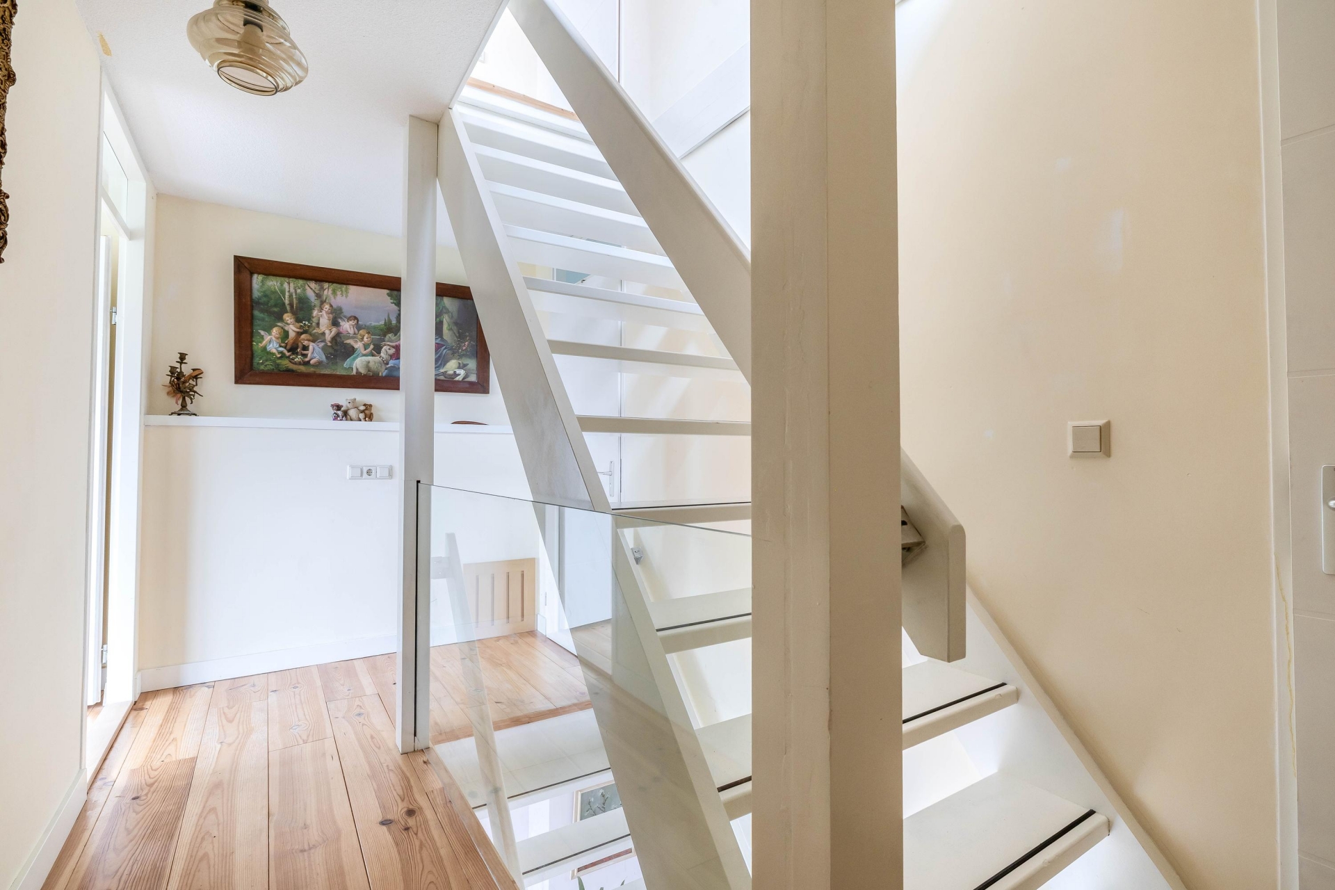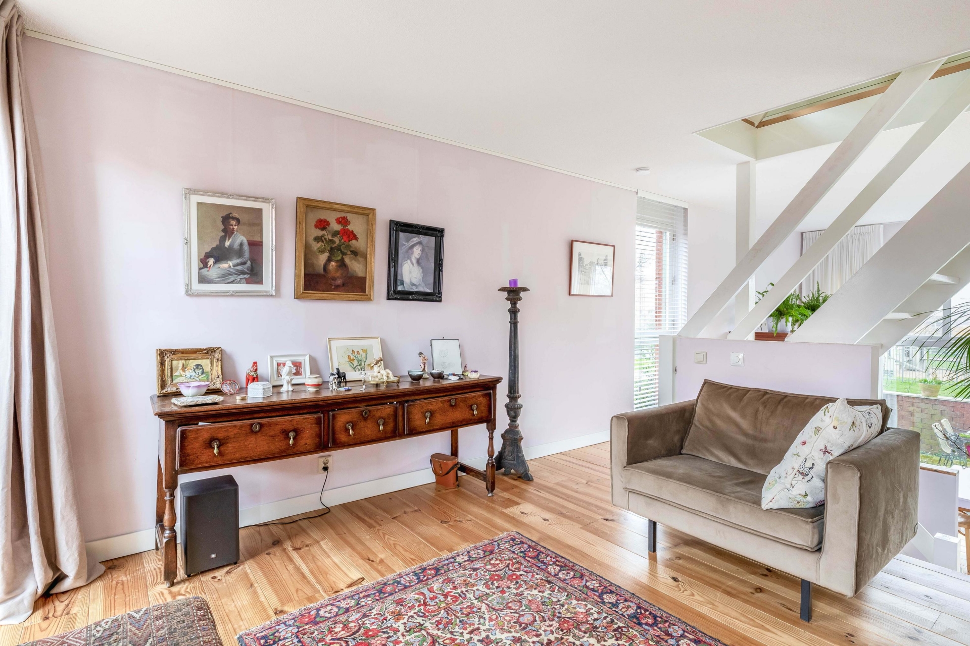 De indeling wijkt net even af van standaard en dat maakt deze woning juist zo aantrekkelijk. De woonkamer bevindt zich op de eerste verdieping en biedt een prettige, lichte leefruimte. Aan de terraskant ligt de woonkeuken. Deze grenst direct aan het terras en vormt daarmee het hart van het huis. De keuken is in 2021 vernieuwd en uitgevoerd in een moderne, rechte opstelling met diverse inbouwapparatuur. Er is volop ruimte voor een grote eettafel, waardoor koken, tafelen en samenzijn hier moeiteloos samenkomen. Op de derde verdieping bevinden zich twee slaapkamers en de ruime badkamer. De grootste slaapkamer op deze verdieping is heerlijk licht en biedt voldoende plek voor een groot bed en kastruimte. De tweede kamer is perfect als kinderkamer, werkplek of logeerkamer. De badkamer is compleet uitgevoerd met een ligbad, douchecabine, dubbele wastafel en een tweede toilet. De bovenste verdieping telt nog eens twee ruime slaapkamers. De grootste kamer op deze etage is bijzonder royaal en kan ook uitstekend dienen als master bedroom. De vierde slaapkamer is eveneens van goed formaat. Op de overloop bevindt zich de cv-ruimte.