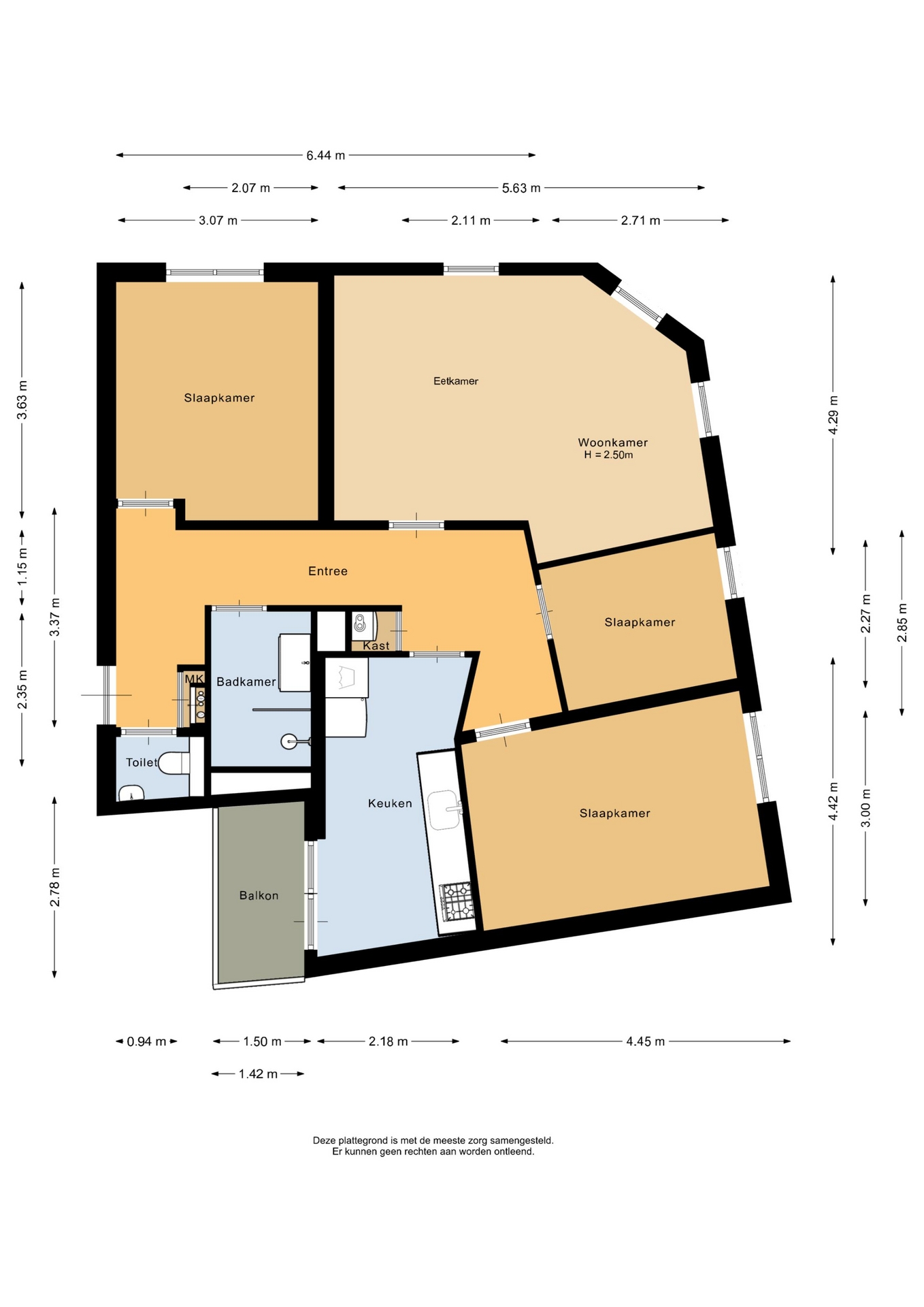 “Deze informatie is door ons met de nodige zorgvuldigheid samengesteld. Onzerzijds wordt echter geen enkele aansprakelijkheid aanvaard voor enige onvolledigheid, onjuistheid of anderszins, dan wel de gevolgen daarvan. Alle opgegeven maten en oppervlakten zijn indicatief.”