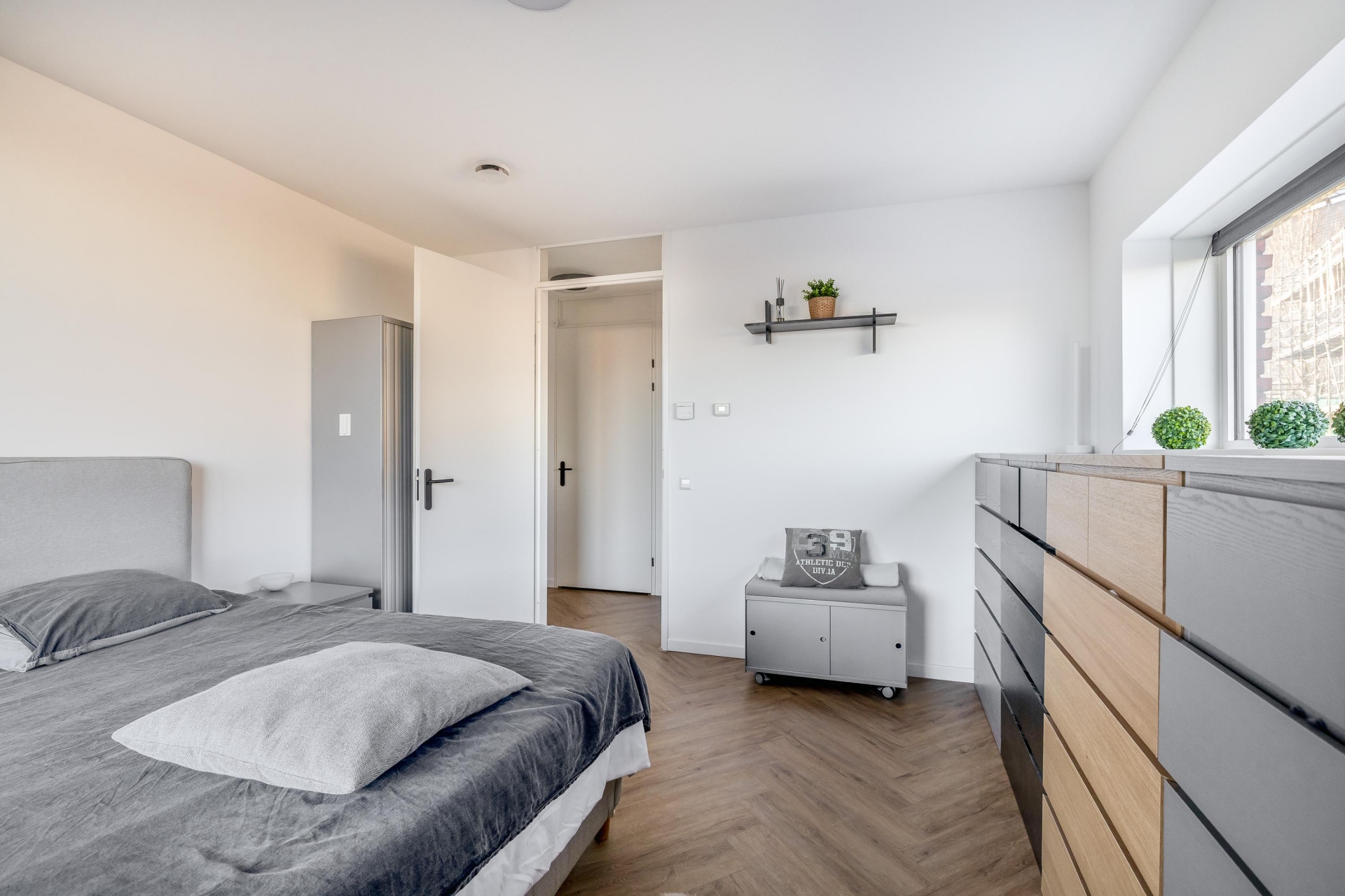 Het appartement beschikt over twee goed bemeten slaapkamers. De hoofdslaapkamer biedt voldoende ruimte voor een tweepersoonsbed en een grote kledingkast. De tweede slaapkamer is veelzijdig inzetbaar, bijvoorbeeld als werk-, logeer- of kinderkamer.