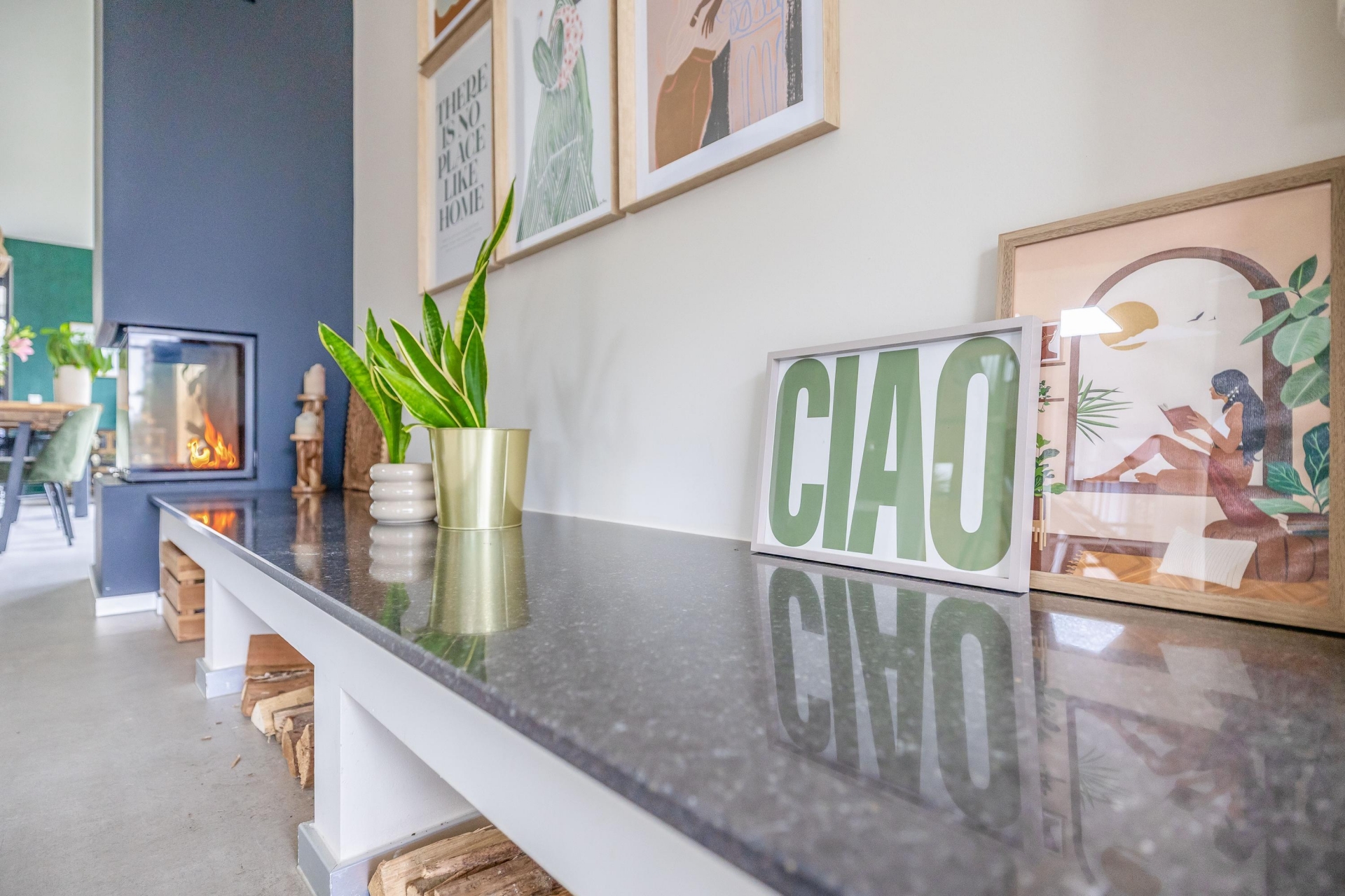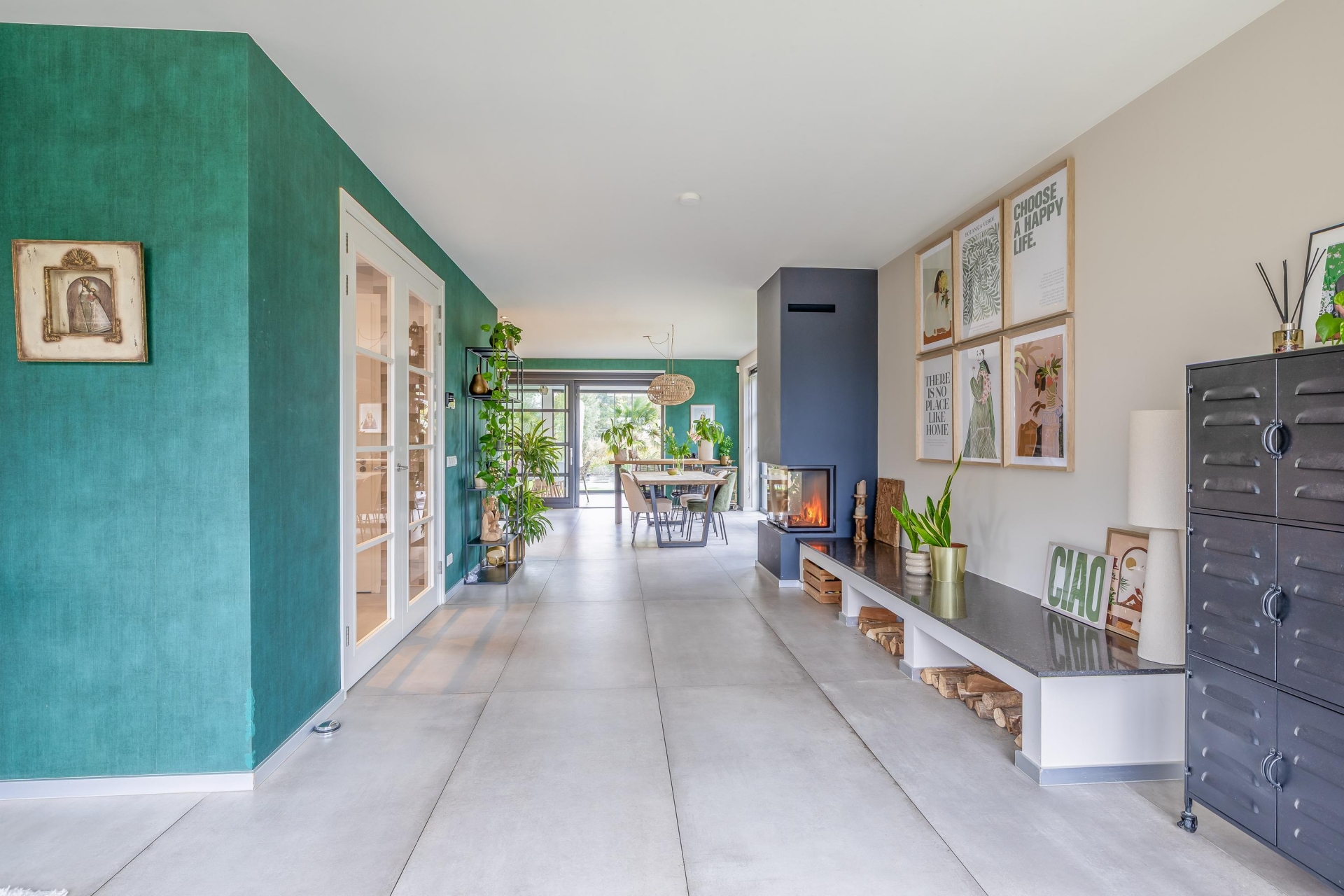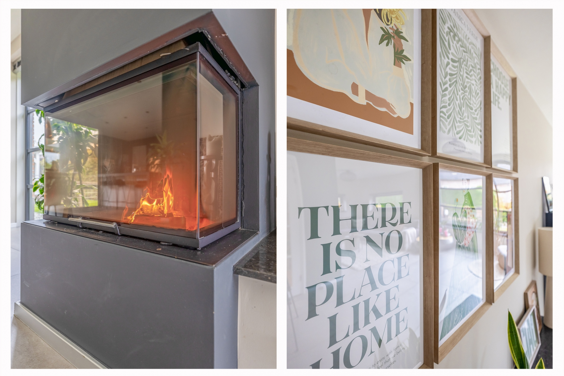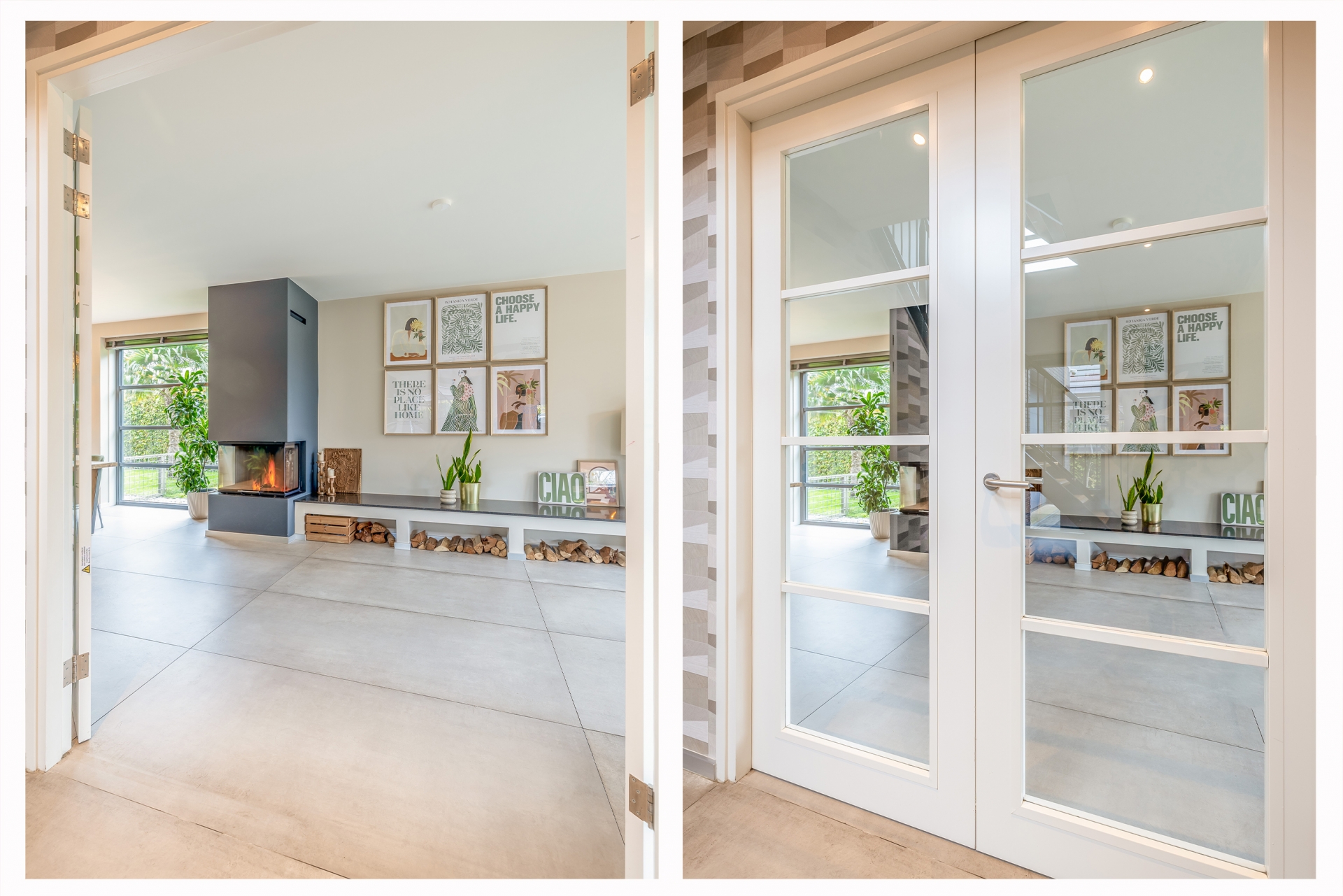 - Driezijdige liftdeurhaard Spartherm Arte in woonkamer;