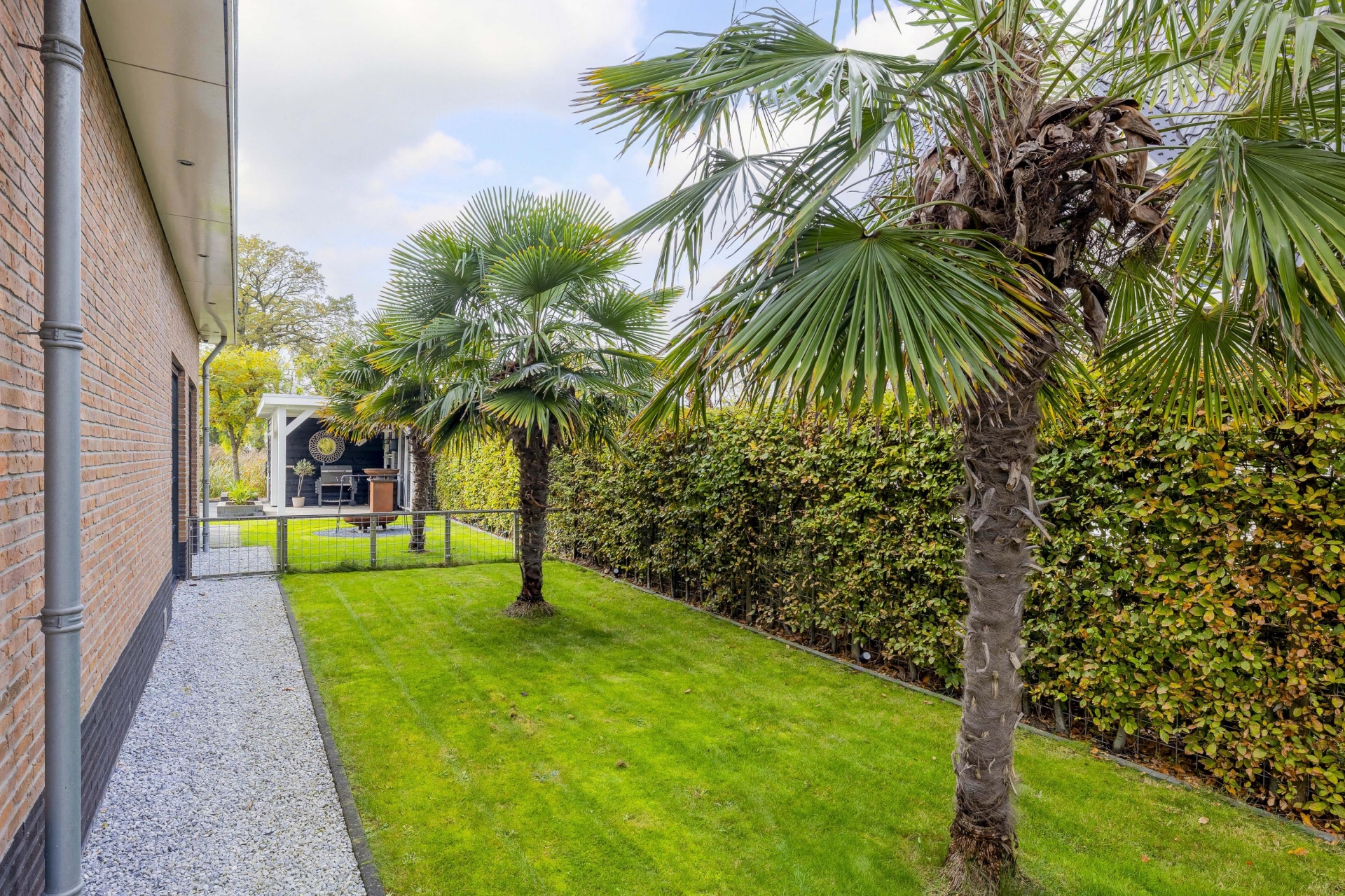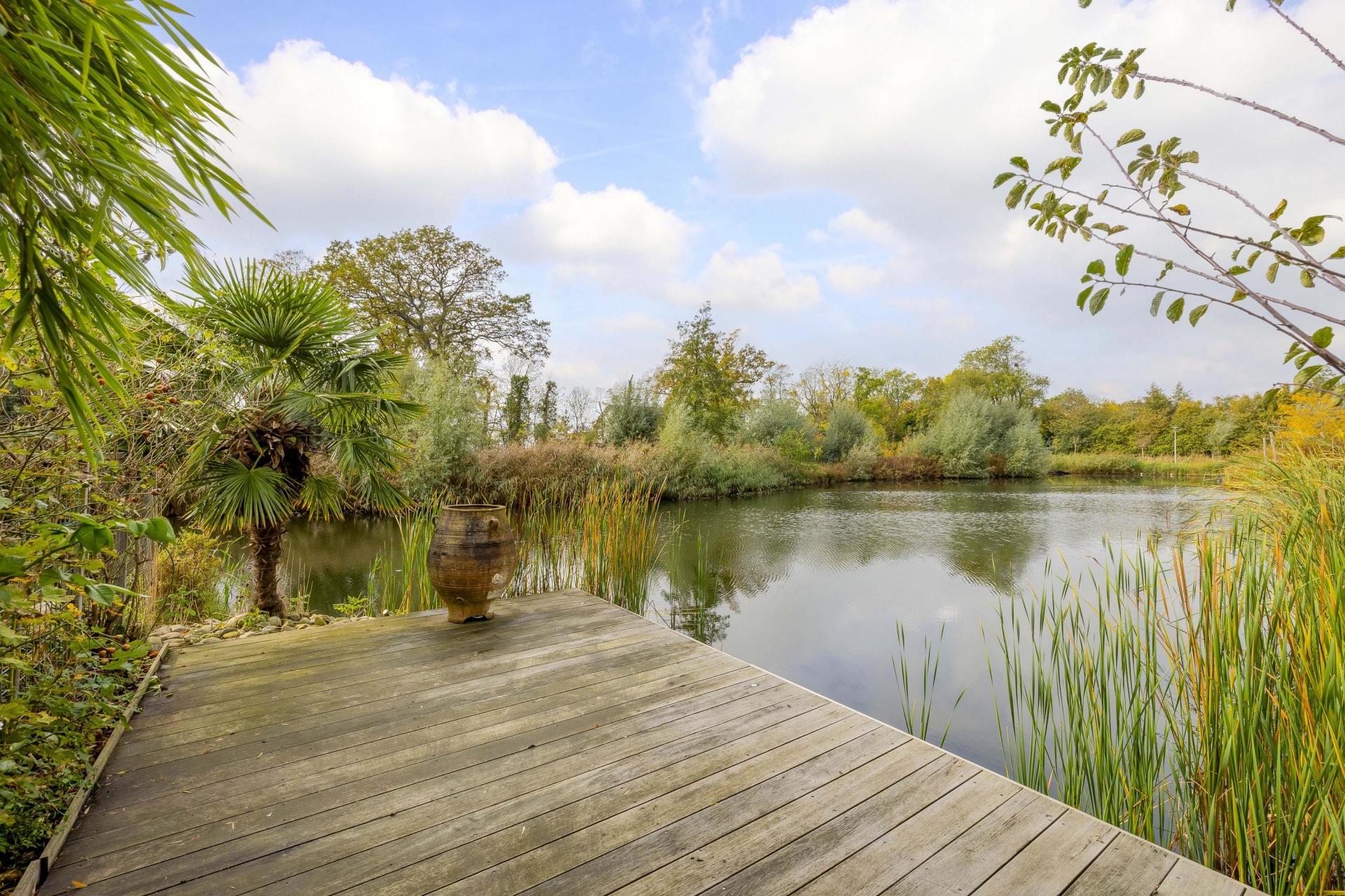 Buiten is het minstens zo indrukwekkend als binnen. De tuin ligt rondom het huis en is met zorg ontworpen. Aan de achterzijde geniet je van volledige privacy, een zuidwestelijke ligging en directe ligging aan een waterpartij. De houten vlonder is dé plek voor een borrel bij zonsondergang of een goed boek in alle rust. De serre vormt het verlengstuk van deze tuinbeleving en maakt buitenleven mogelijk in elk seizoen. Daarnaast is er nog een buitenberging aanwezig met een sfeervolle veranda.