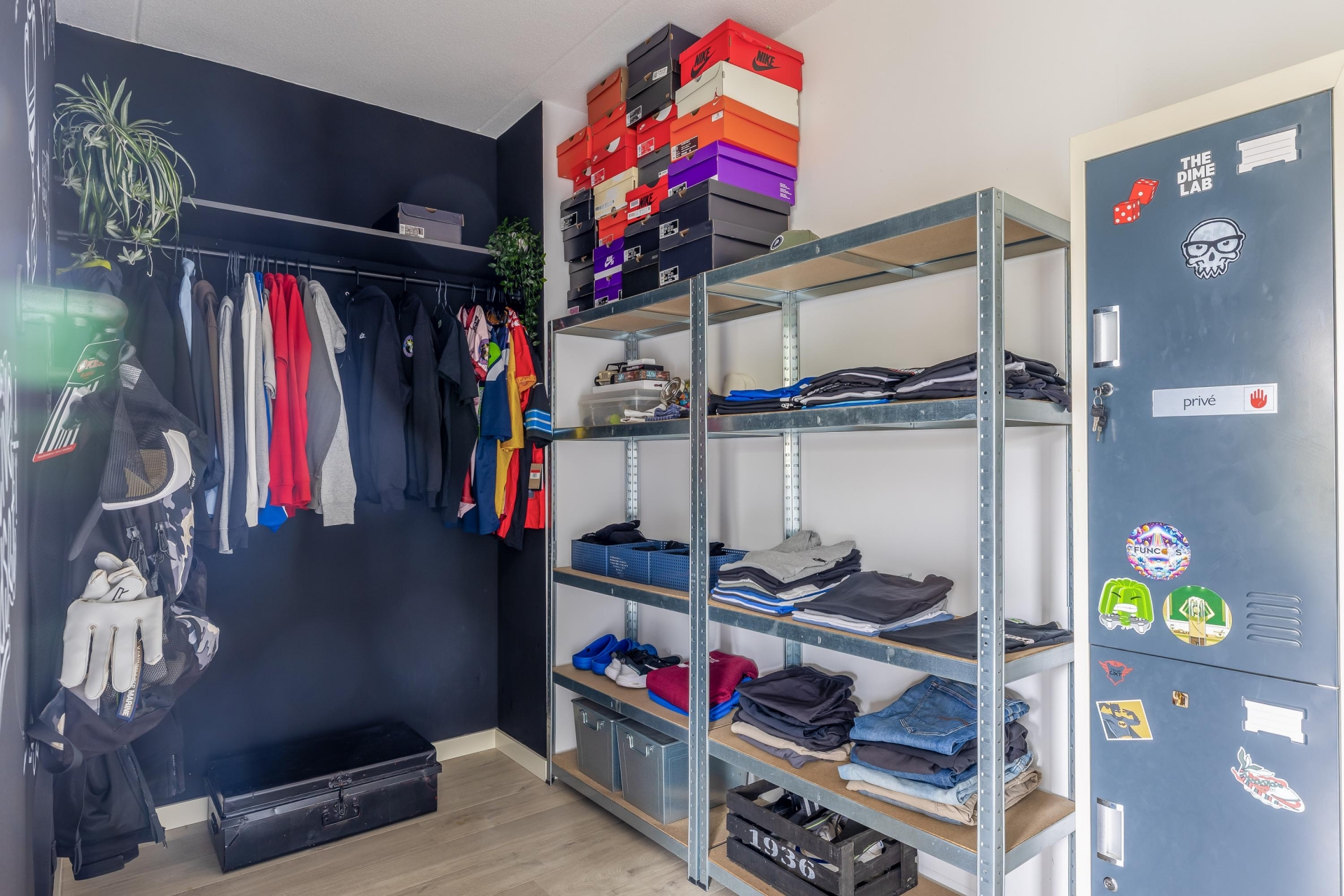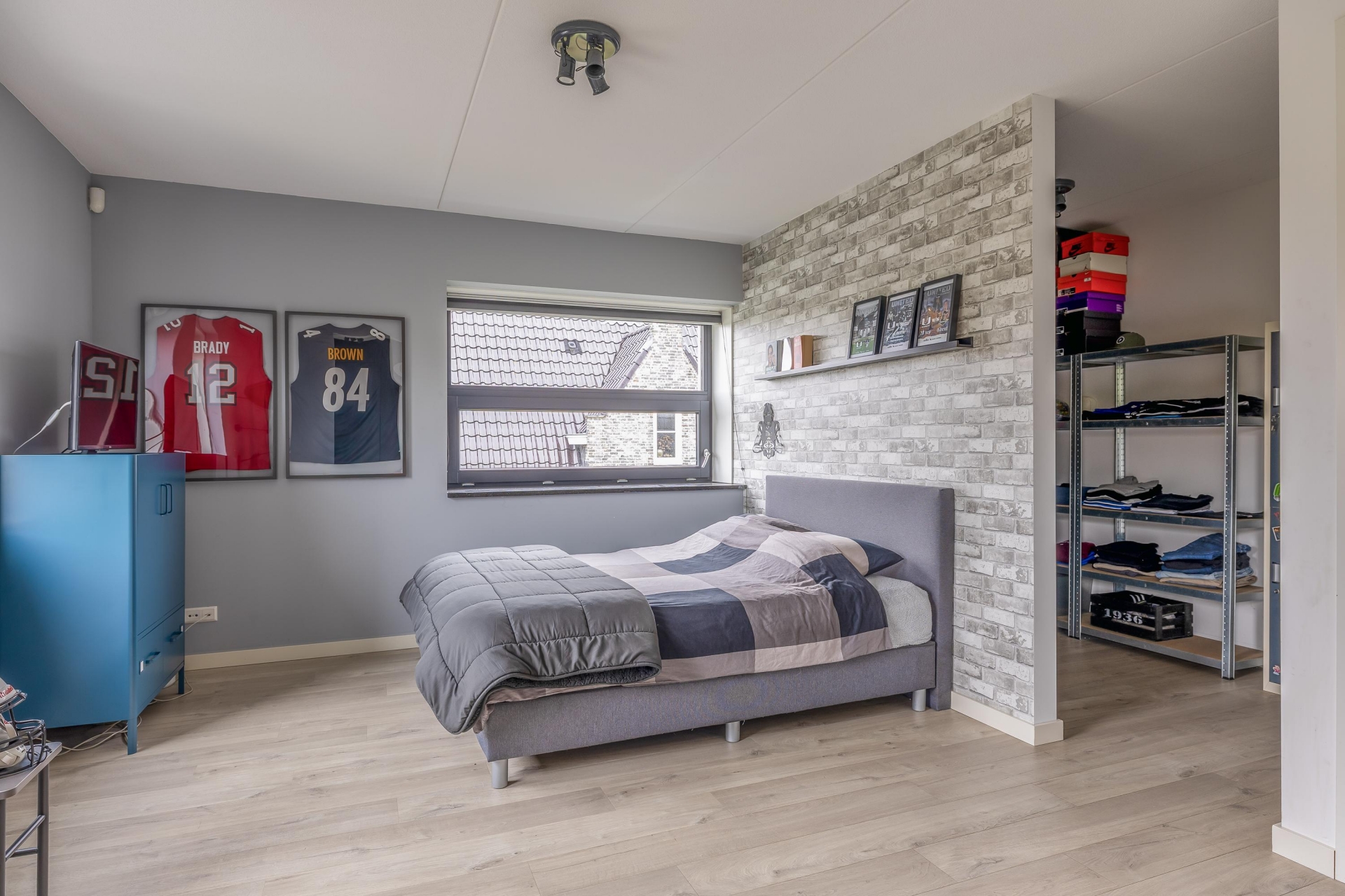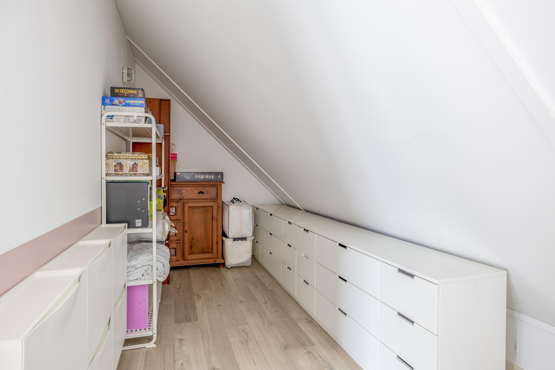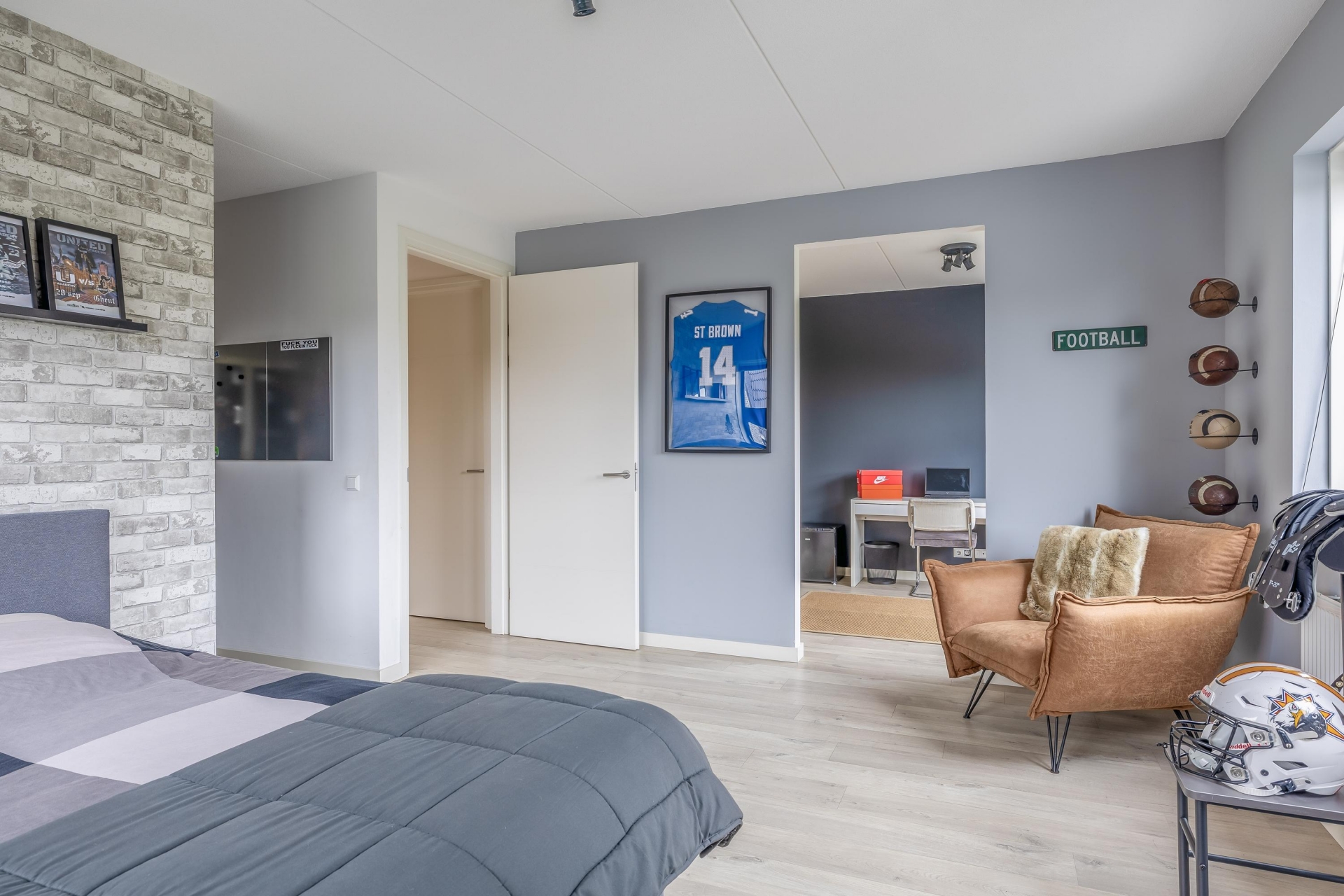 Op de eerste verdieping bevinden zich drie ruime slaapkamers, waaronder een luxe master bedroom met inloopkast én en-suite badkamer. Deze kamer ligt aan de voorzijde van de woning. De tweede slaapkamer heeft ook een ruime inloopkast en geeft toegang tot een extra kamer. Heel eenvoudig is hiervan een derde slaapkamer te maken, door de berging erbij te betrekken en de opening met de andere slaapkamer dicht te maken.