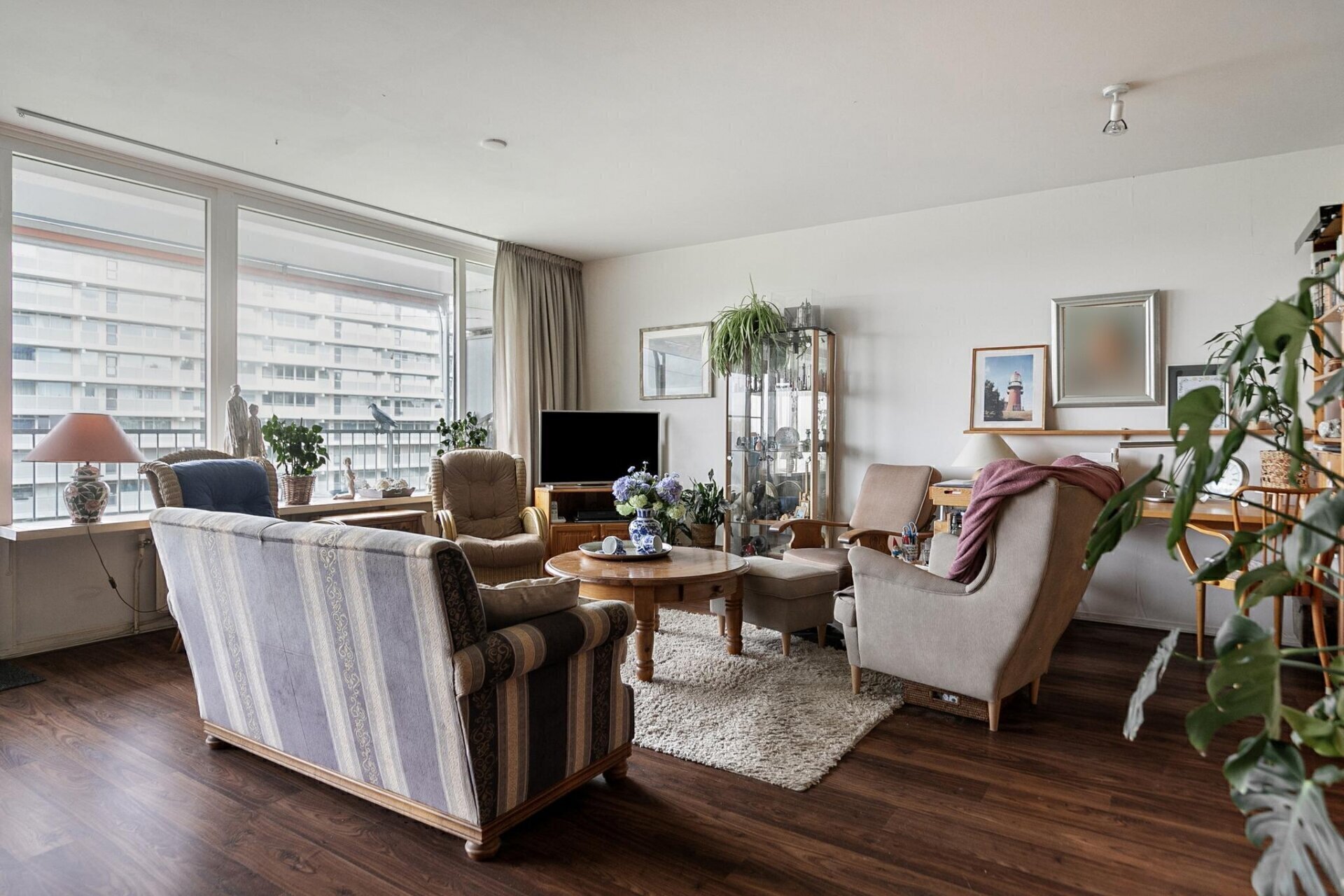 Op de 7e verdieping vind je dit 3-kamer appartement (voorheen 4 kamers) met veel potentieel! Laat je niet ontmoedigen door de eerste indruk.