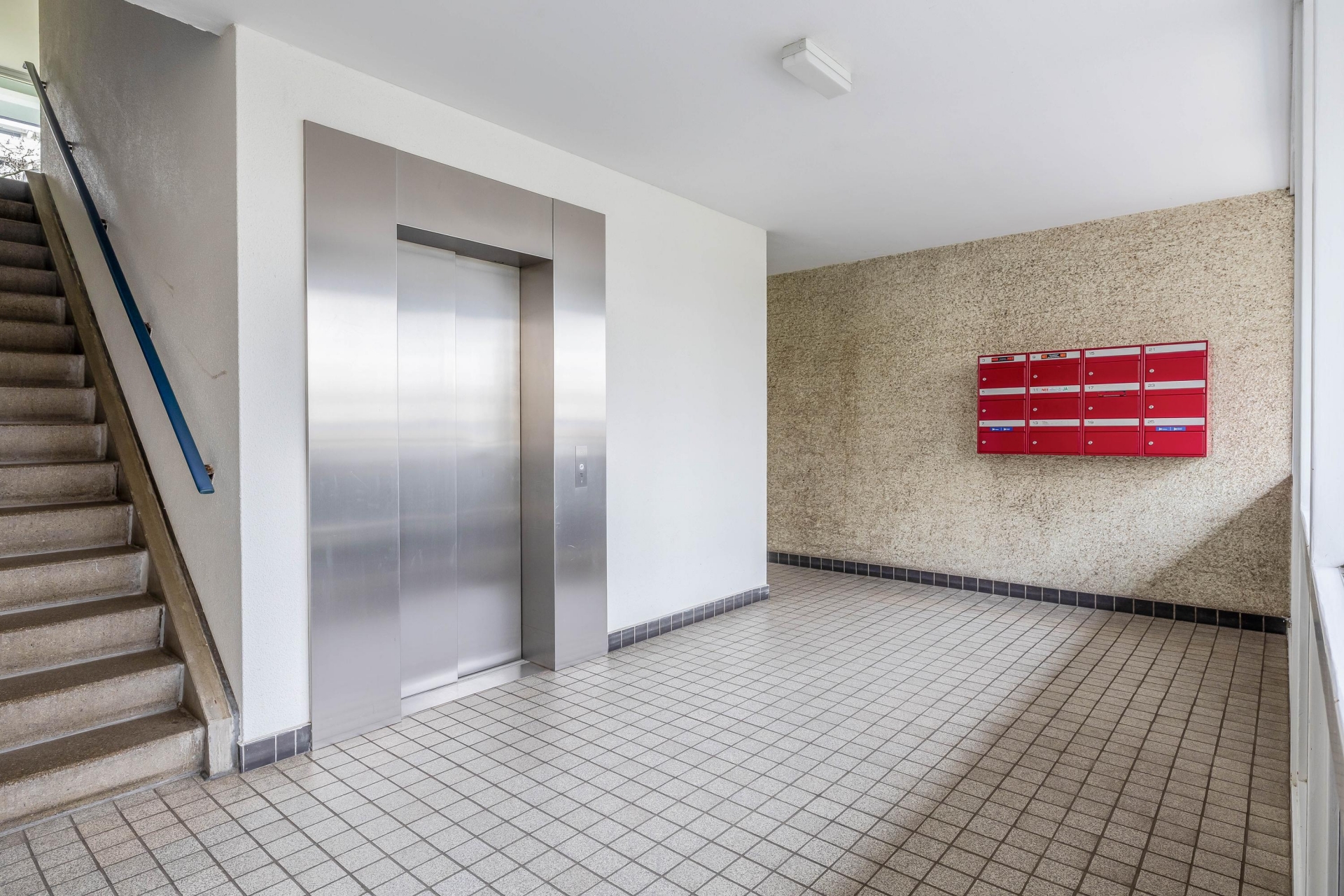 Gezamenlijke entree met bellenplateau, trappenhuis en lift naar de verdiepingen.